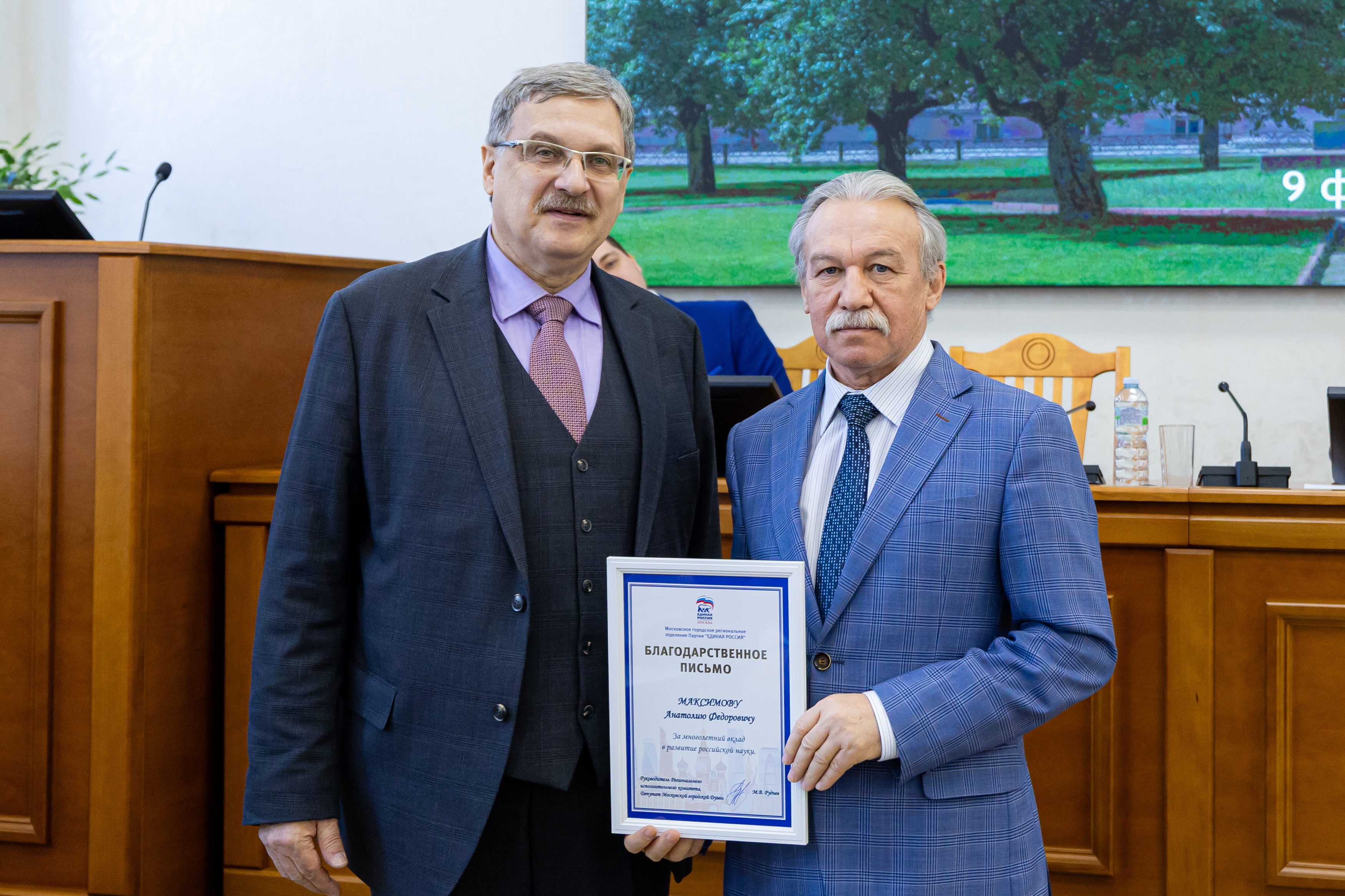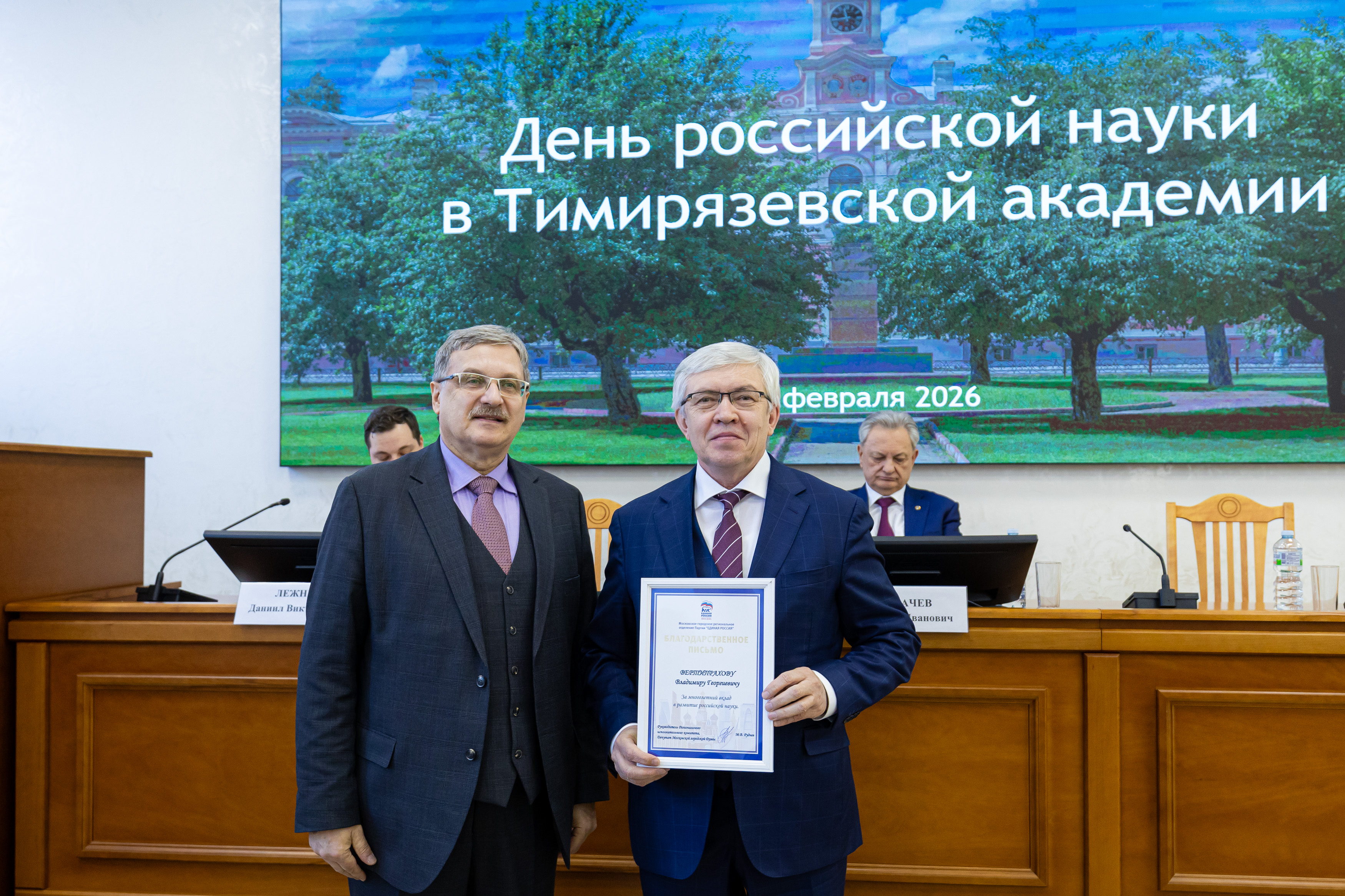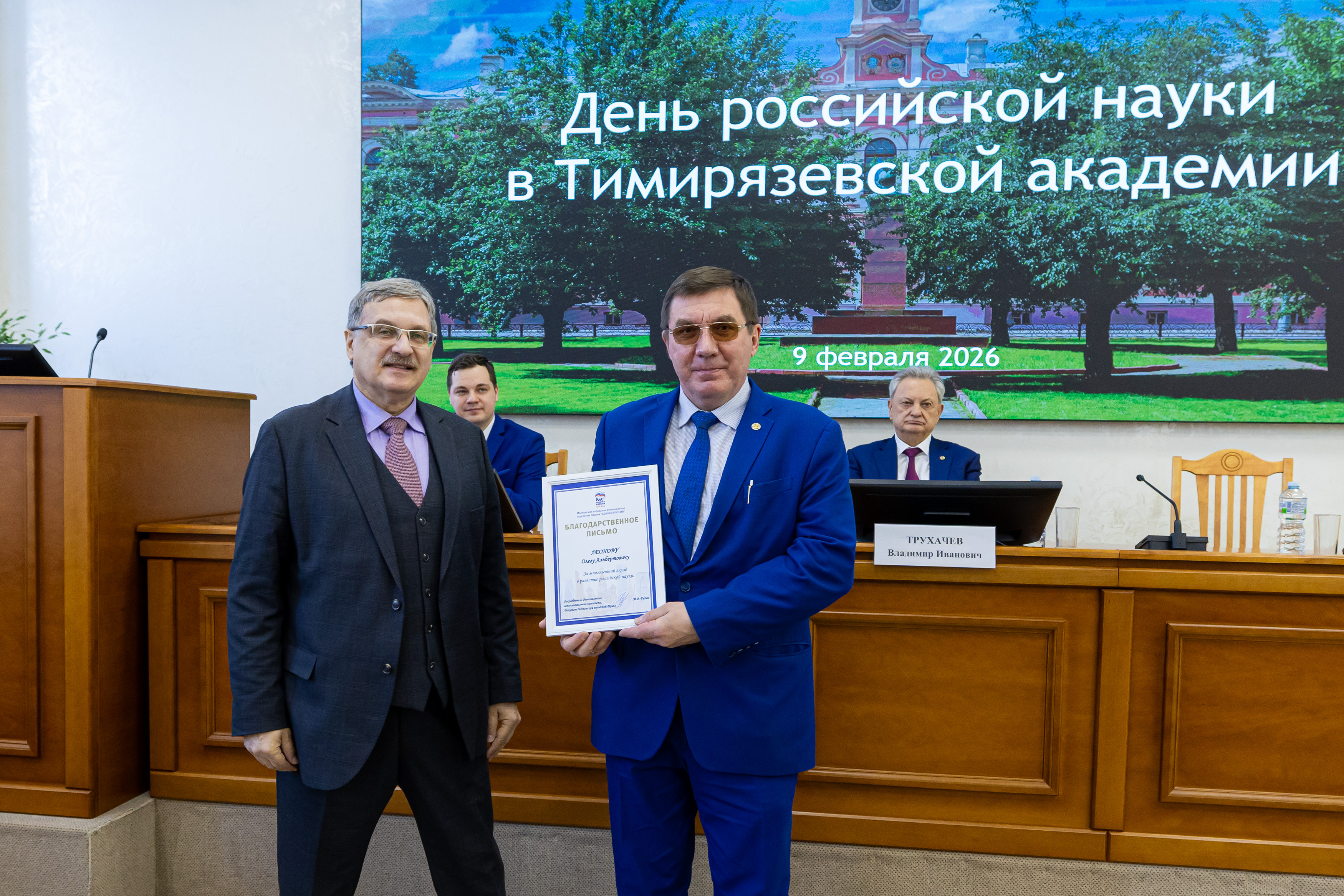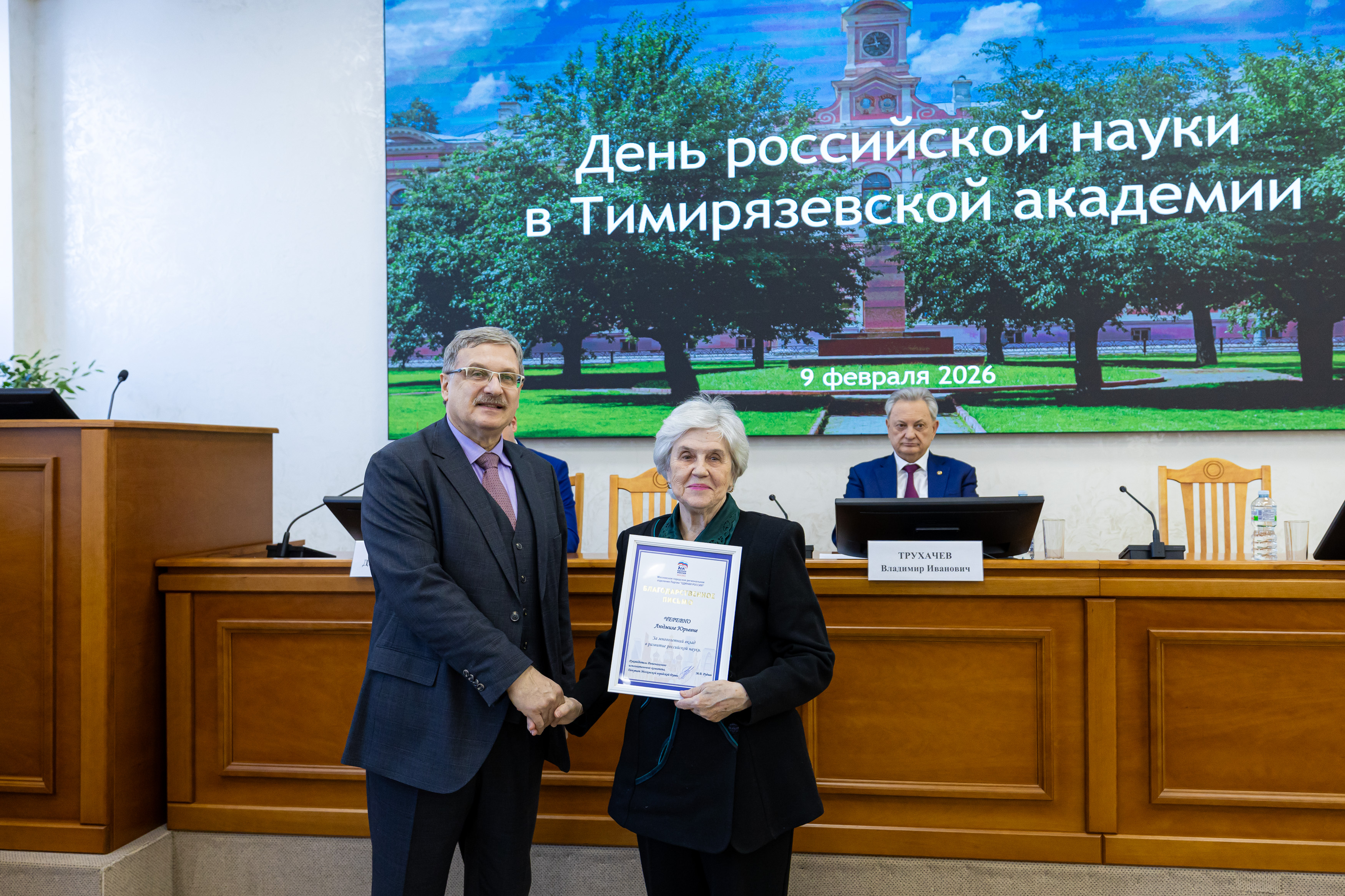 Еще ряд благодарностей ученые получили от «Единой России». В мероприятии принял участие секретарь партии Тимирязевского района Иван Юрьевич Новицкий.