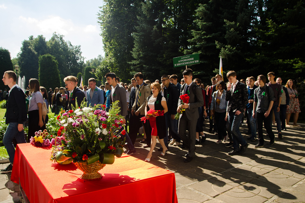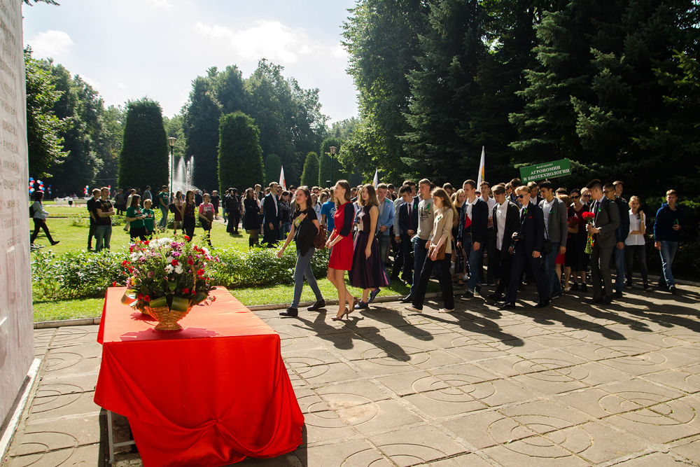 Знакомство с традициями главного аграрного вуза страны для первокурсников началось с возложения цветов к памятному мемориалу погибшим в годы Великой Отечественной войны сотрудникам и студентам.