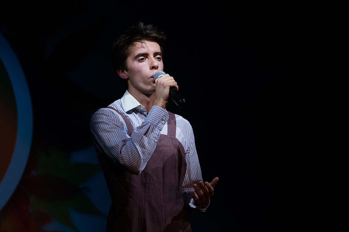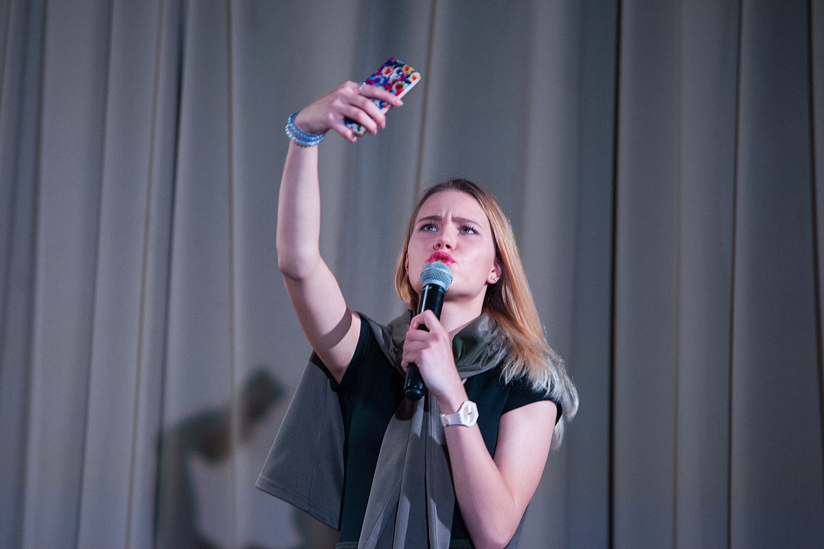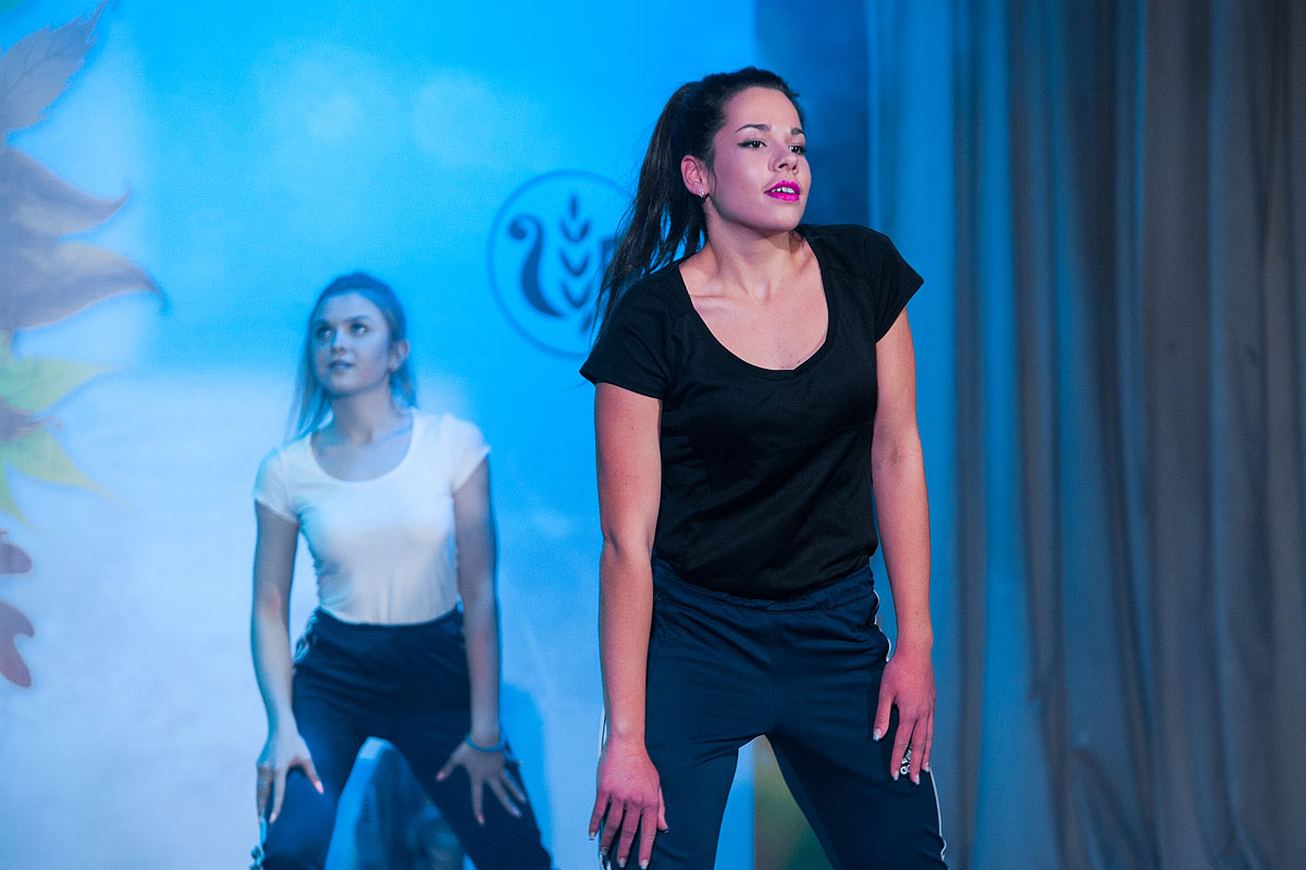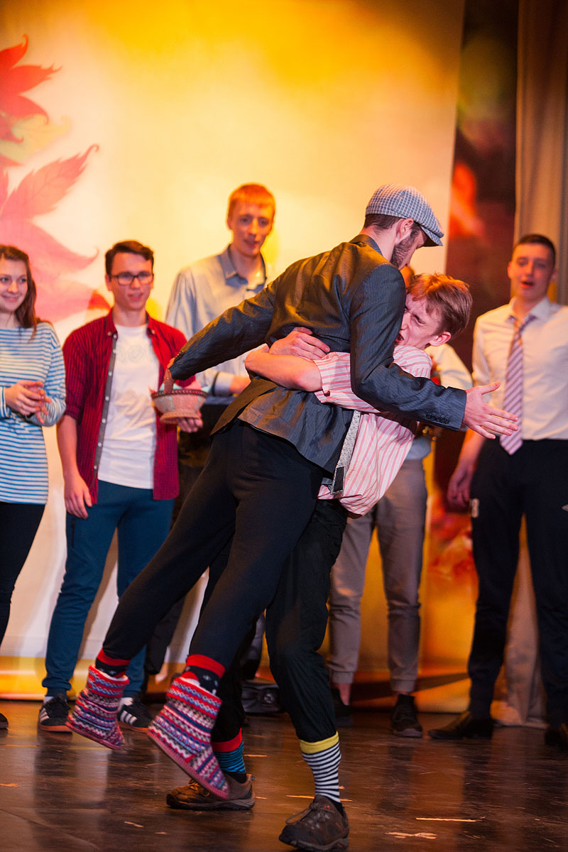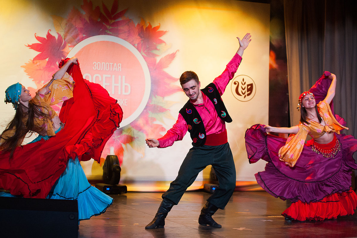 И, конечно, куда же без ярмарки! Ее колорита, раздолья, души! «Хмельно, горласто, празднично, пестро, красно кругом!» — писал о русской ярмарке поэт Николай Некрасов. На ярмарочной площади, развернувшейся на сцене академического Дома культуры, было шумно, весело и задорно! Ярмарки и гулянья занимали заметное место в жизни каждого русского человека, именно это культурное значение народных гуляний передали студенты ПРиМы! Яркости ярмарке добавило и выступление цыган! Пестрые юбки, роскошно расшитые костюмы, бубны, смех, гадания и медведь! Такой номер невозможно не запомнить! На фоне деревенского калейдоскопа разворачивается история любви. Чувства героев передают стихотворение «Влюбленный», танец «Вздох» и задорная песня трактористки в исполнении Анастасии Красильниковой.