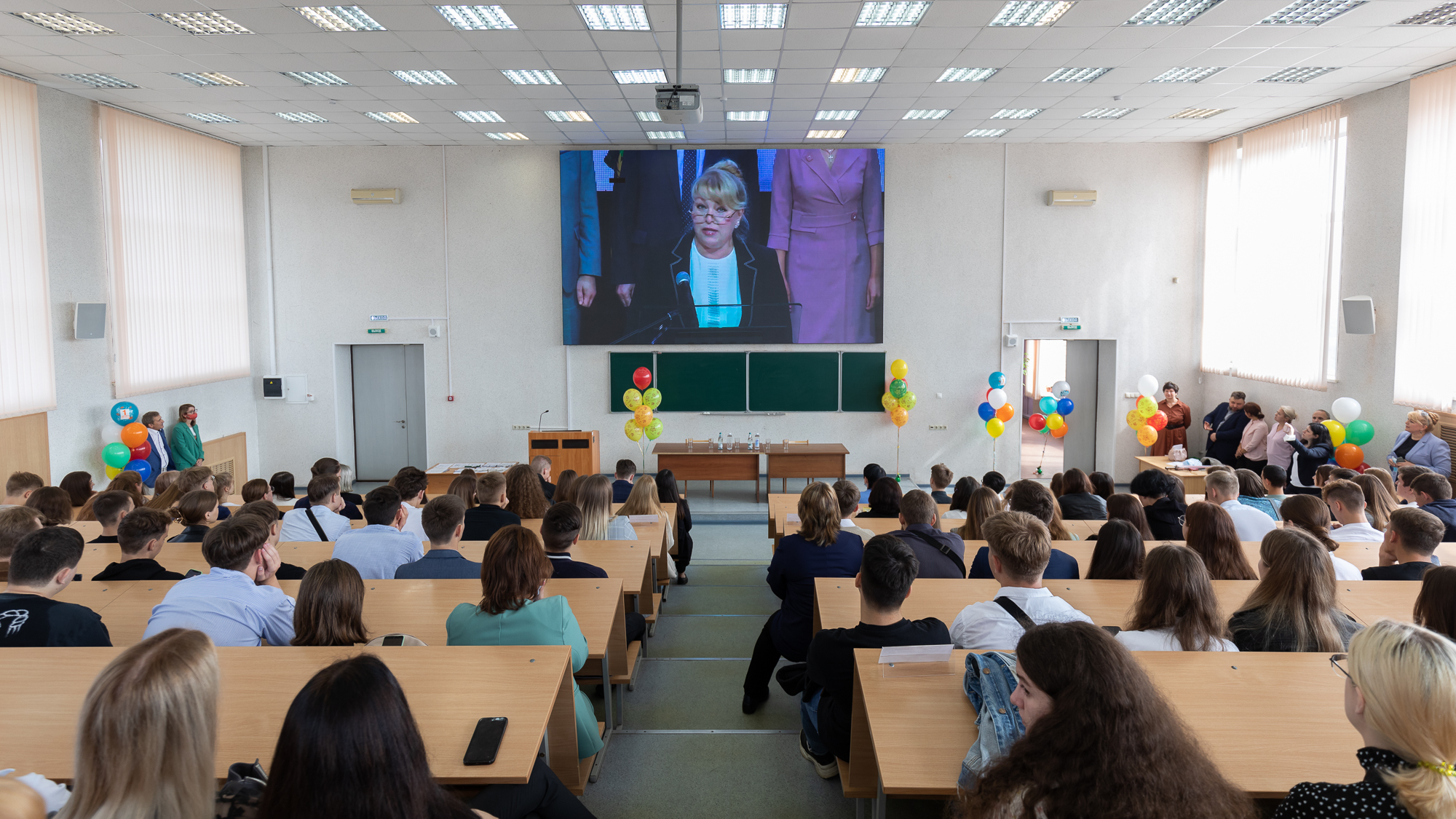 Перед первокурсниками выступила директор Института, д.э.н., профессор Хоружий Людмила Ивановна, председатель совета ветеранов, д.э.н., профессор Агирбов Юрий Исуфович.