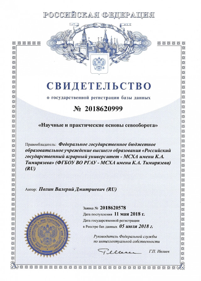 Для оптимизации учебного процесса и удобства студентов доцент кафедры земледелия Валерий Полин создал единую базу данных «Научные и практические основы севооборота»