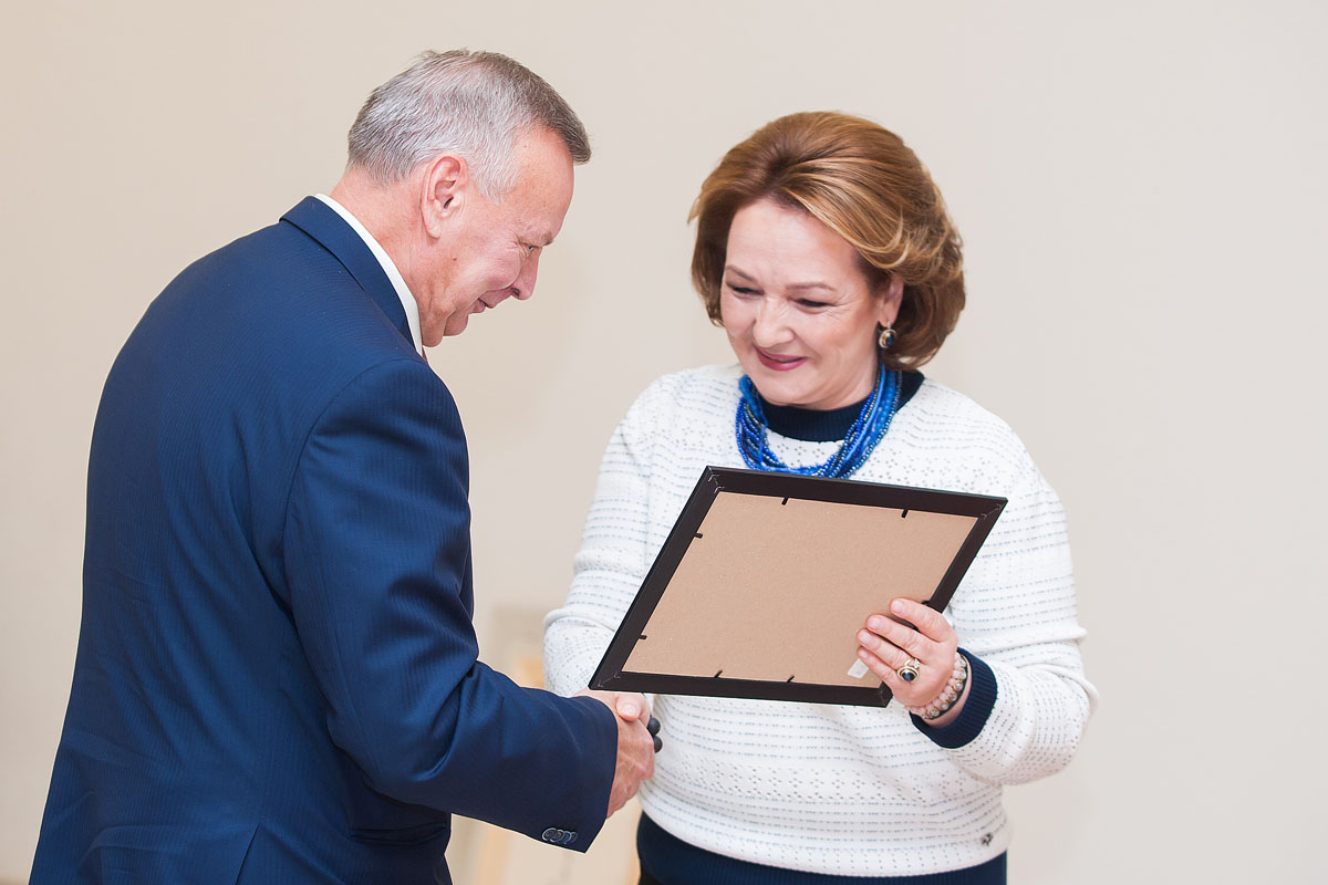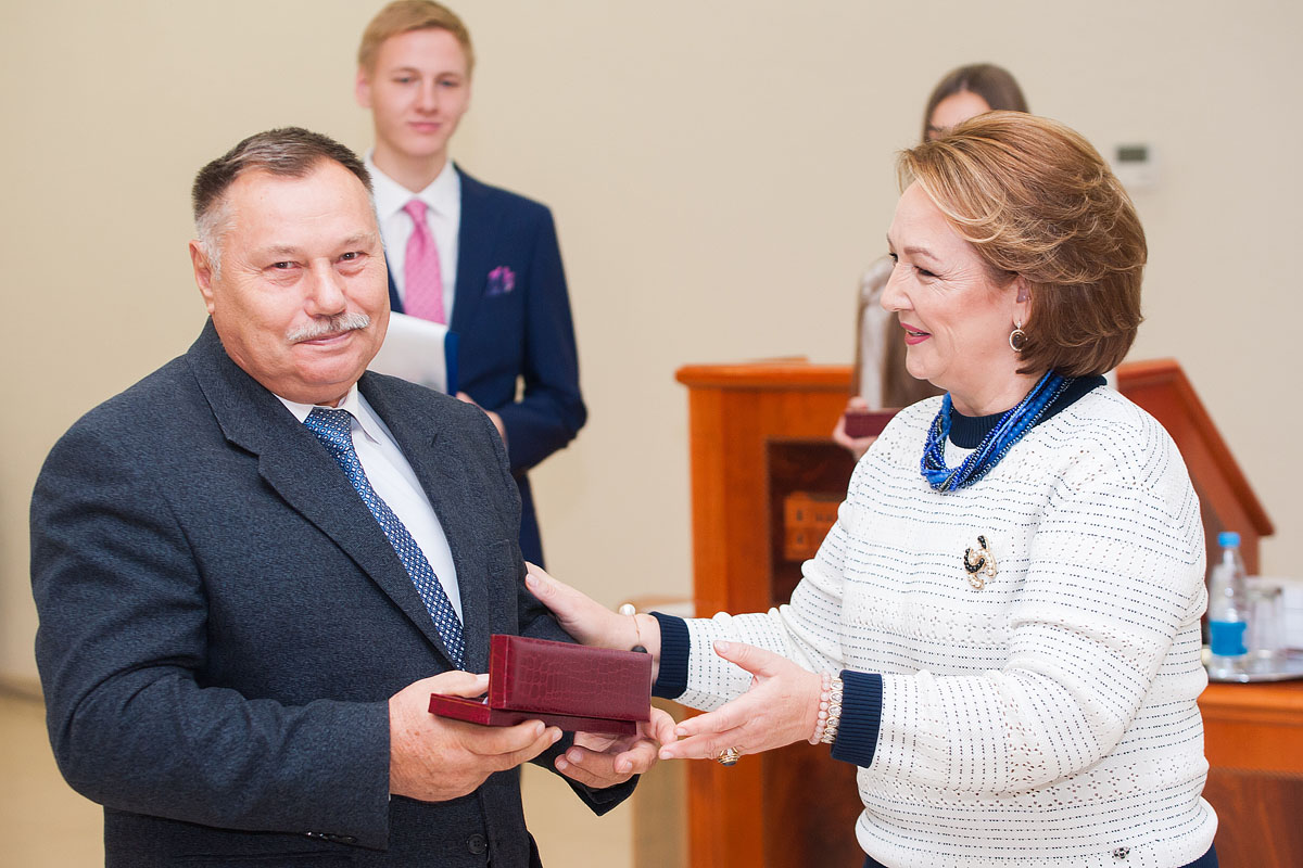 Галина Золина также добавила, что для экономического факультета подготовлен подарок в честь славной даты — уникальная по своим техническим характеристикам интерактивная доска. Затем она вручила ведомственные награды Минсельхоза России педагогам и сотрудникам экономического факультета.
