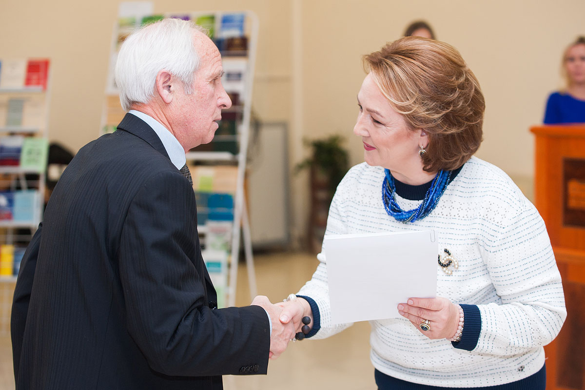 27 Октябрь / 2017Заседанию Совета сопутствовало поистине праздничное настроение. Особая атмосфера царила с самого начала мероприятия, когда в актовом зале ЦНБ имени Н.И. Железнова только начинали собираться преподаватели, студенты факультета-именинника. Они встречались у выставочного стенда с научными трудами экономистов академии, обменивались поздравлениями и скрепляли искренность своих пожеланий дружескими рукопожатиями.