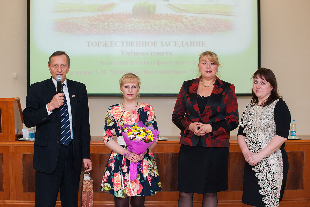 Так, за многолетний добросовестный труд, большой вклад в подготовку высококвалифицированных специалистов страны и развитие агропромышленного комплекса Российской Федерации благодарностями удостоены заведующая кафедрой экономики Юлия Чутчева, доценты кафедры политической экономии Гульнара Джанчарова и Виктория Рахаева, доценты кафедры экономики Гани Ибиев и Андрей Романов, доцент кафедры экономической кибернетики Галина Светлова и профессор кафедры организации производства Юрий Шумаков. Именными часами министра сельского хозяйства Александра Ткачева награждены профессора Юрий Агирбов, Дмитрий Алексанов, Владимир Водянников, Вячеслав Козлов, а также заведующий кафедрой управления Валерий Кошелев и заведующий кафедрой экономической кибернетики Анатолий Филатов.
