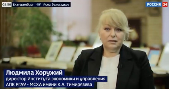 Директор Института экономики и управления АПК Людмила Ивановна Хоружий и доцент кафедры финансов Ольга Викторовна Синельникова выступили экспертами в программе «Специальный репортаж» телеканала Россия 24. Учёные рассказали телезрителям об образовательных курсах Тимирязевской академии в выпуске на тему «Поле в кармане. Как цифровизация помогает российским аграриям».