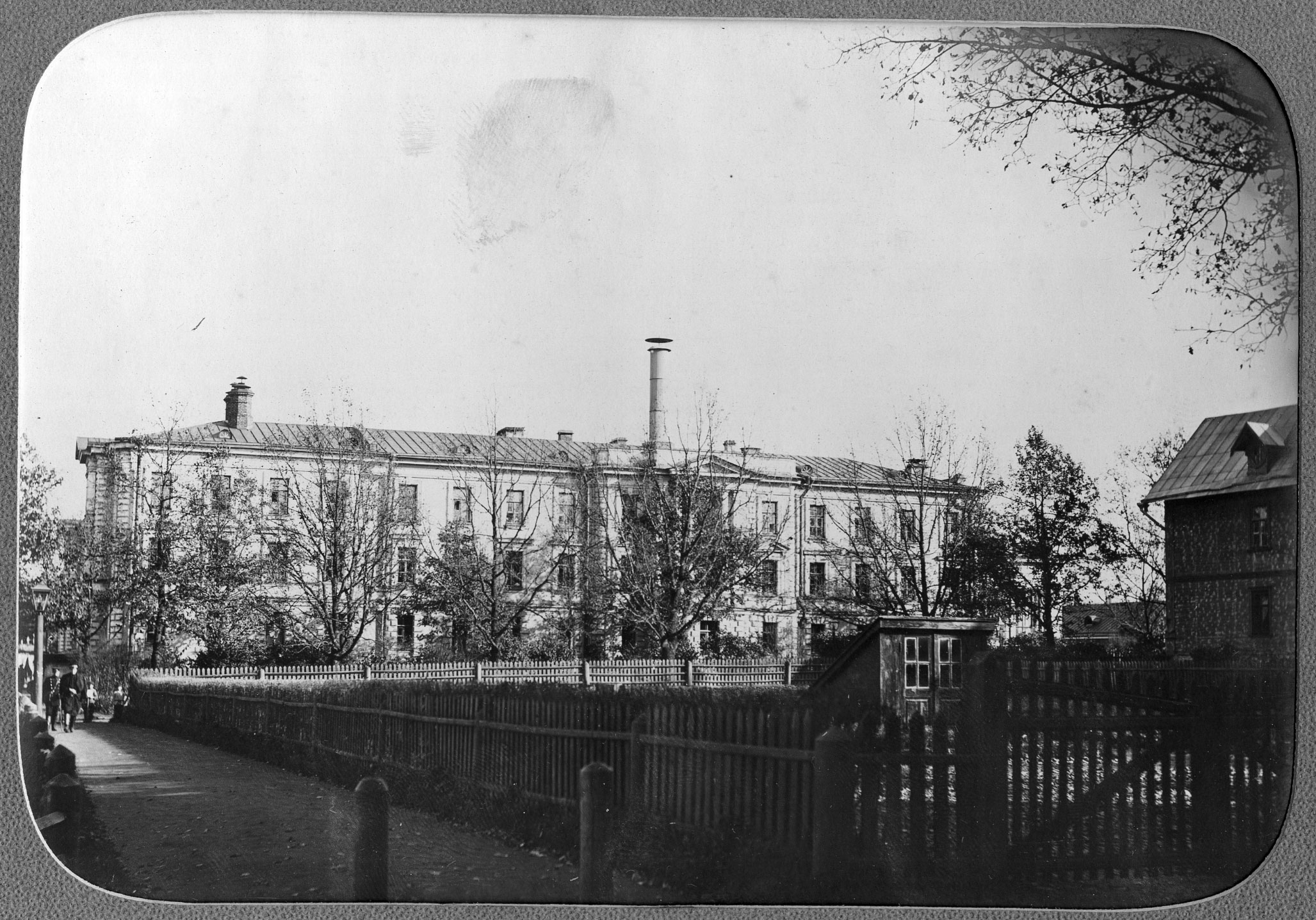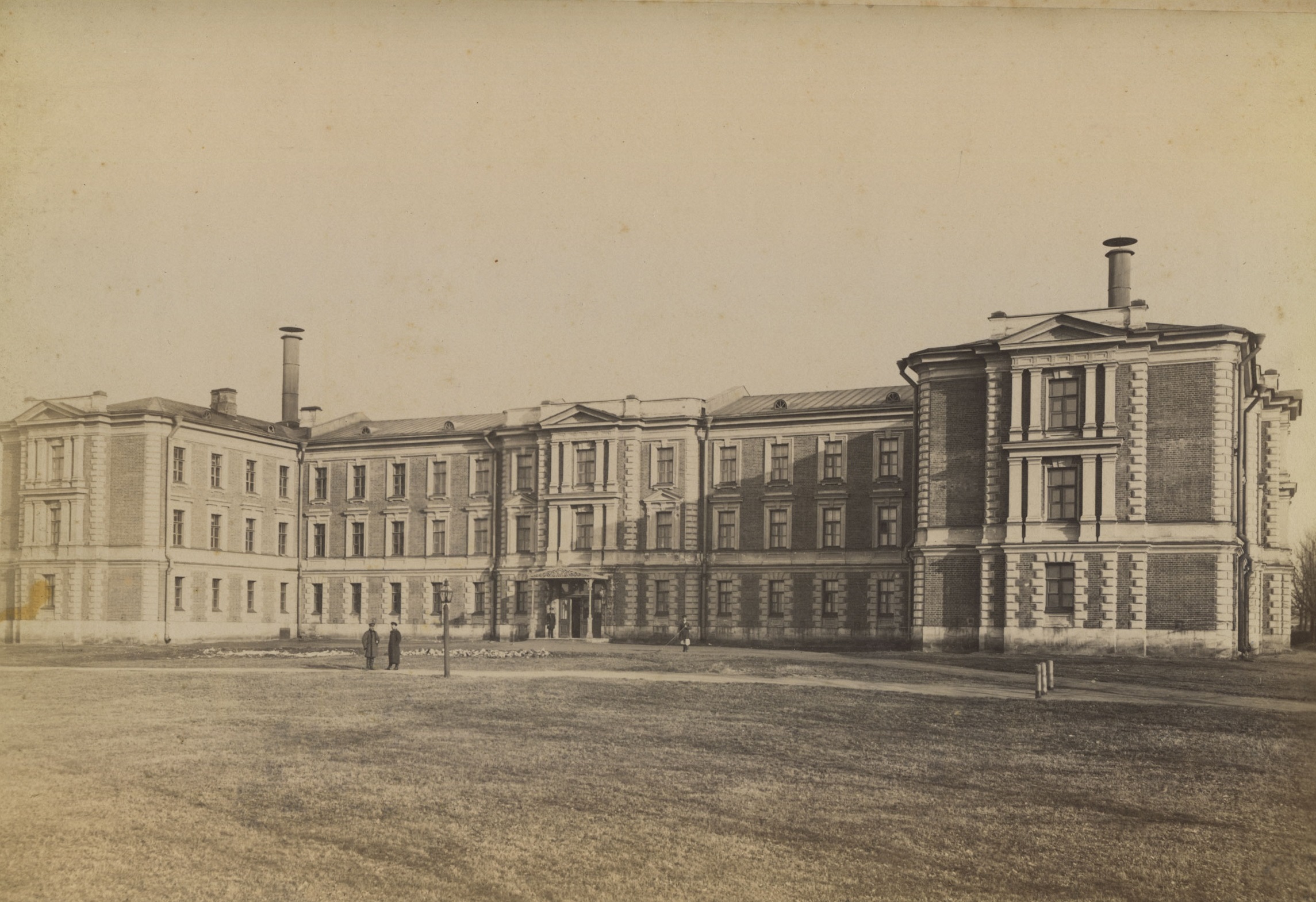 История архитектурного объекта восходит к 1885-1886 годам. Строительство корпуса с квартирами, студенческими номерами и типографией велось под руководством преподавателя академии, инженера Сергея Ивановича Тихомирова. С южной стороны к зданию был пристроен многоцелевой зал для внеклассной подготовки, проведения балов и благотворительных концертов. В нем же располагались столовая и буфет.