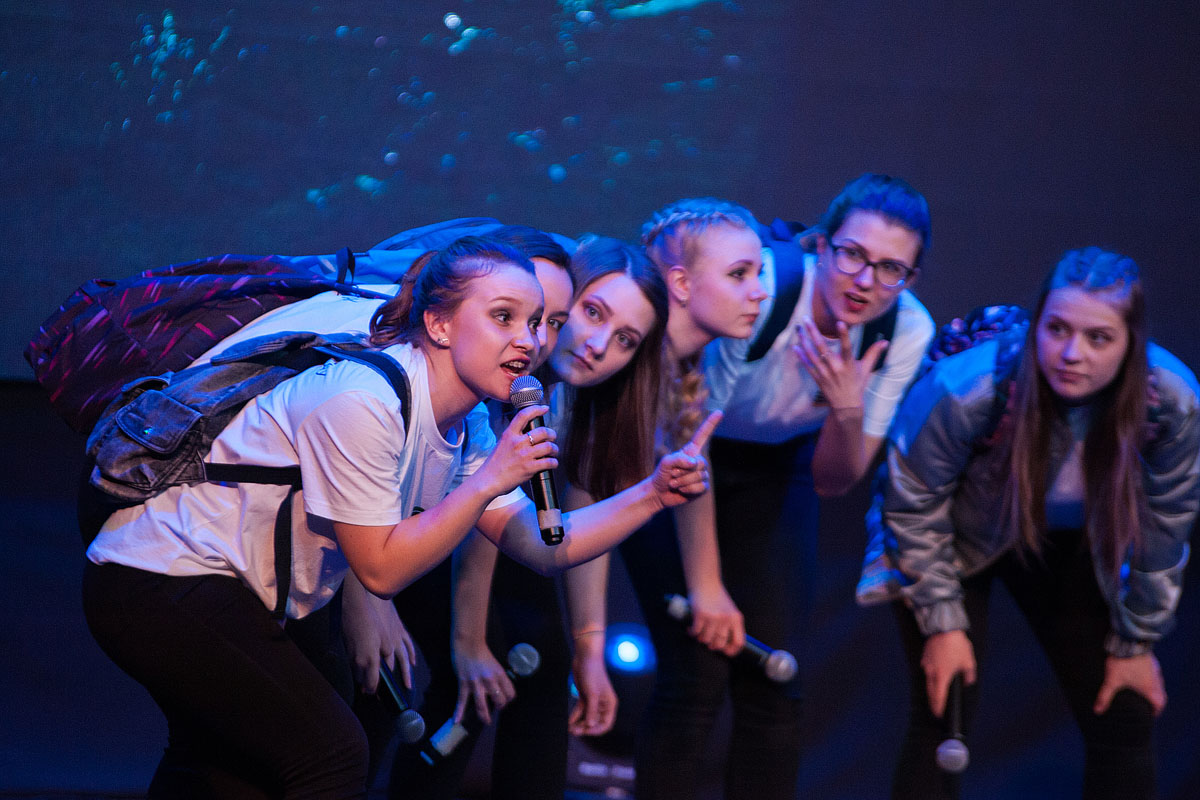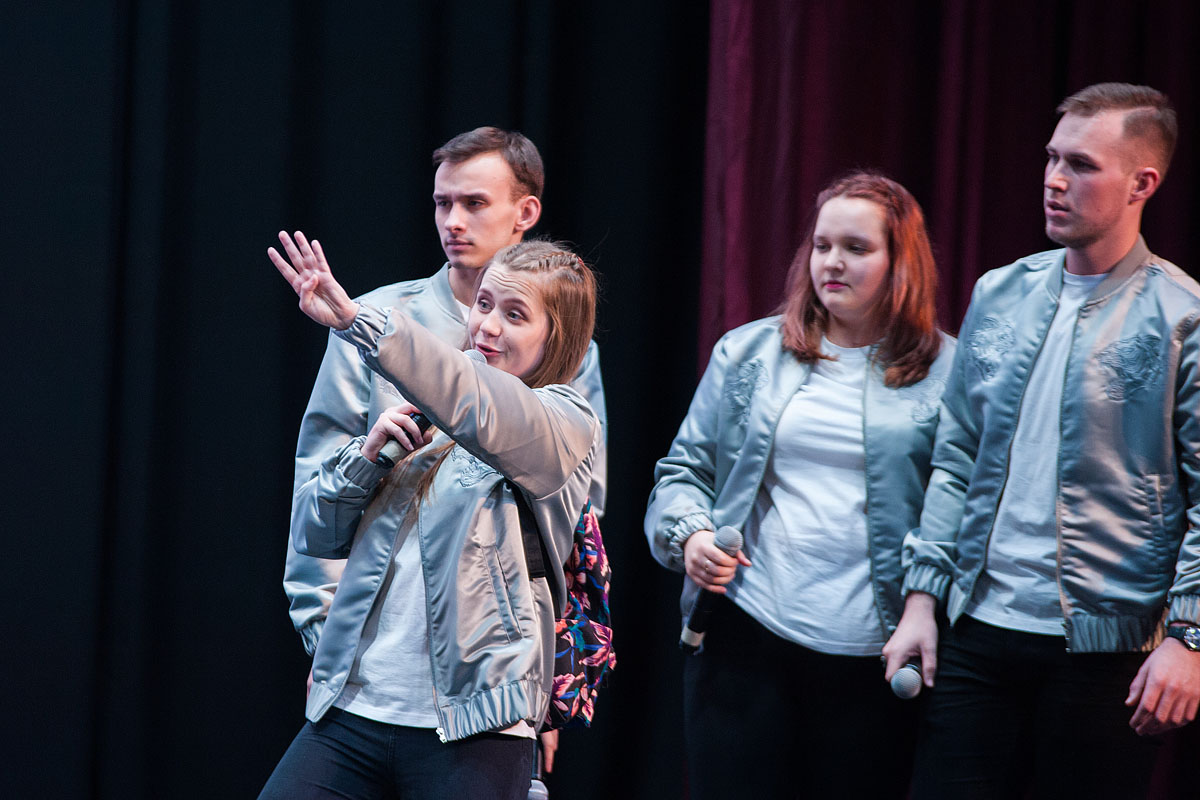 22 Март / 2018Уже в фойе концертного зала зрителей встречала «космическая» фото-зона и тематические угощения: печенья с надписью «ПАЭ», конфеты, кексы. Ребята в футуристических костюмах вручали программки.