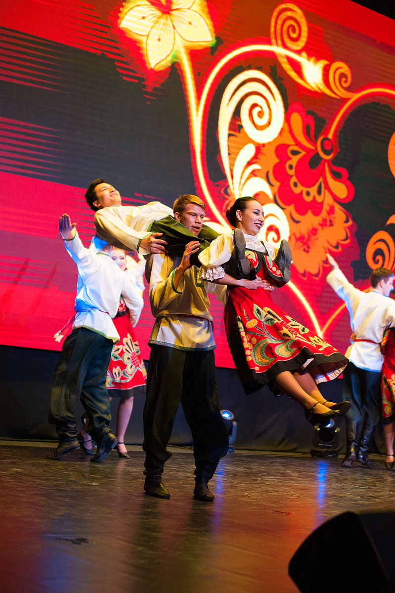 Выразительная танцевальная пластика, народный колорит, сильные голоса вокалистов никого не оставили в зале равнодушным. Особенно запомнились несколько номеров: танцы «Визитка», «Праздничная проходная», стихотворение «Мир, в котором мы живем», прочитанное автором — студенткой 301 группы Зариной Техмезовой.