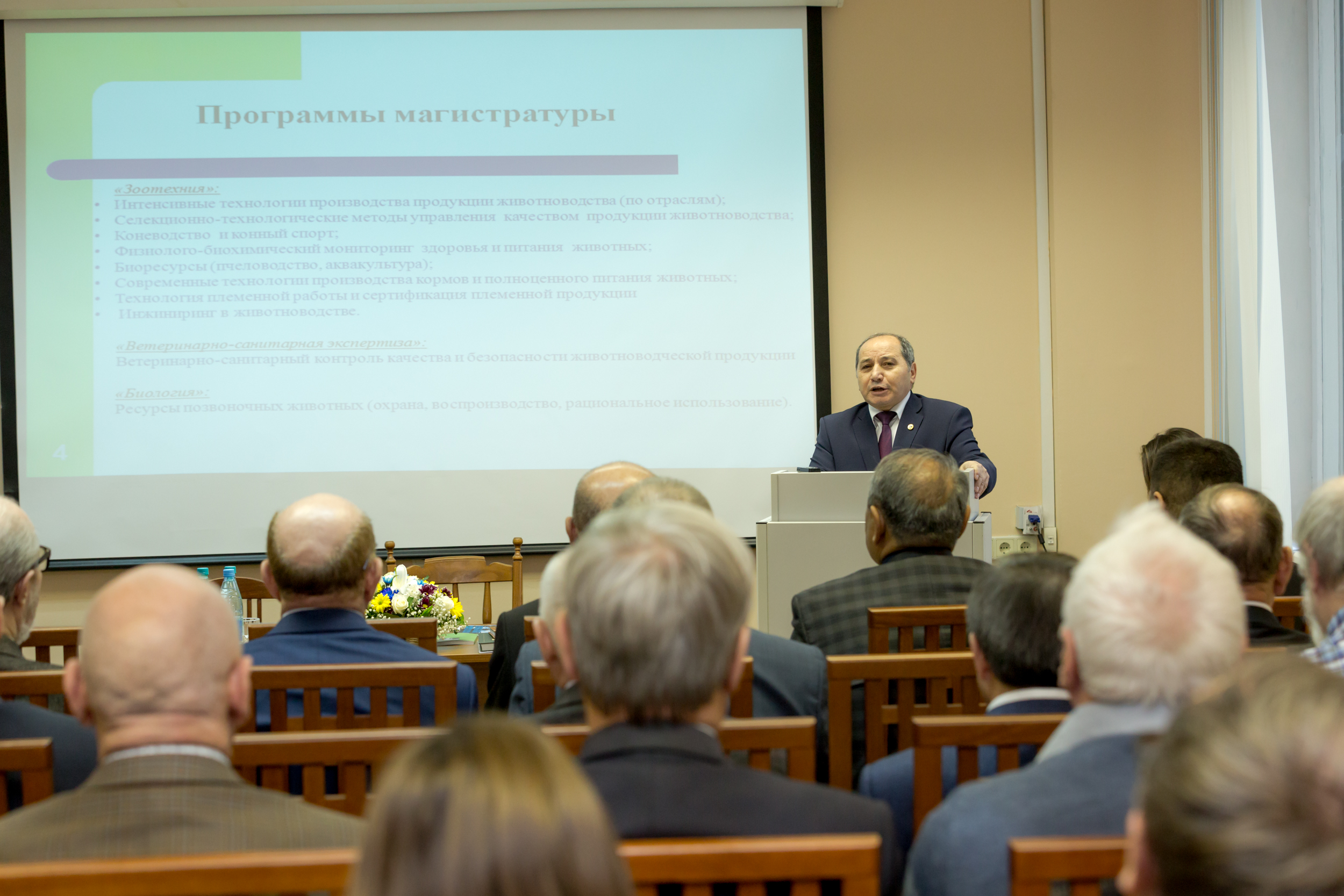 С обширным докладом об истории создания факультета зоотехнии и биологии выступил его декан, Академик РАН, профессор Юсупжан Артыкович Юлдашбаев. Факультет, напомнил он, образован в октябре 1934 года на базе отделения животноводства агрономического факультета Петровской земледельческой и лесной академии – ныне РГАУ –МСХА имени К.А. Тимирязева. Его история тесно связана с развитием зоотехнической науки в России. В разные годы здесь работали прославленные ученые И.Н. Чернопятов, П.Н. Кулешов, Н.П. Червинский, М.И. Придорогин, М.Ф. Иванов. Большой вклад в науку внесли Академики Е.Ф. Лискун, И.С. Попов, С.И. Сметнев, А.П. Редькин, А.И. Николаев, В.С. Шипилов, Н.И. Клейменов.