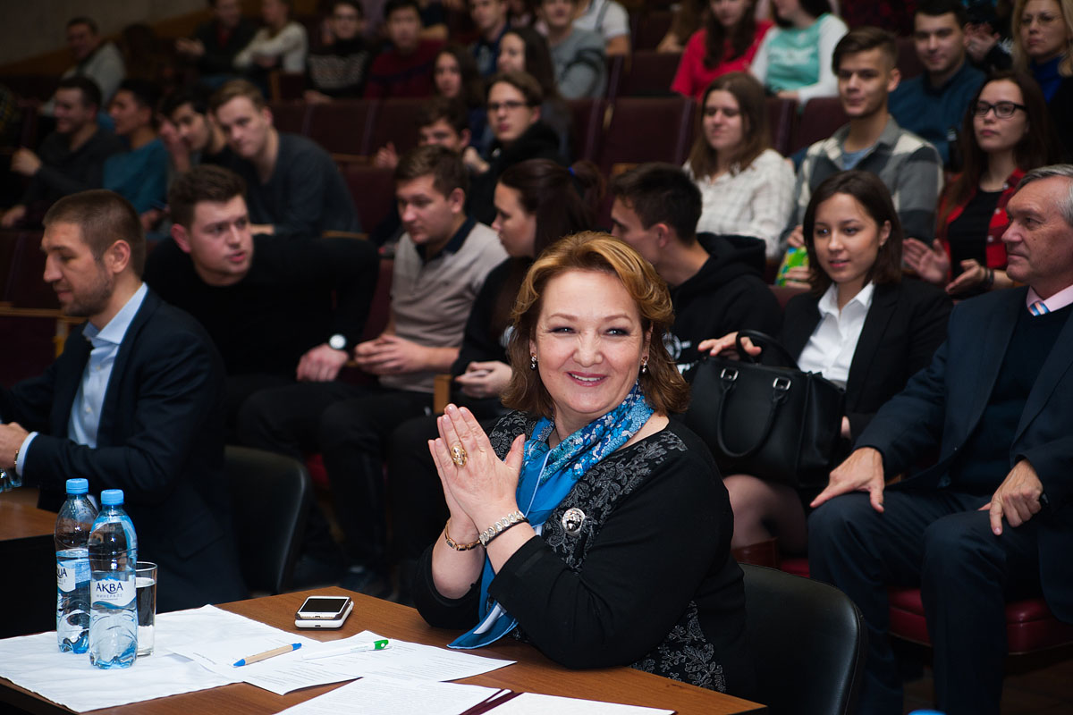 05 Декабрь / 2017Судить историческое событие выпала честь маститой коллегии жюри! Компанию и.о. ректора Галине Золиной составили чемпион мира по боксу среди профессионалов и депутат Госдумы Дмитрий Пирог, солист национального театра «Золотое кольцо» Виктор Артемьев, актер и участник первой лиги КВН 2016 года Павел Епишко, председатель Объединенного совета обучающихся Тимирязевки Ксения Панина и председатель профсоюзного комитета студентов РГАУ-МСХА Алексей Братко.