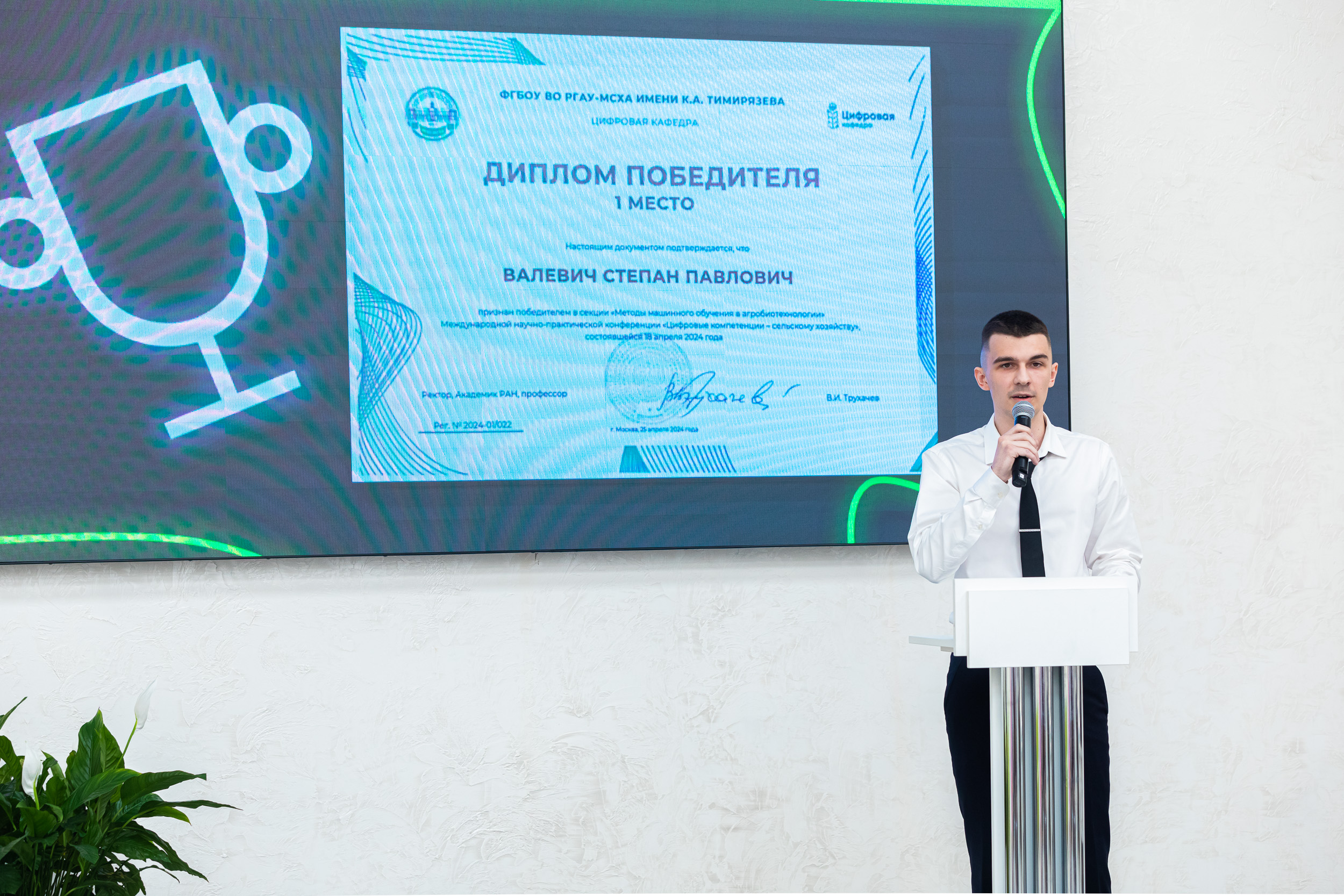 По итогам Марафона цифровых кафедр 2024 года были определены 12 лучших команд, которые продемонстрировали высокую проработку и актуальность проектов и образовательных программ в сфере IT. Финальный этап состоялся в Тимирязевской академии, а на питчинг-сессии финалистов выступил студент-биотехнолог вуза Степан Валевич, внедряющий методы машинного обучения в технологии микроклонального размножения. Они позволяют копировать растения с лучшими характеристиками.