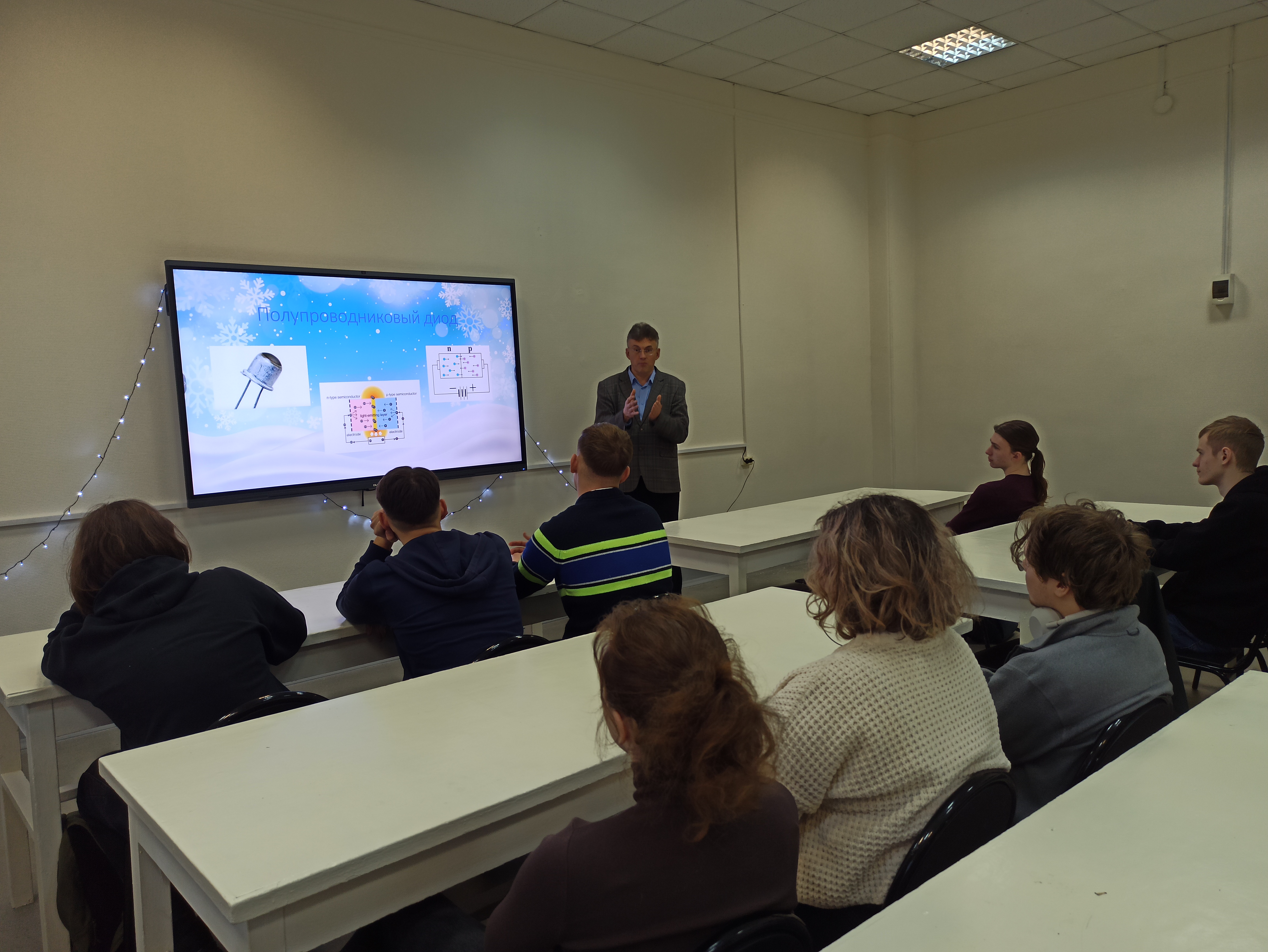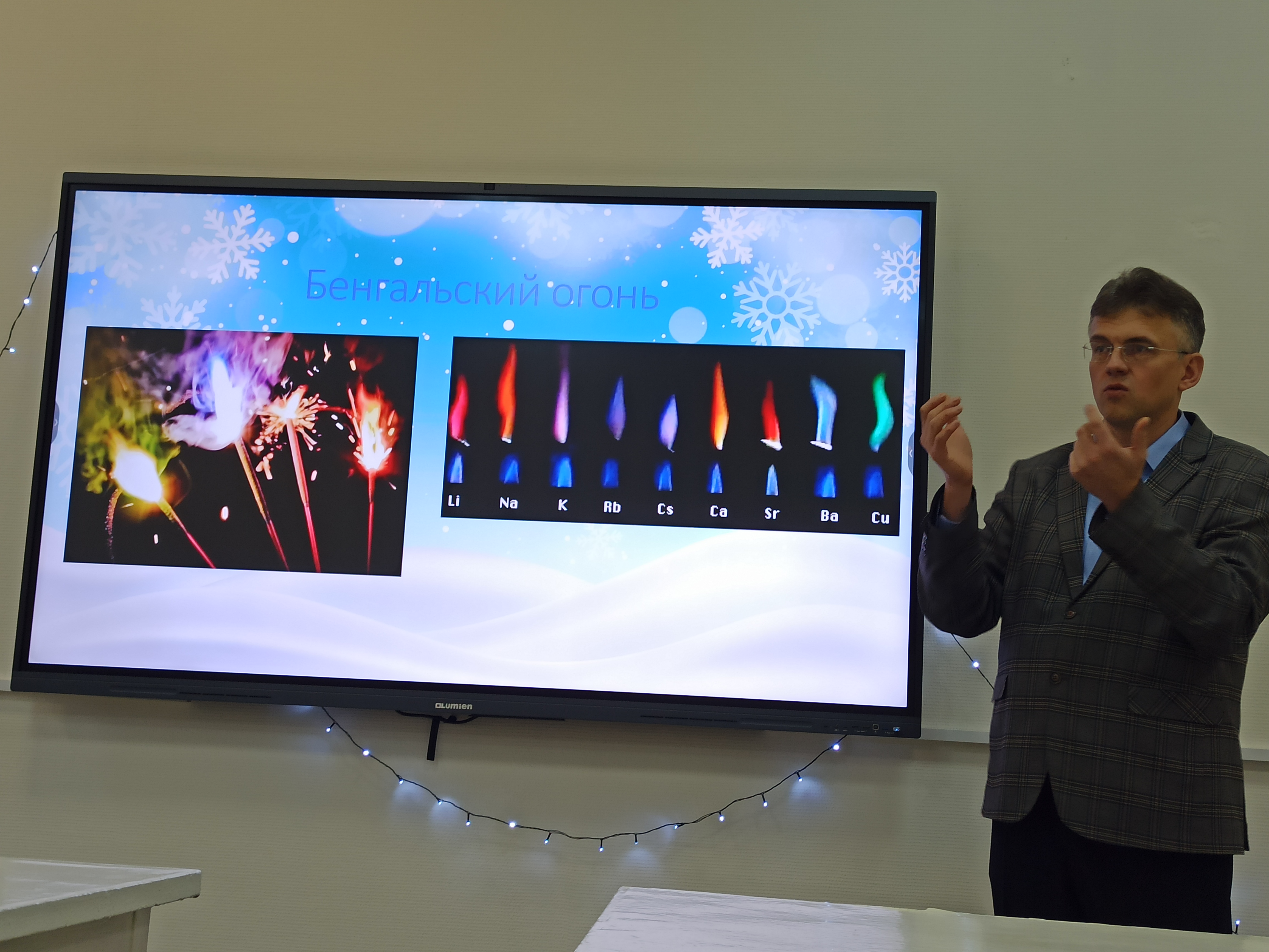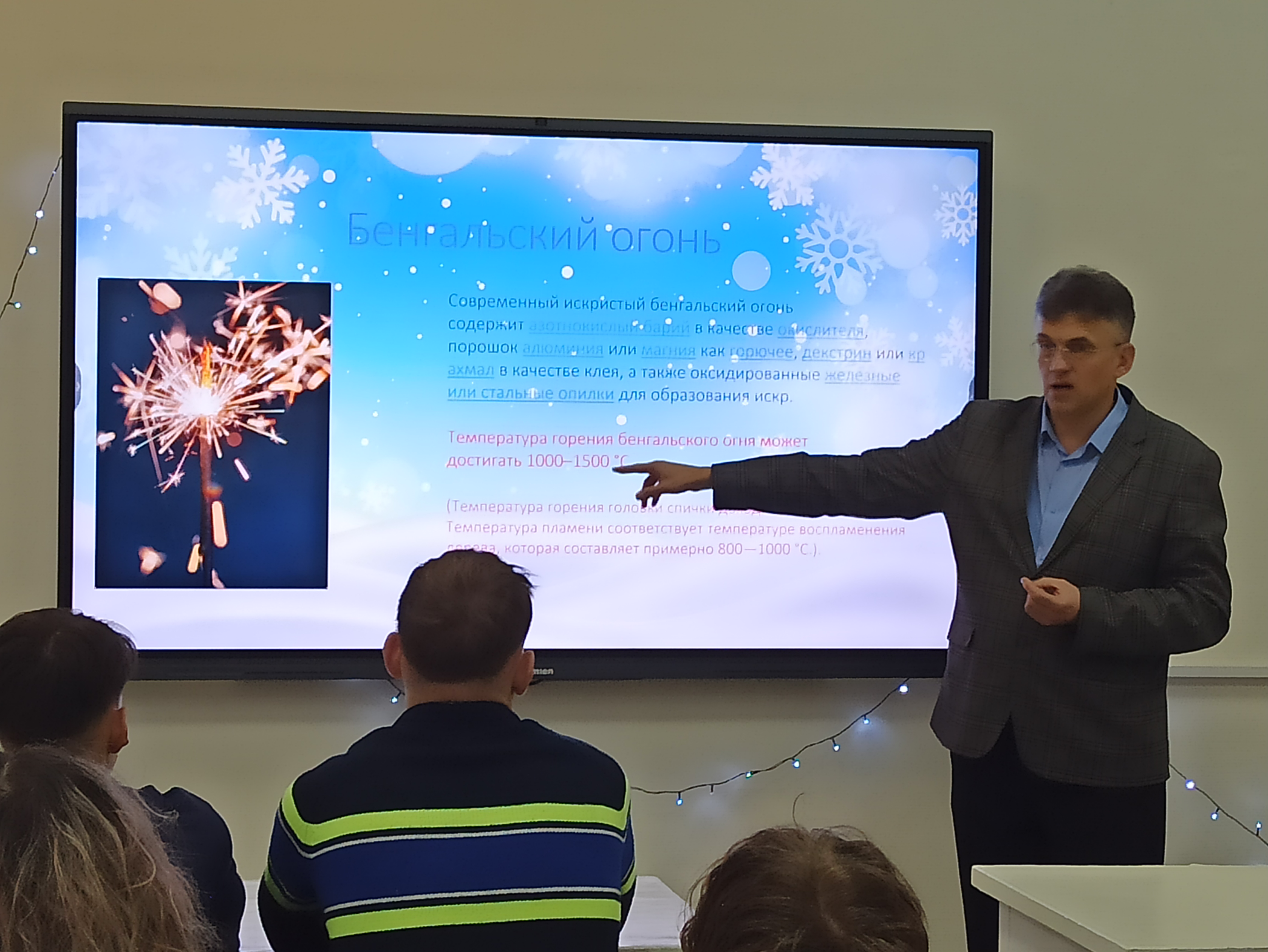 19 Декабрь / 2025Слушатели лекции познакомились с принципом работы цветных ёлочных гирлянд, узнали о том, почему искры бенгальского огня не обжигают, несмотря на очень высокую температуру его горения. С интересом ребята слушали рассказ об особенностях строения снега и льда, физических законах их формирования и разнообразии форм существования. А также с инженерной точки зрения рассмотрели особенности скольжения лыж и коньков и физические способы улучшения их скоростных характеристик. Мероприятие проходило в недавно отремонтированной аудитории кафедры с использованием новейшей интерактивной панели. Преподаватели кафедры физики и студенты оценили принципиально новое качество демонстрации познавательного материала и выражают огромную благодарность ректору Владимиру Ивановичу Трухачеву за проявленную заботу и оказанную кафедре поддержку.