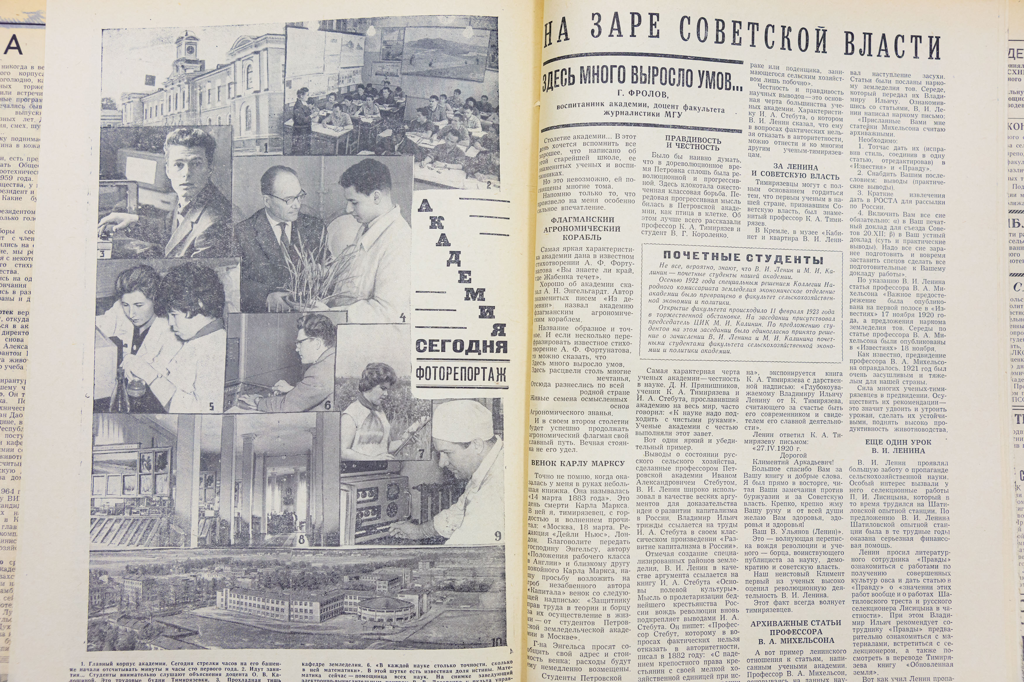 В фондах Центральной научной библиотеки имени Н.И. Железнова бережно хранится подшивка «Тимирязевки» 30-х годов, которая является бесценным историческим документом. На её страницах можно найти живые свидетельства эпохи: письма, жалобы, призывы к устранению недостатков, вдохновляющие лозунги, отражающие дух того времени.