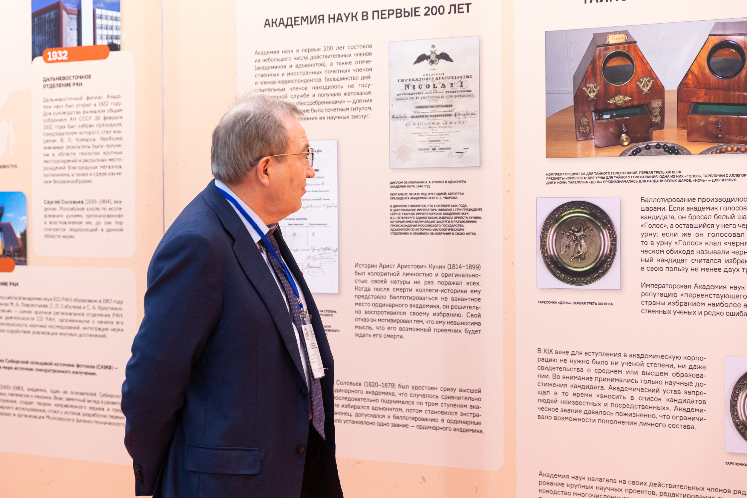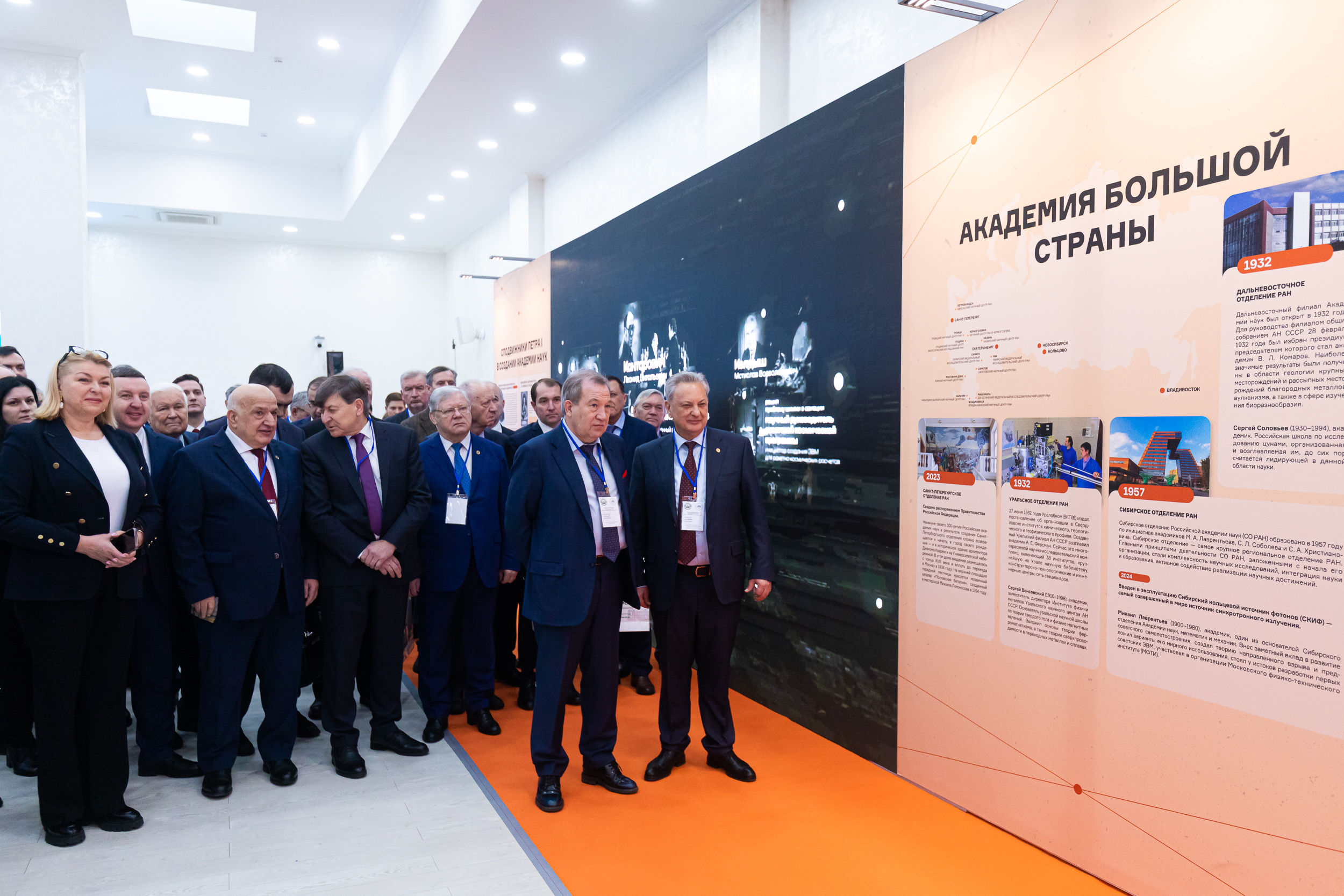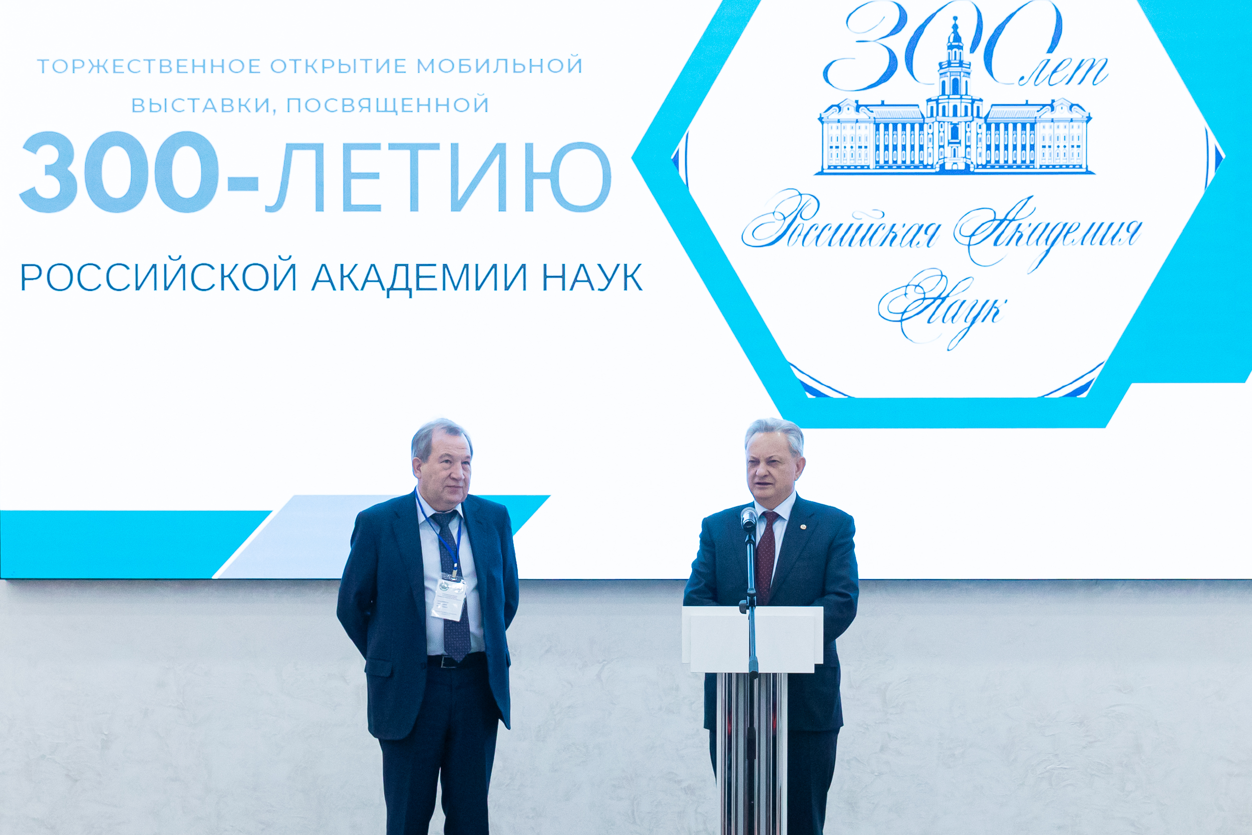 Обращаясь к гостям торжественной церемонии открытия, президент РАН Г.Я. Красников отметил, что экспозиция отражает традиции Академии наук, сложившиеся за три столетия. Среди них – преемственность поколений, уважение к великим учителям и открытость для широкого научного сообщества.