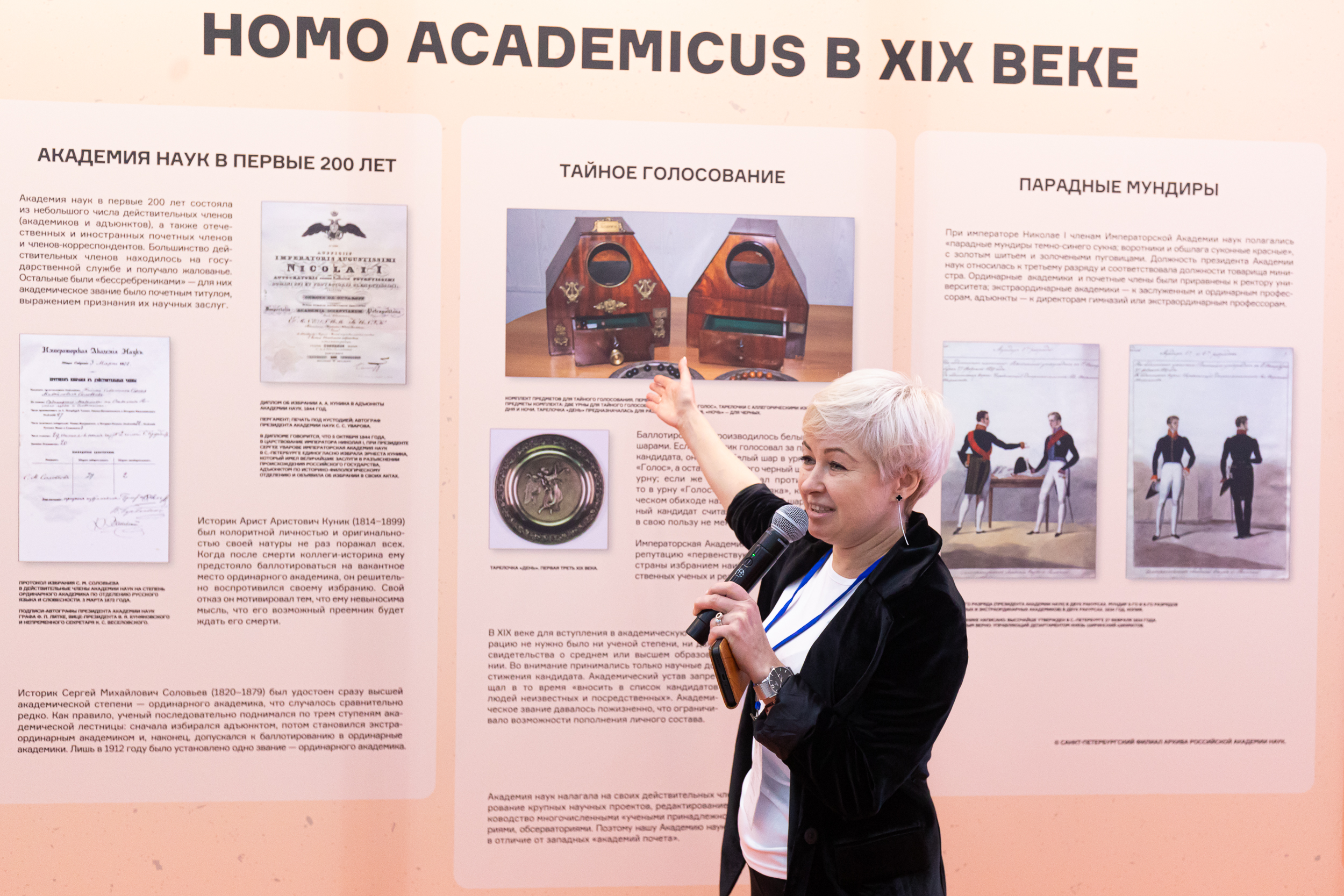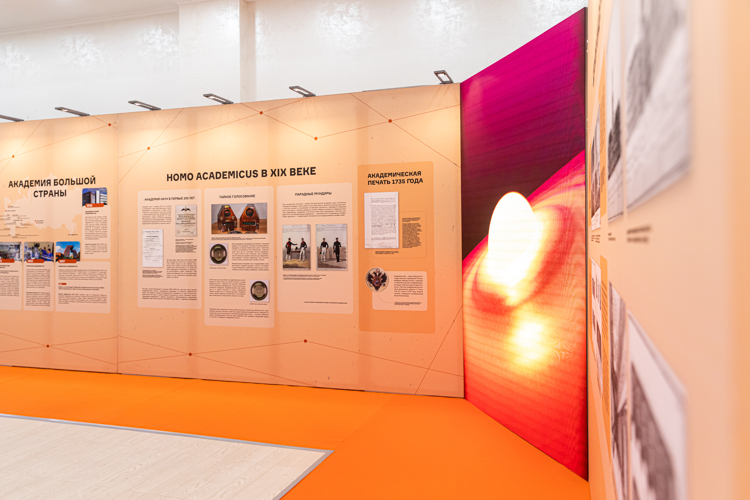 За время работы выставки ее гости познакомятся с вехами истории Российской академии наук, больше узнают о традициях, на которые сегодня опирается отечественная наука. Выставка охватывает несколько тематических блоков, связанных с участием учёных в жизни государства и их вкладом в мировую науку.