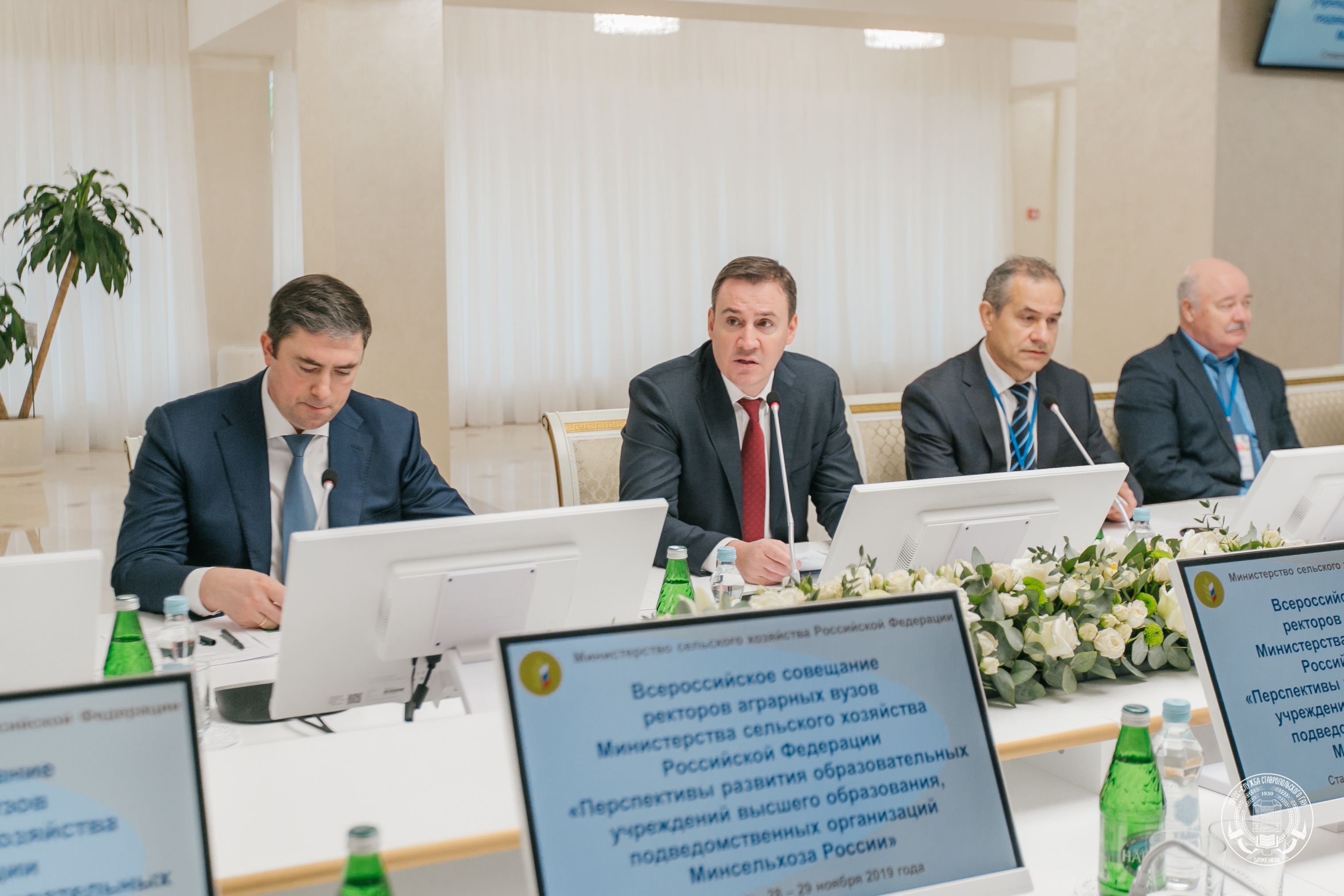 На площадке Ставропольского ГАУ, где проходит двухдневный семинар ректоров аграрных вузов Минсельхоза России, состоялось совещание под председательством Министра сельского хозяйства Российской Федерации Дмитрия Николаевича Патрушева. В мероприятии принял участие врио ректора РГАУ-МСХА имени К.А. Тимирязева, председатель Ассоциации аграрных вузов России «Агрообразование», Академик РАН, профессор Владимир Иванович Трухачев.
