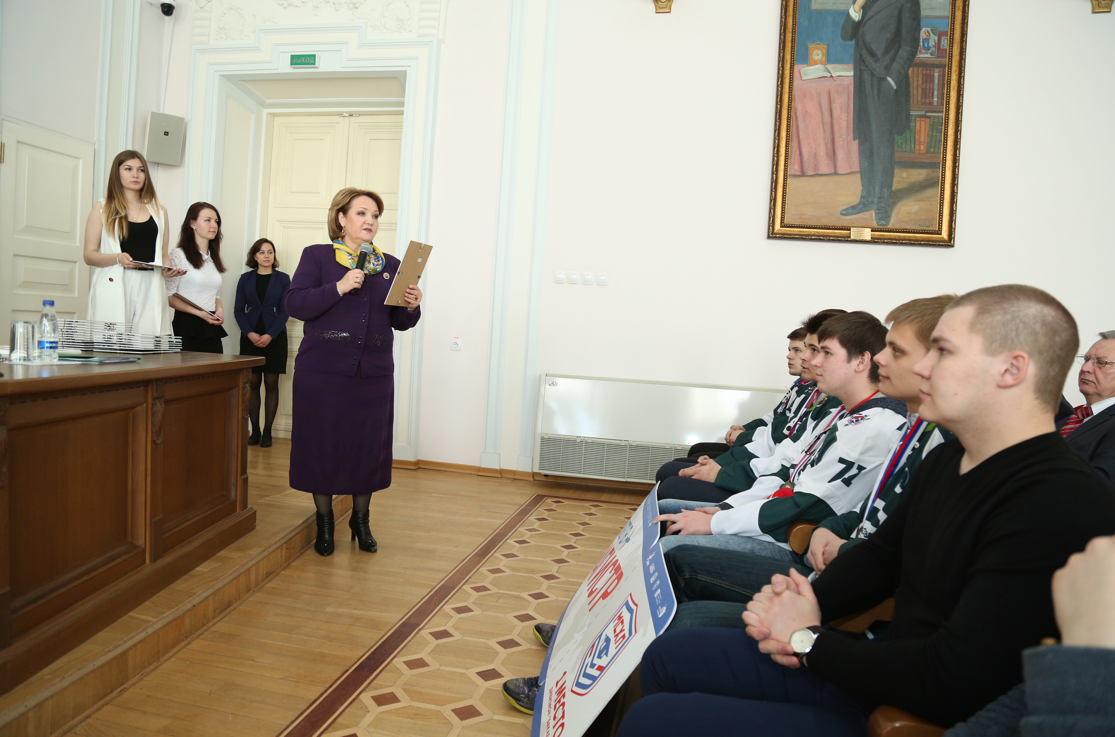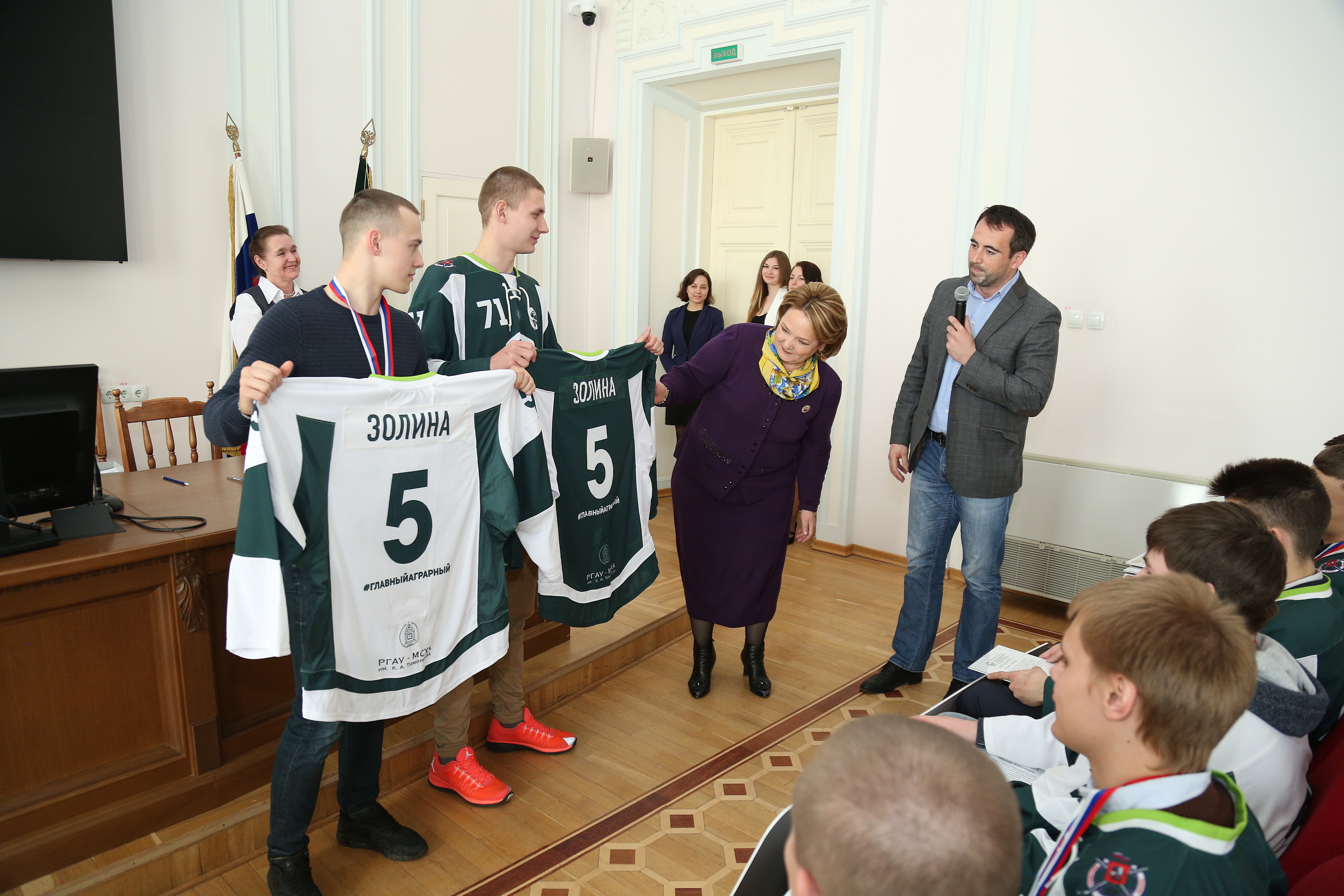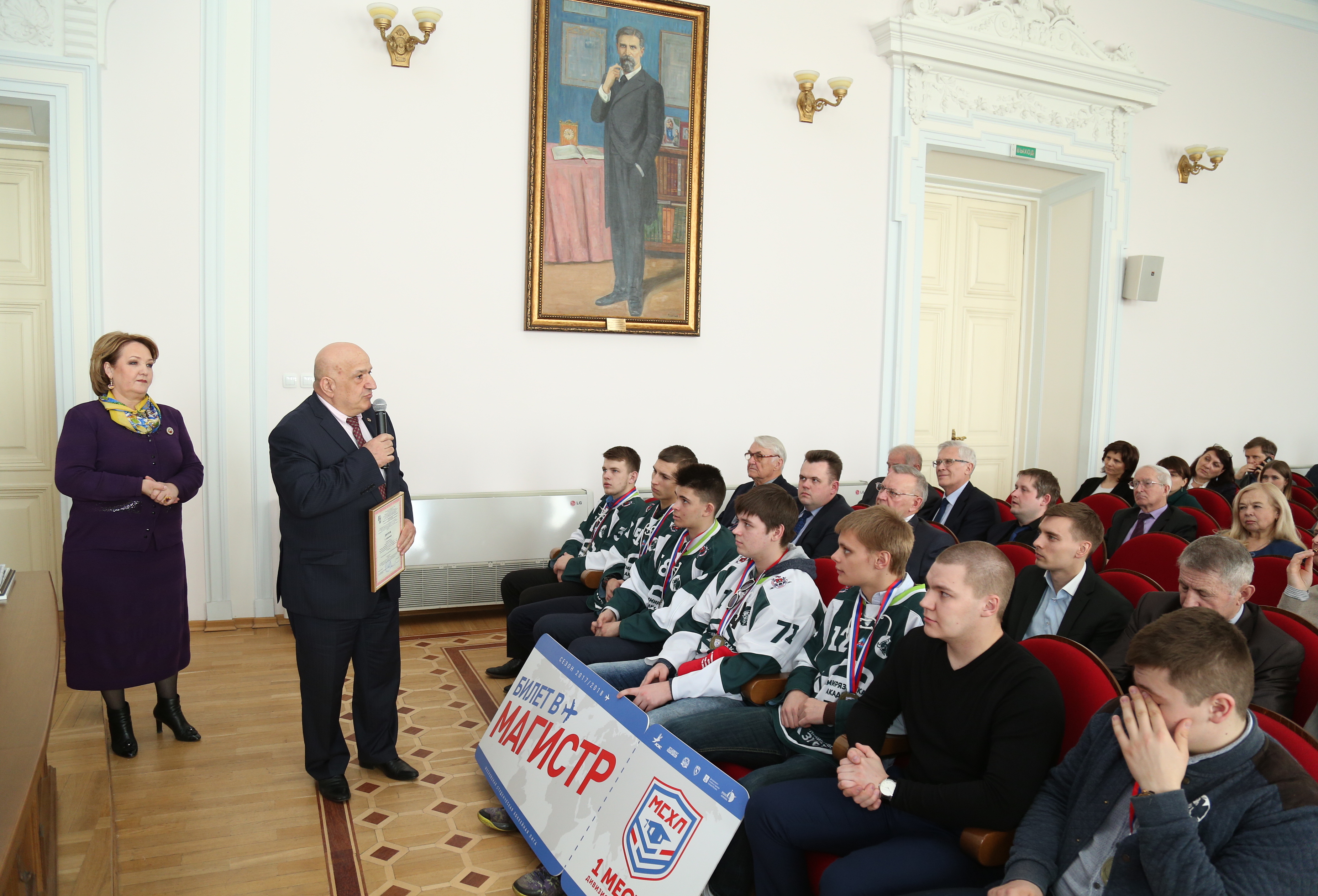 В ответном слове главный тренер команды Дмитрий Колосов поблагодарил ректора за поддержку и вместе с подопечными подарил именной хоккейный свитер, а также чемпионскую бейсболку, изготовленную по случаю победы. Тренер с гордостью отметил, что во время сезонных игр замечал в числе болельщиков деканов, заведующих кафедрами и других членов ученого совета академии.