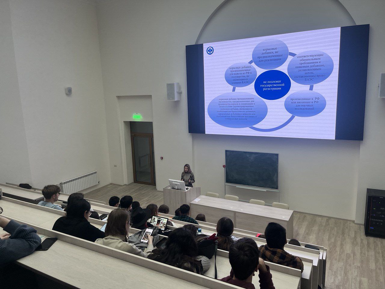28 Октябрь / 2025В ходе лекции будущие ветеринарные специалисты получили представление о системе государственной регистрации кормовых добавок в Российской Федерации. Инесса Сергеевна подробно осветила требования к документальному оформлению и методикам исследований, подчеркнув значение экспертизы, проводимой ФГБУ "ВГНКИ" для обеспечения безопасности продукции.