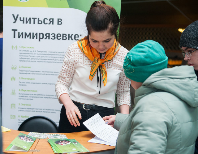 На стендах факультетов в День открытых дверей, состоявшийся 13 января, корреспонденты пресс-службы университета провели небольшой опрос среди абитуриентов и педагогов о преимуществах обучения в Тимирязевке, которая помимо агропромышленных и животноводческих направлений, готовит кадры в области финансов, менеджмента, экономики, строительства, инженерии, рекламы и связей с общественностью. Выпускники получают разностороннее образование, в том числе глубокие знания в смежных отраслях.