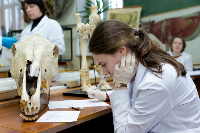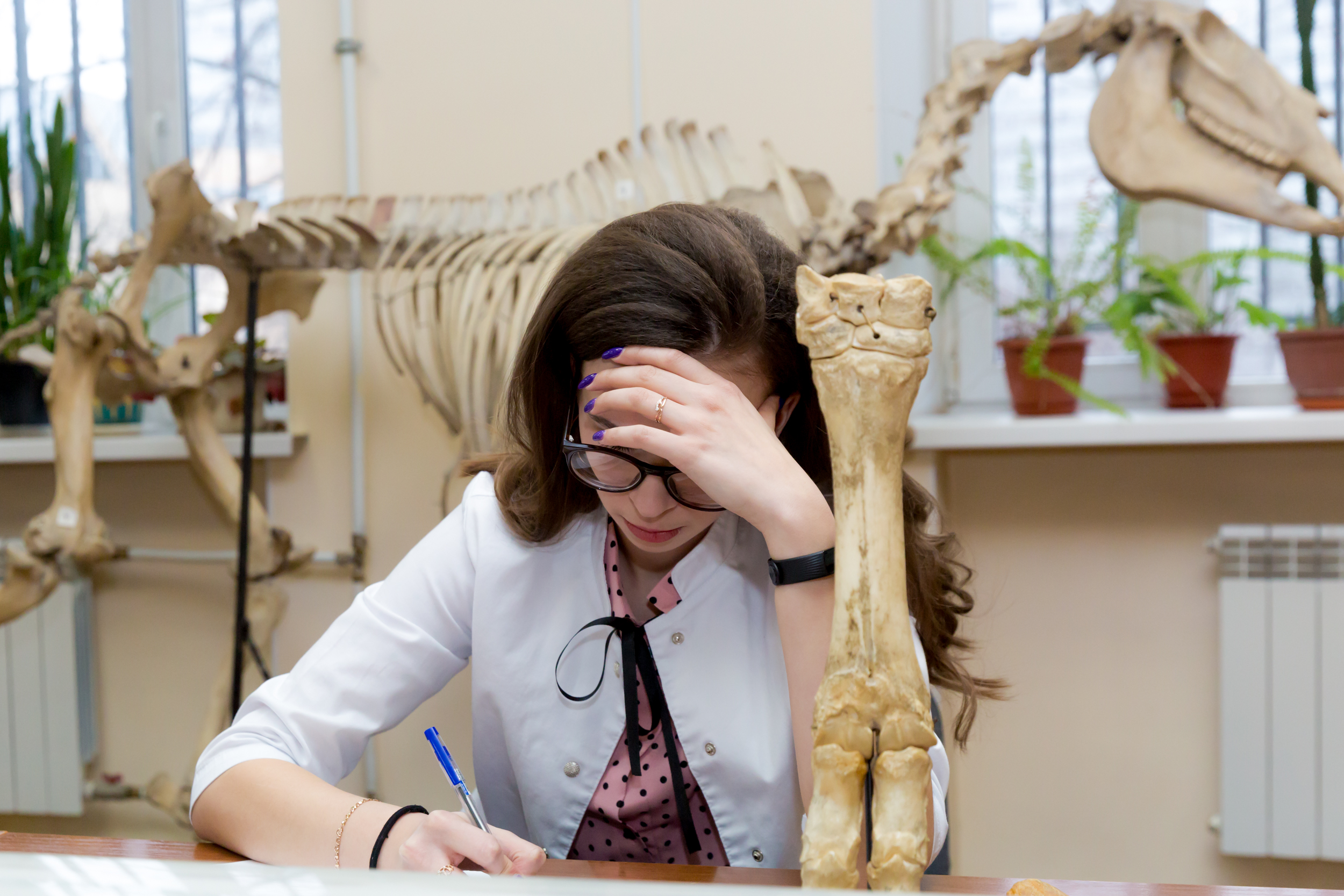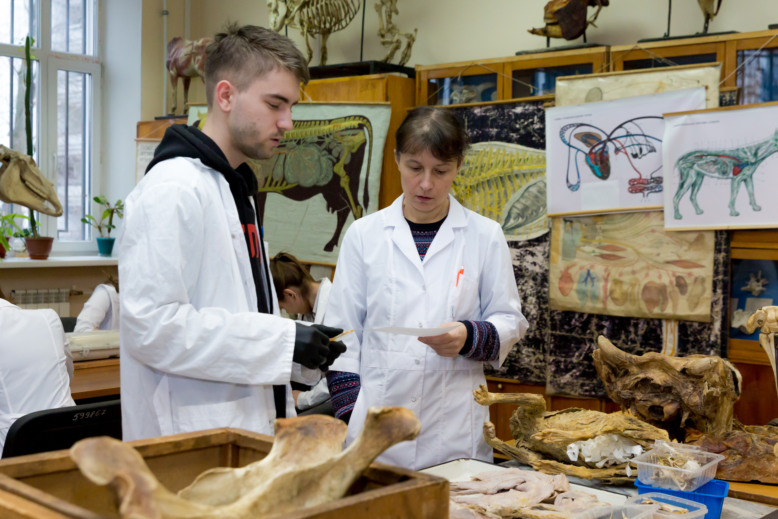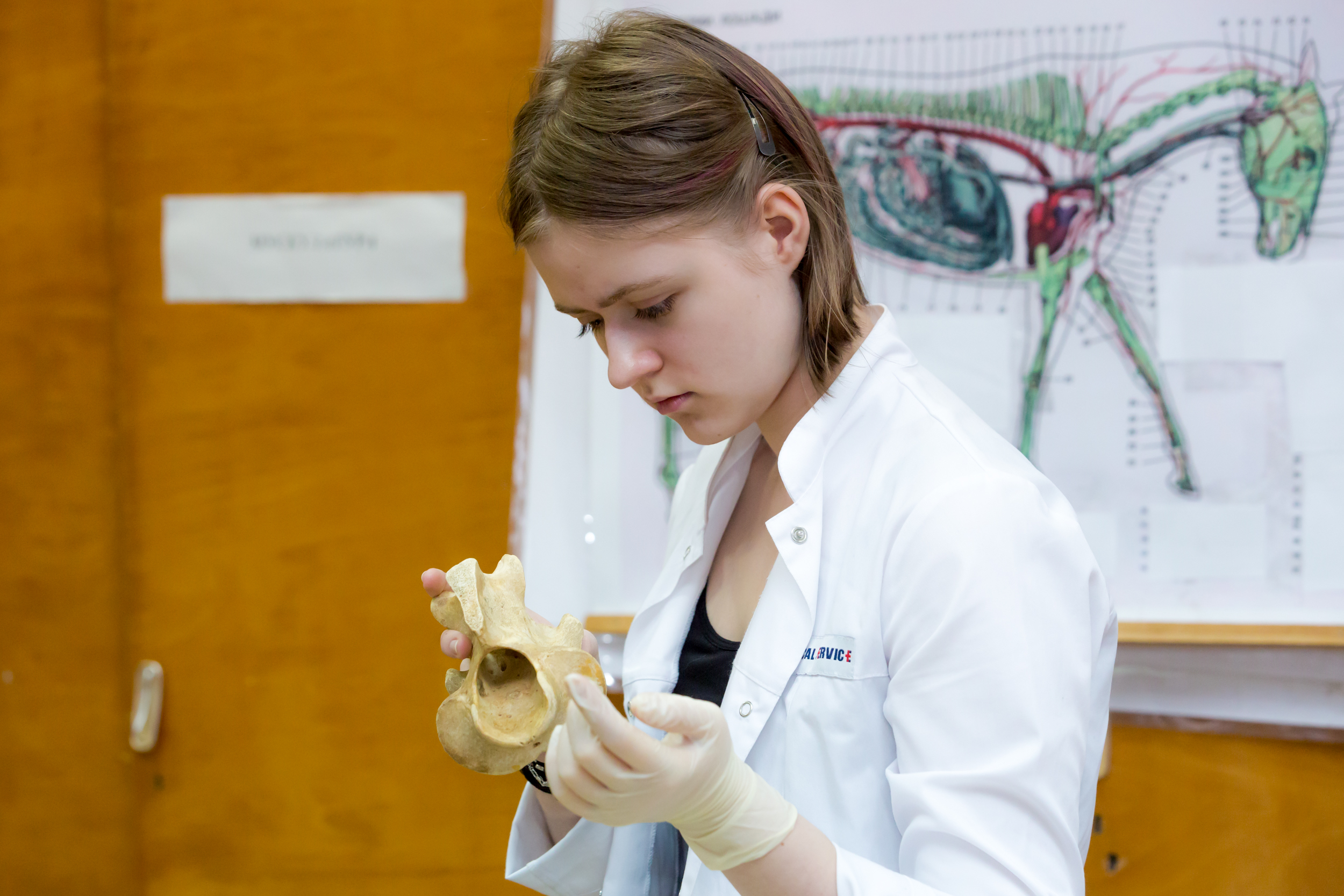Одна из особенностей экзамена заключается в том, что он проходит с использованием натуральных препаратов, то есть у студента нет шанса просто найти ответ в Интернете или воспользоваться шпаргалкой. В течение учебного года препараты находятся в открытом доступе для всех обучающихся. У студентов есть возможность в свободное время наглядно изучать позвонки, распилы черепа, кости конечностей и мышцы четырех видов животных: коровы, лошади, свиньи, собаки.