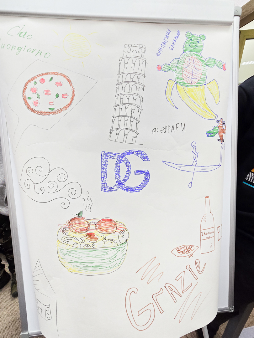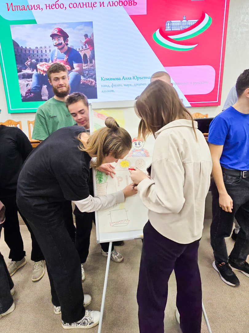 Программа мероприятия была насыщенной и познавательной. Старший преподаватель кафедры иностранных и русского языков Якопо Винья-Тальянти представил свой доклад, в котором рассказал о значимой роли итальянского языка в мировом культурном и научном пространстве. Старший преподаватель Елизавета Гериева провела увлекательную викторину, посвященную итальянской кухне, истории, искусству и культуре в целом. Студенты проявили блестящую эрудицию и осведомленность, показав глубокие знания. Старший преподаватель Елизавета Сидорова раскрыла интересную тему о роли итальянского языка в мировой мультипликации, удивив многих неожиданными фактами. Руководитель лингвистического-образовательного центра «Лингва-МСХА» Лариса Бабушкина поделилась своими яркими впечатлениями от пребывания в Италии и рассказала о возможностях изучения итальянского языка в лингвистическом центре при университете. Доценты кафедры иностранных и русского языков Алла Команова и Елена Ширлина провели интерактивные мастер-классы, где студенты смогли попробовать себя в роли коллажистов и ознакомились с особенностями невербального общения, в частности, итальянской жестикуляции, которая является неотъемлемой частью их культуры.