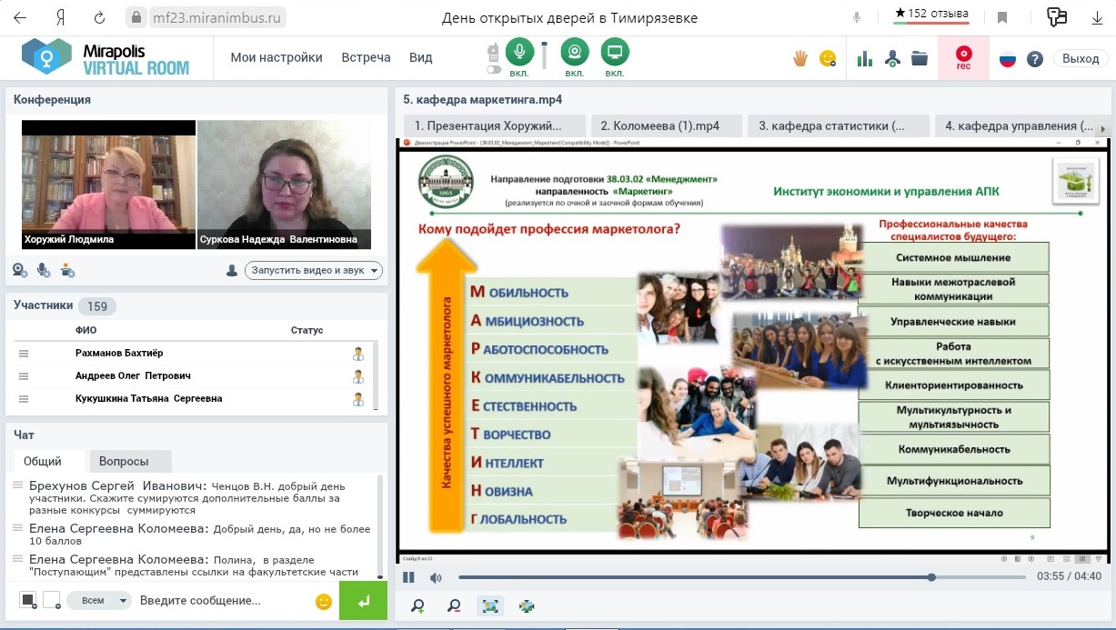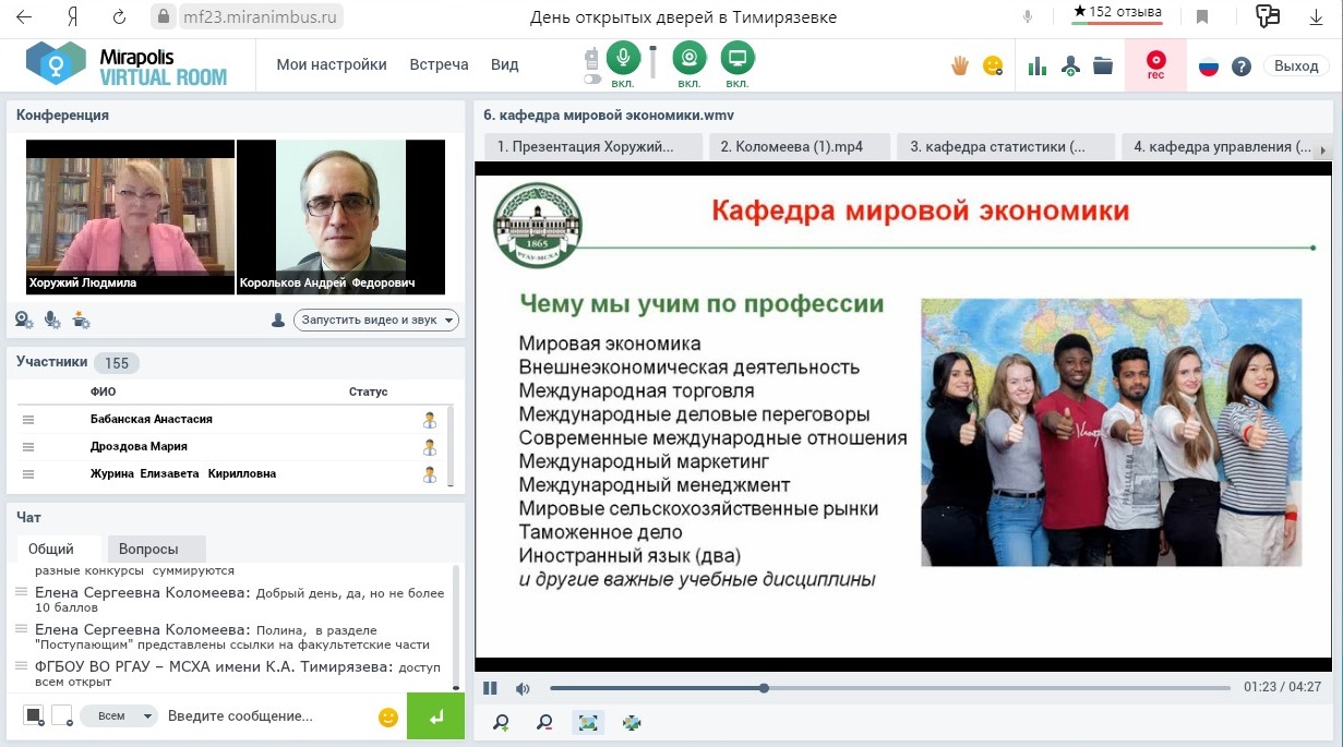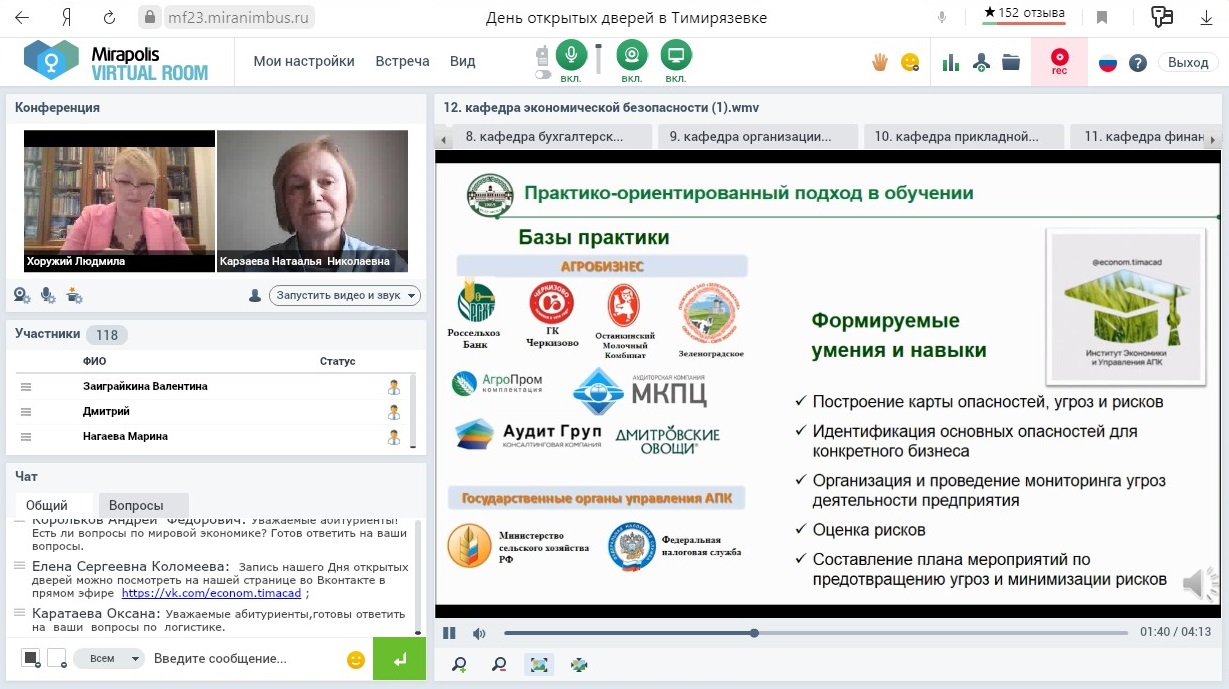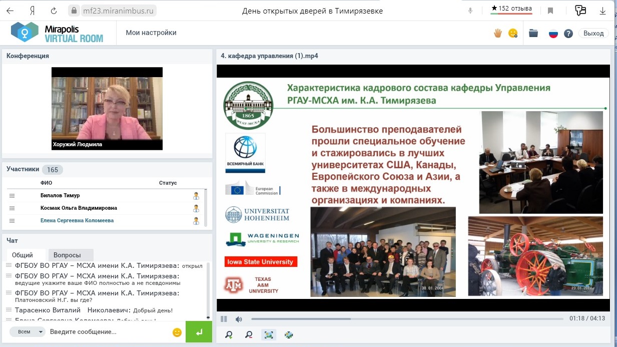 Заведующие и преподаватели выпускающих кафедр представили направления подготовки, подробно рассказав о том, где и кем работают выпускники, какими конкурентными преимуществами обладает обучение в Тимирязевской академии.