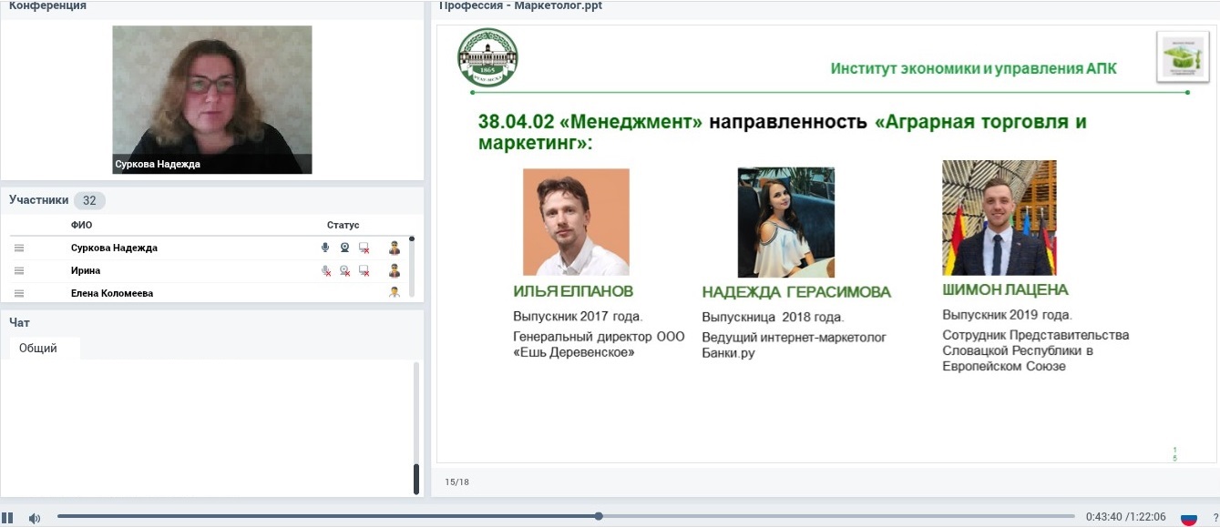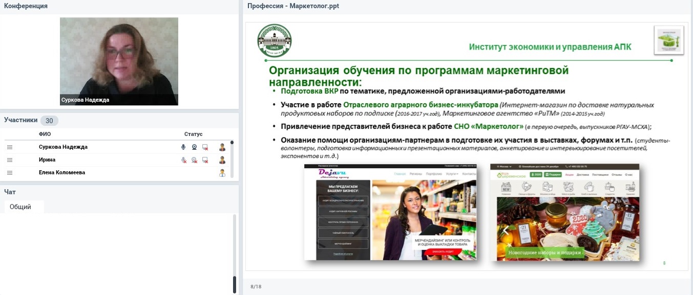 В вебинарах приняли участие студенты ИЭиУ АПК, выпускники, бизнес-партнеры института. В ходе их проведения абитуриенты задавали интересующие вопросы в чате.