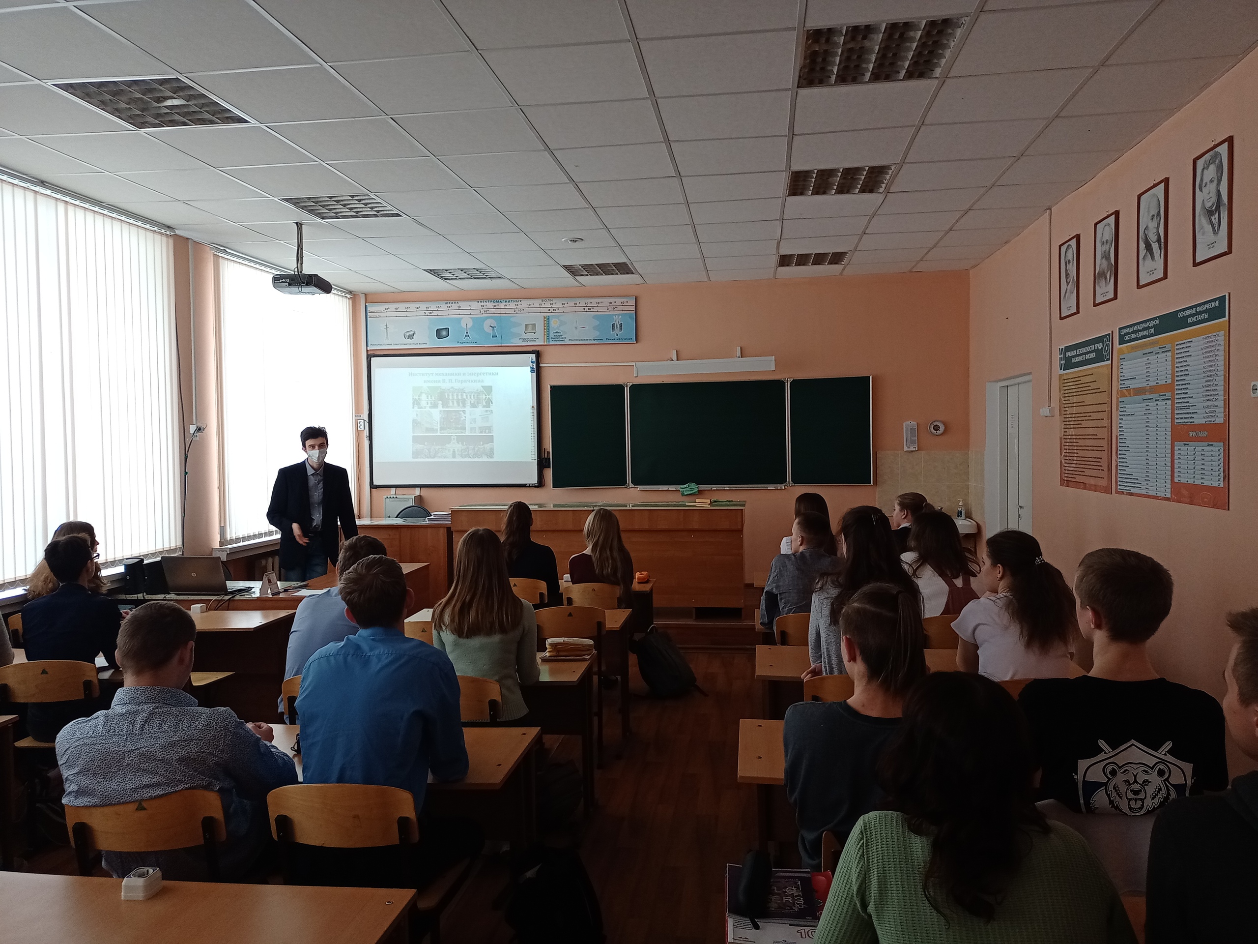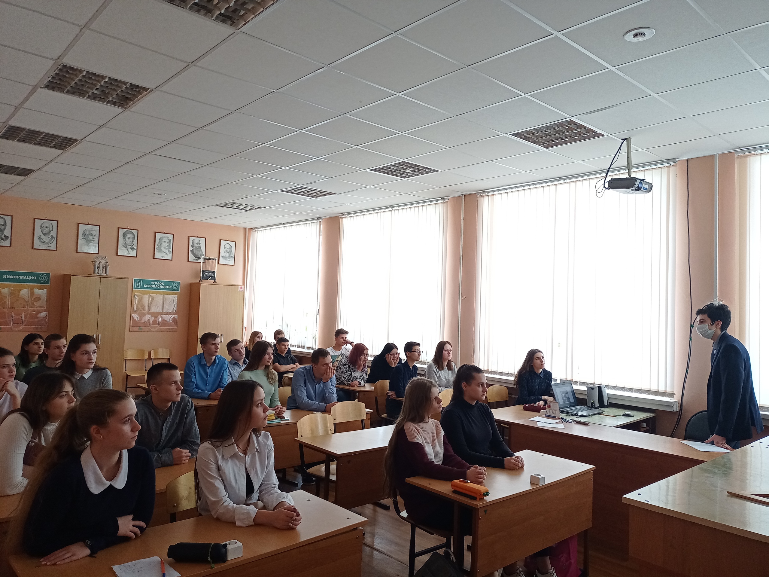Александр познакомил учащихся с историей и руководством Института, о том, как проходит обучение, где они смогут работать, окончив институт, о возможности проживания в студенческом общежитии во время обучения. Так же учащимся рассказали, какие возможности открываются перед ними. После выступления, школьники задавали различные вопросы Александру о студенческой жизни в Академии, на которые получили подробный рассказ от лица студента.