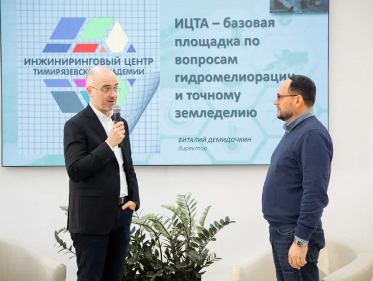 - Инжиниринговый центр Тимирязевской академии постепенно превращается в базовую площадку для решения актуальных вопросов по гидромелиорации и точному земледелию. За последние три месяца проведено несколько мероприятий по вопросам развития точных агротехнологий, в том числе форум Smart Agro 2022. А совсем недавно с Ассоциацией «ЭлектронАгро» обсудили вопрос создания и развития на базе ИЦТА площадки для общения в формате живой лаборатории (Live Labs).