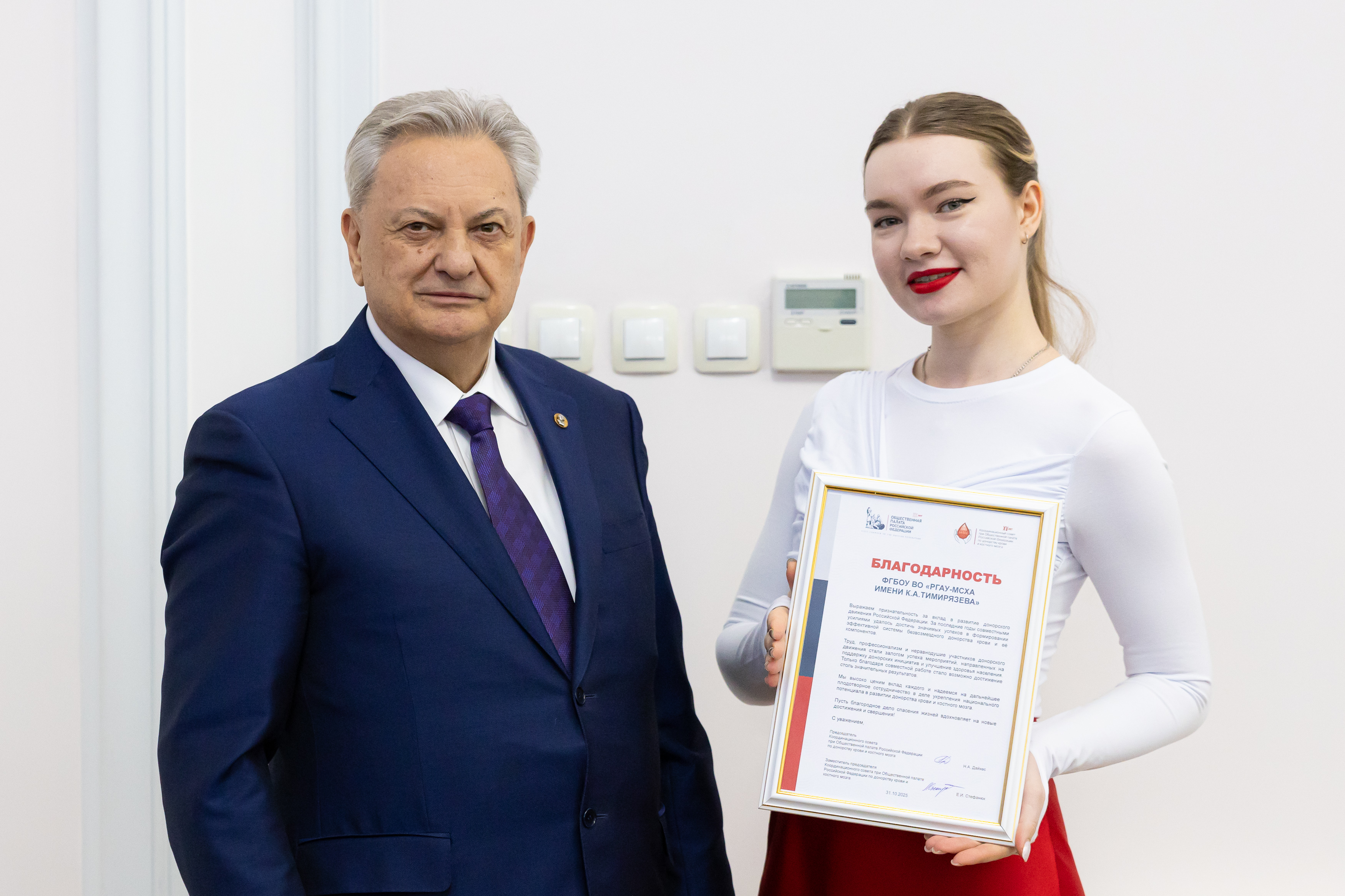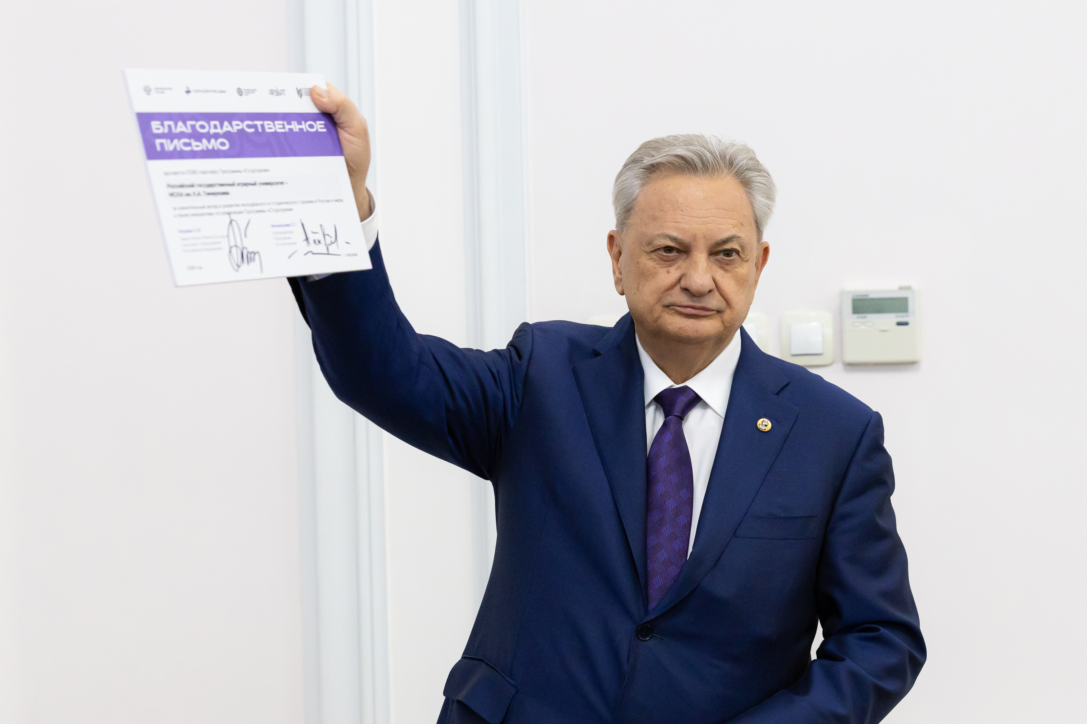 Благодарственное письмо Московского регионального отделения Молодёжной общероссийской общественной организации «Российские студенческие отряды» — РГАУ‑МСХА имени К.А. Тимирязева, в лице ректора, академика РАН, профессора Владимира Ивановича Трухачева, за плодотворное сотрудничество и поддержку деятельности студенческих отрядов г. Москвы.