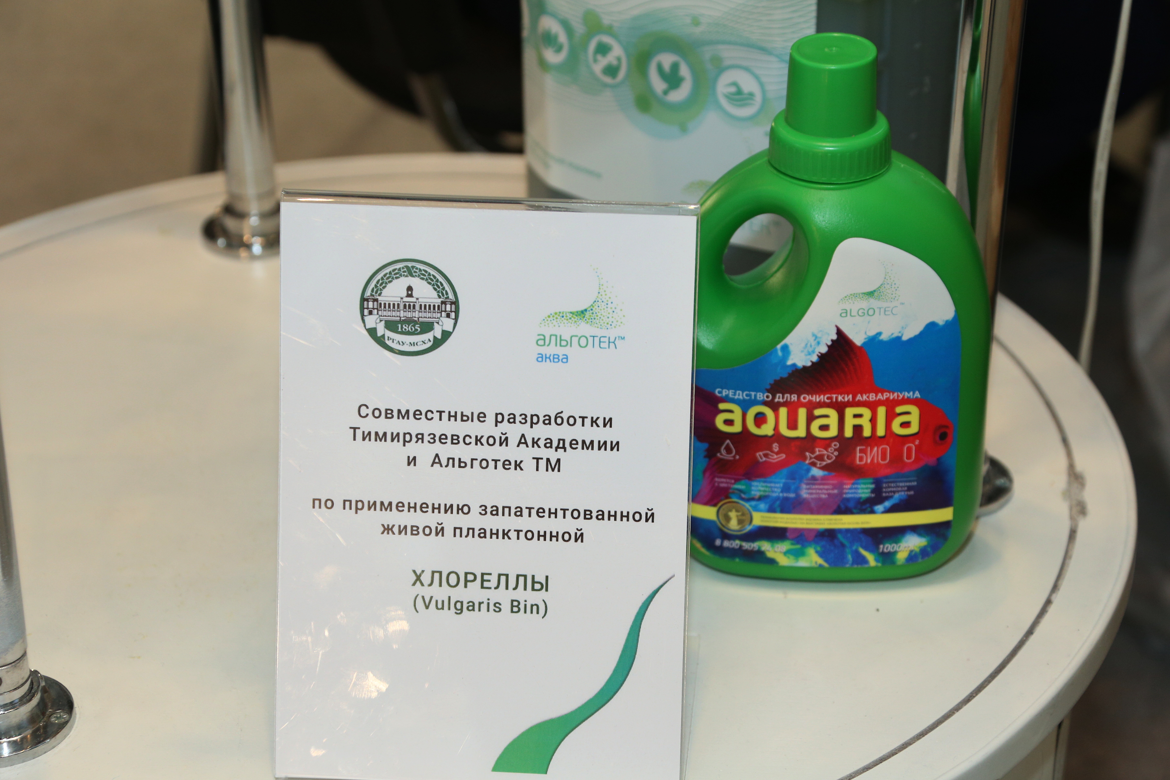 На стенде также была представлена технология Тимирязевки и ООО «Альготек» по биологической очистке и восстановлению водоёмов благодаря микроводорослям хлореллы. В 2019 году в ходе экологической реабилитации Нижнего Фермского пруда университета использование хлореллы показало высокую эффективность.