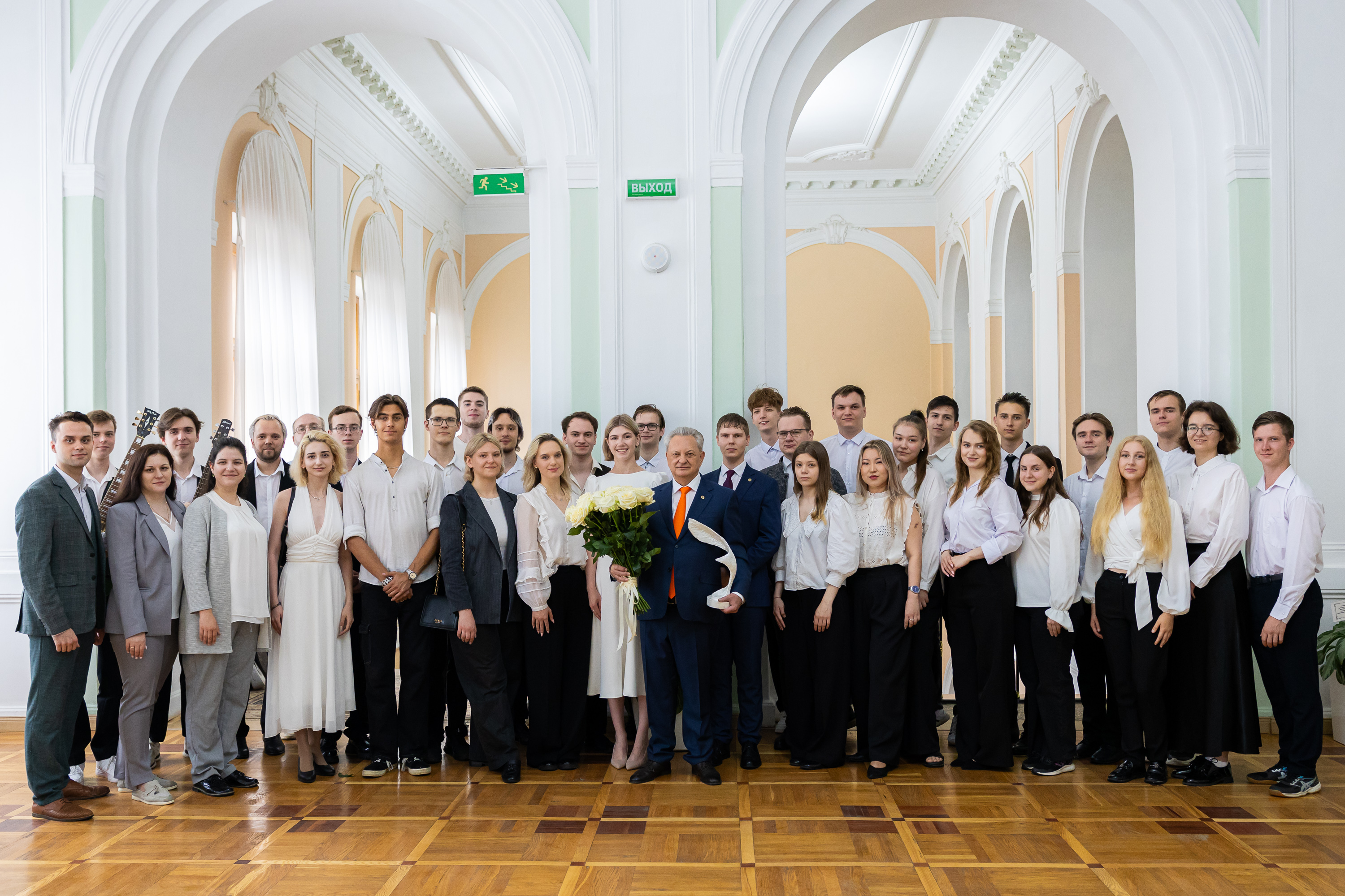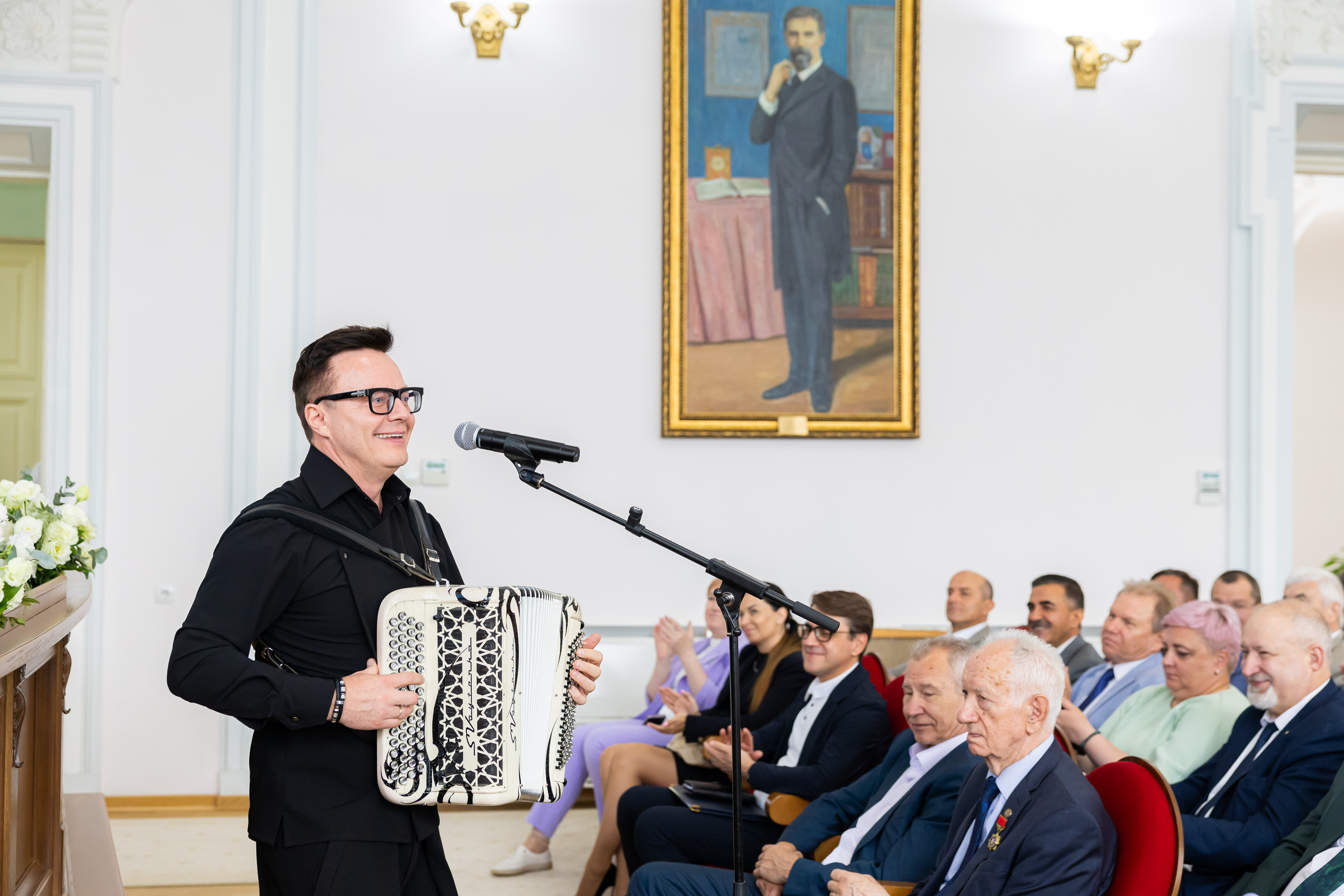 Творческий подарок – выступление заслуженного артиста России, композитора Сергея Ивановича Войтенко. Также прозвучали тёплые пожелания от профессоров академии, студентов и коллег.