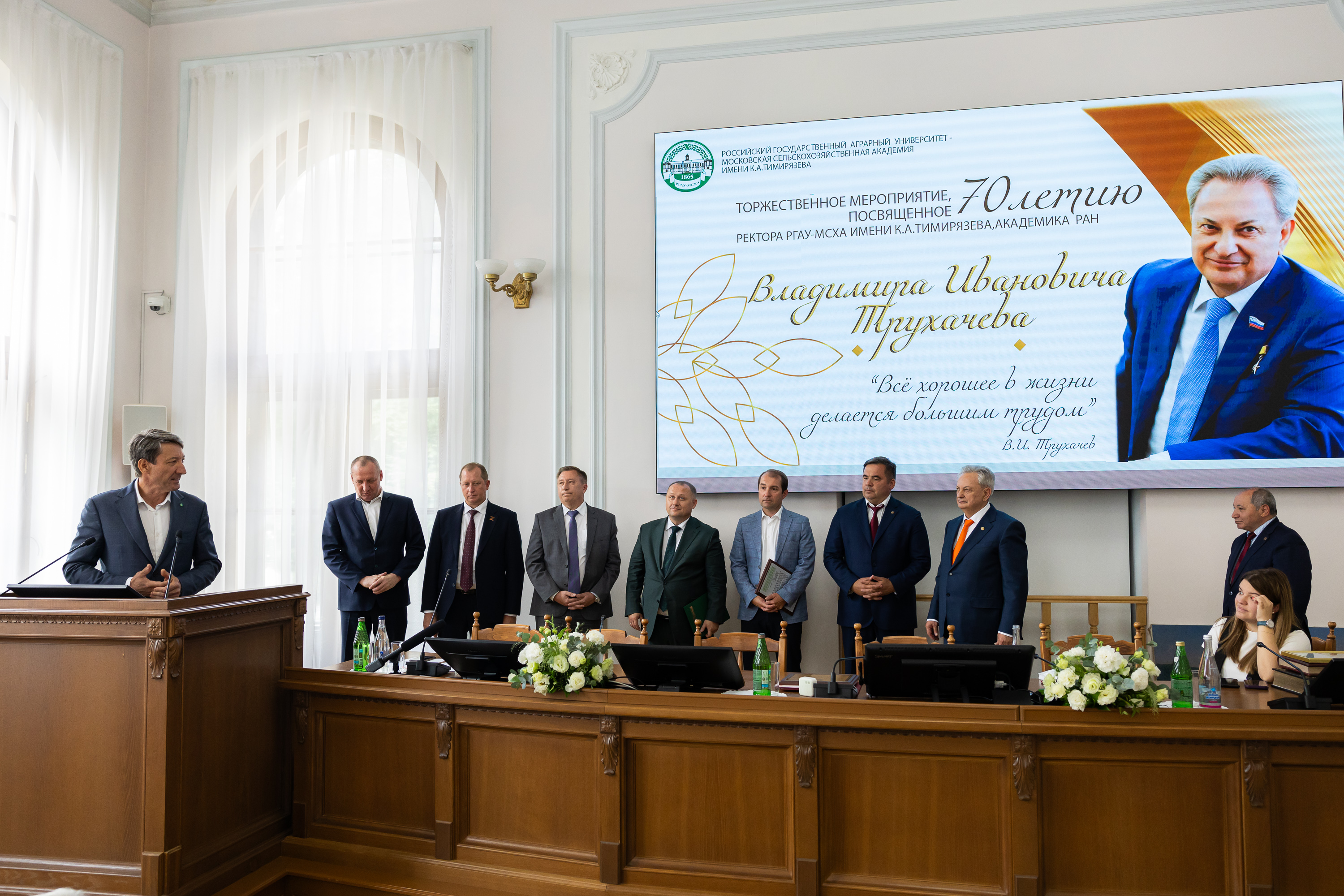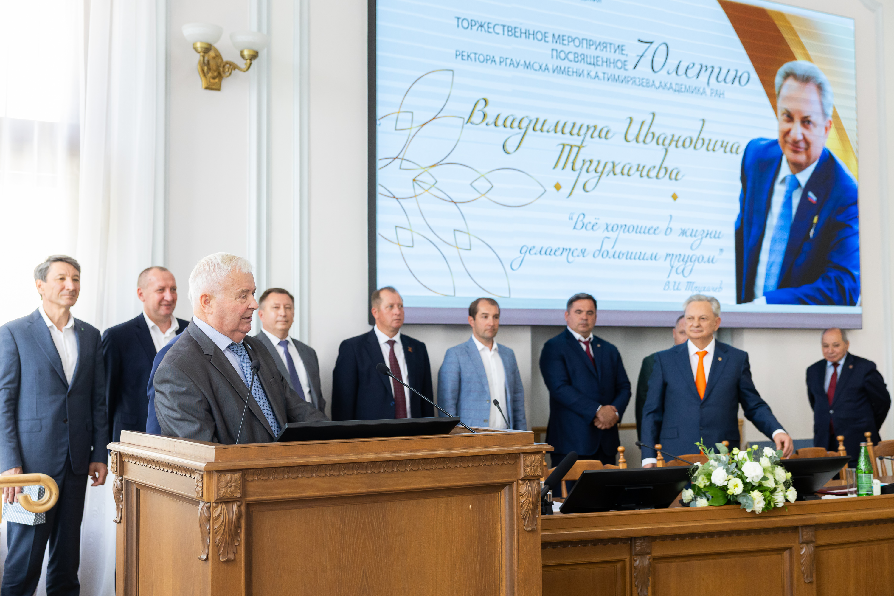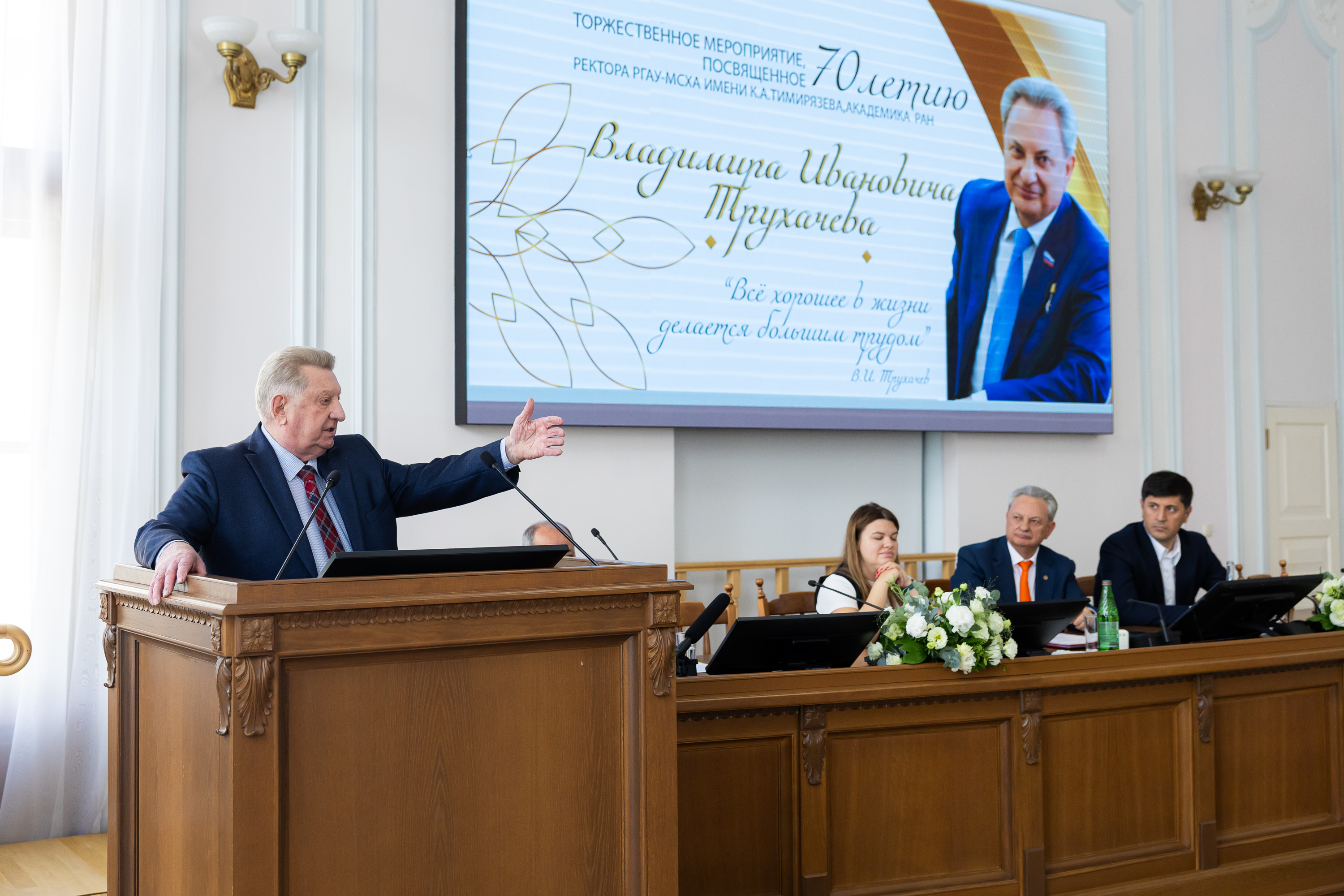 Ректор РГАУ-МСХА имени К. А. Тимирязева Владимир Иванович Трухачев отметил юбилей. Владимир Иванович является одним из крупнейших ученых своего поколения, обладателем множества званий и наград. Его многолетняя работа в качестве ректора позволила многим студентам обрести профессию и стать настоящими профессионалами аграрного дела.
