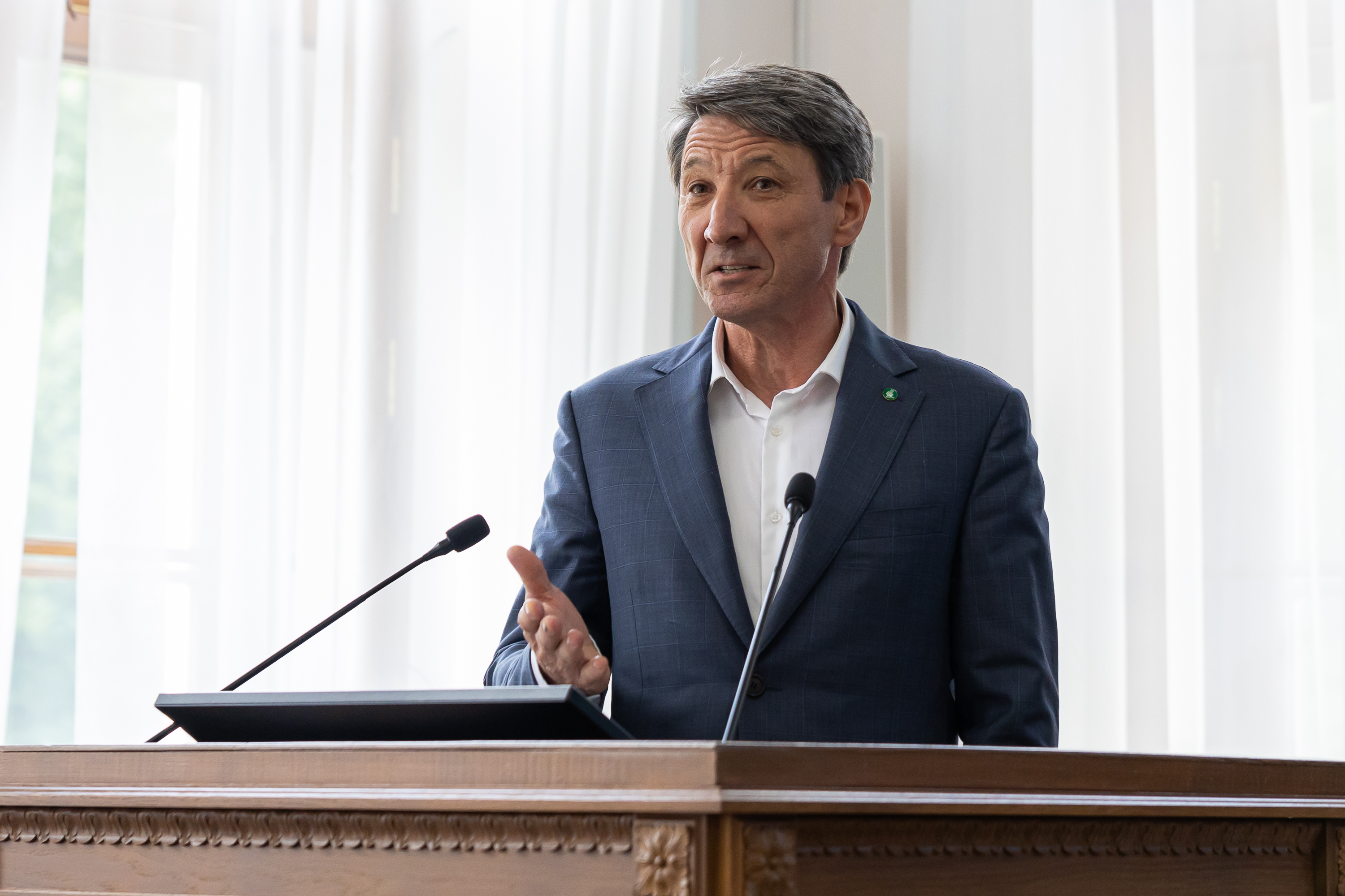 Максим Иосифович Увайдов, статс-секретарь – заместитель министра сельского хозяйства Российской Федерации, и заместитель министра Ксения Леонидовна Шевелкина передали Владимиру Ивановичу поздравления от лица главы ведомства Оксаны Николаевны Лут.