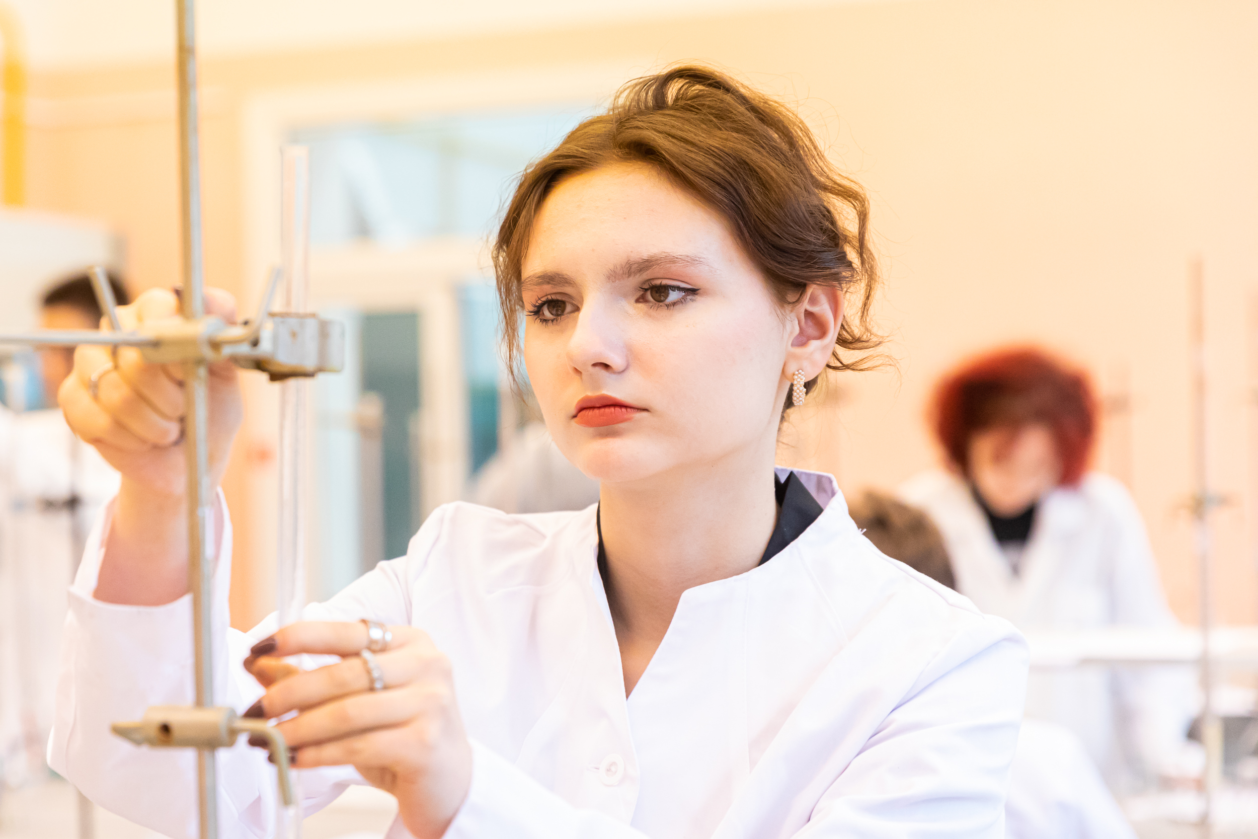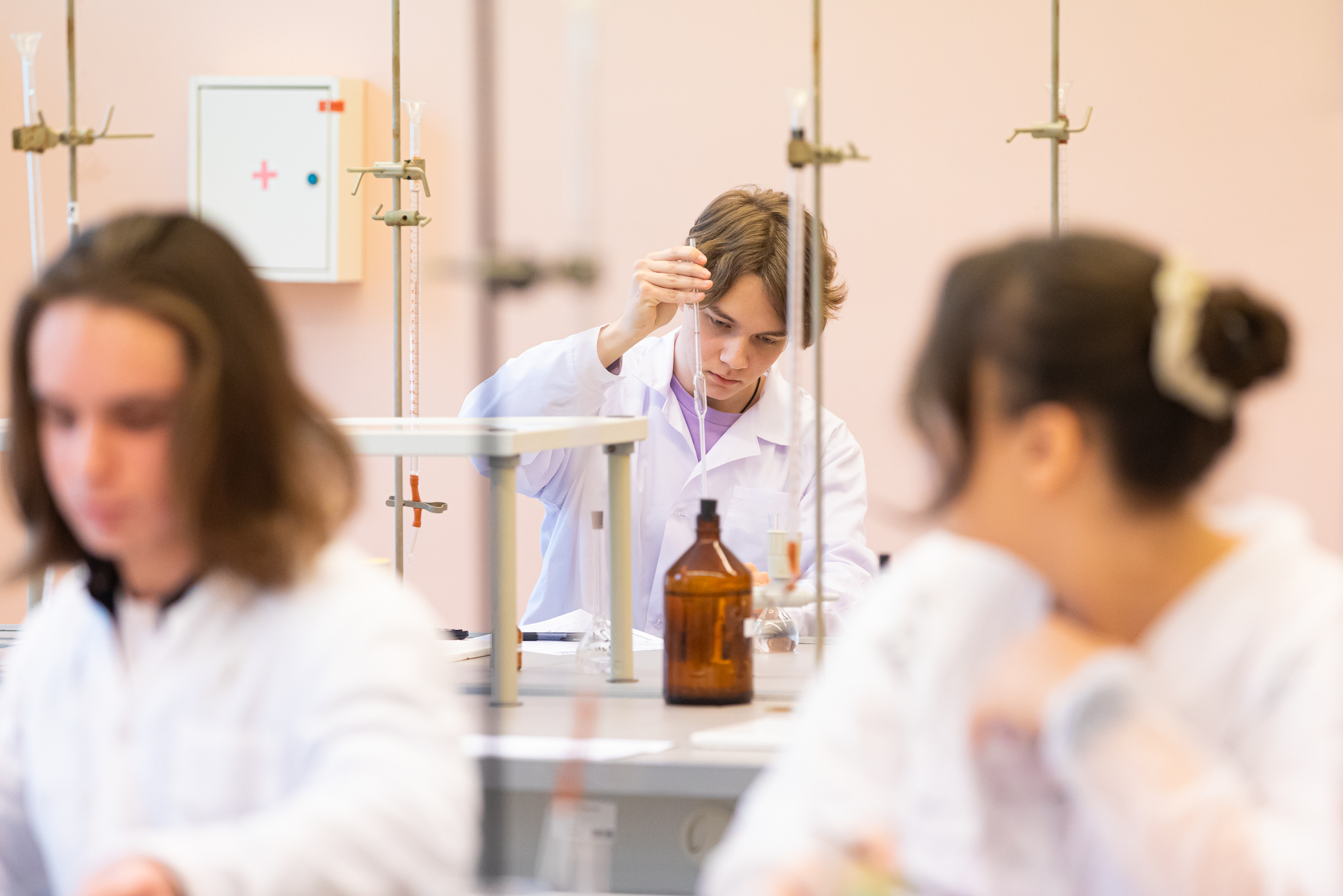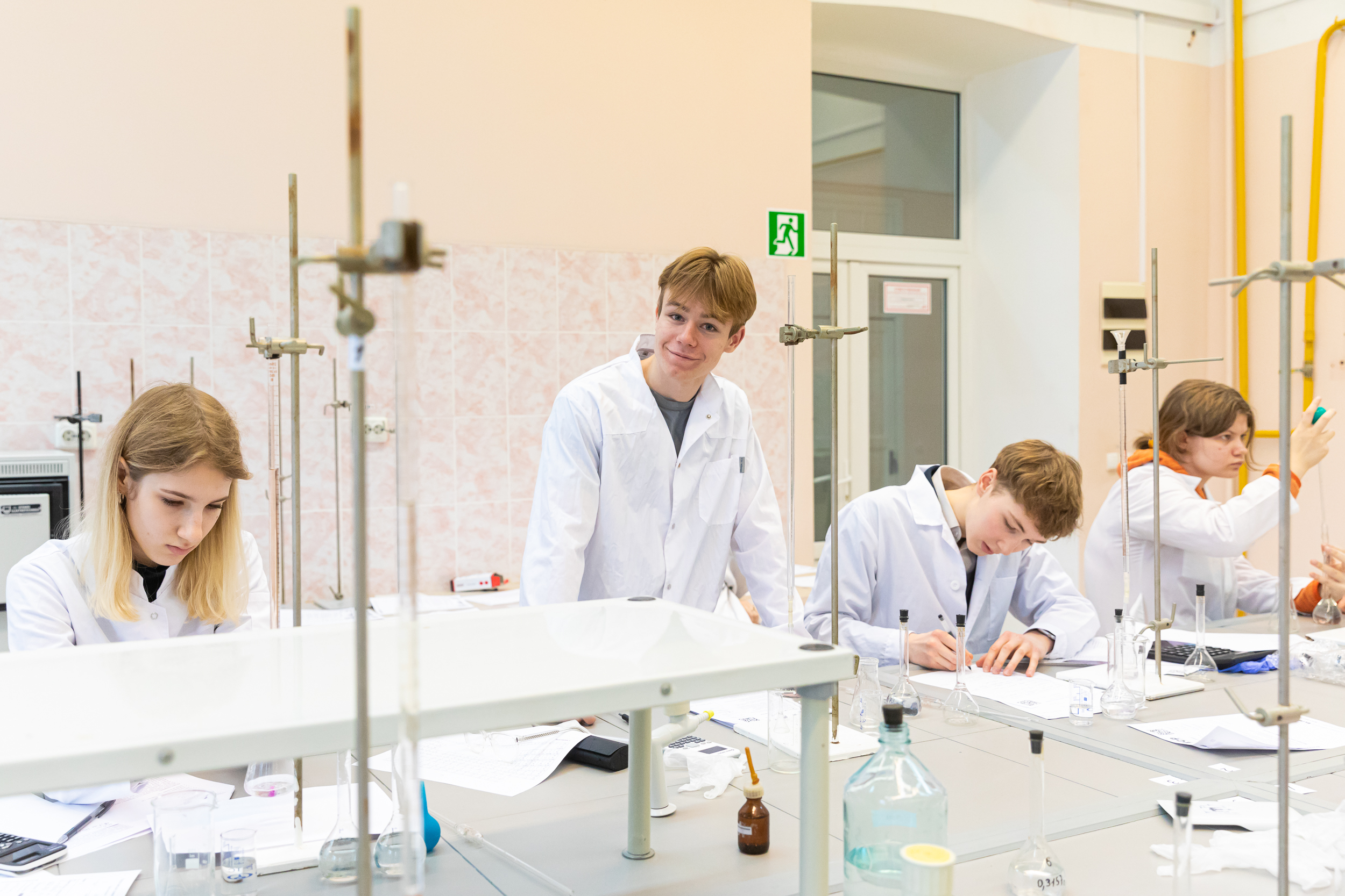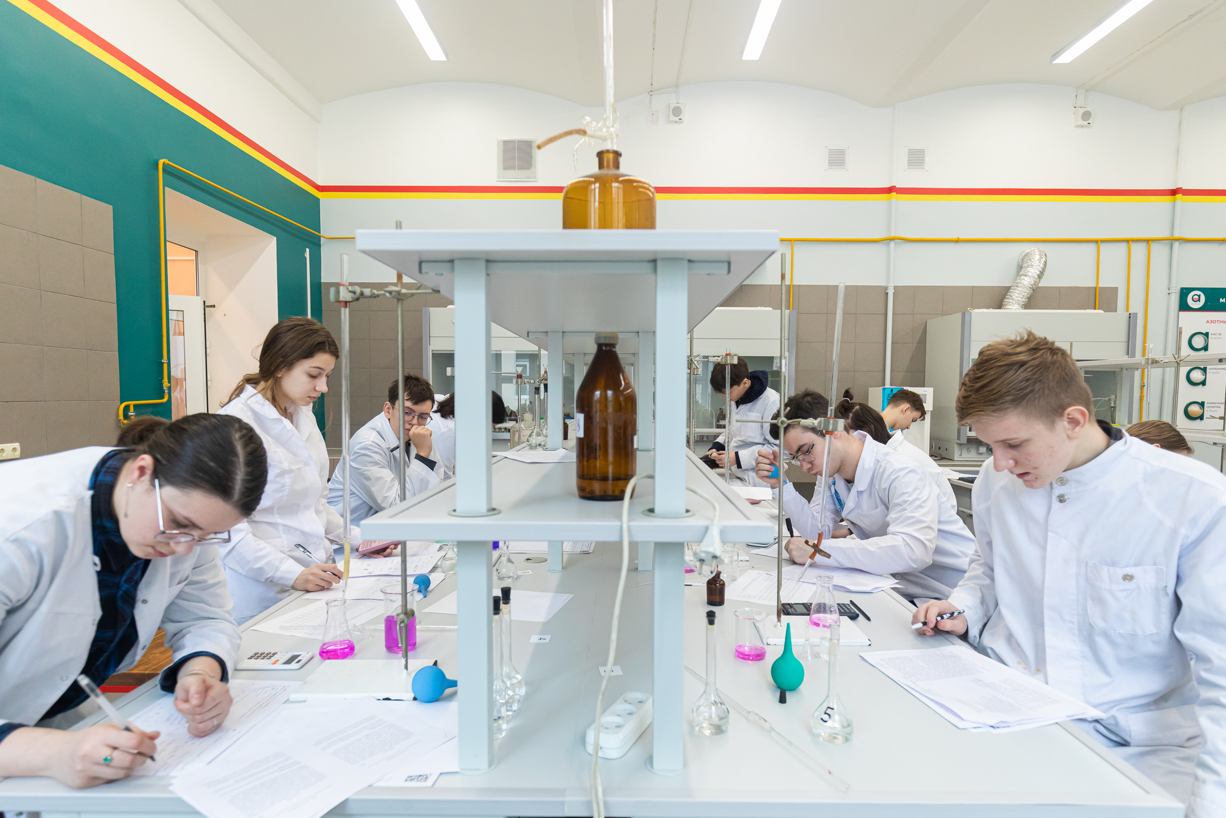 Участники, успешно прошедшие теоретический этап, получили возможность продемонстрировать свои навыки и умения на практическом этапе. Для многих участников это был первый опыт практической работы в лаборатории, однако, под руководством преподавателей кафедры химии они быстро освоились в новом для них аналитическом методе количественного анализа. Участники проявили аккуратность и точность в проведении экспериментов, представляя результаты в понятной и ясной форме.