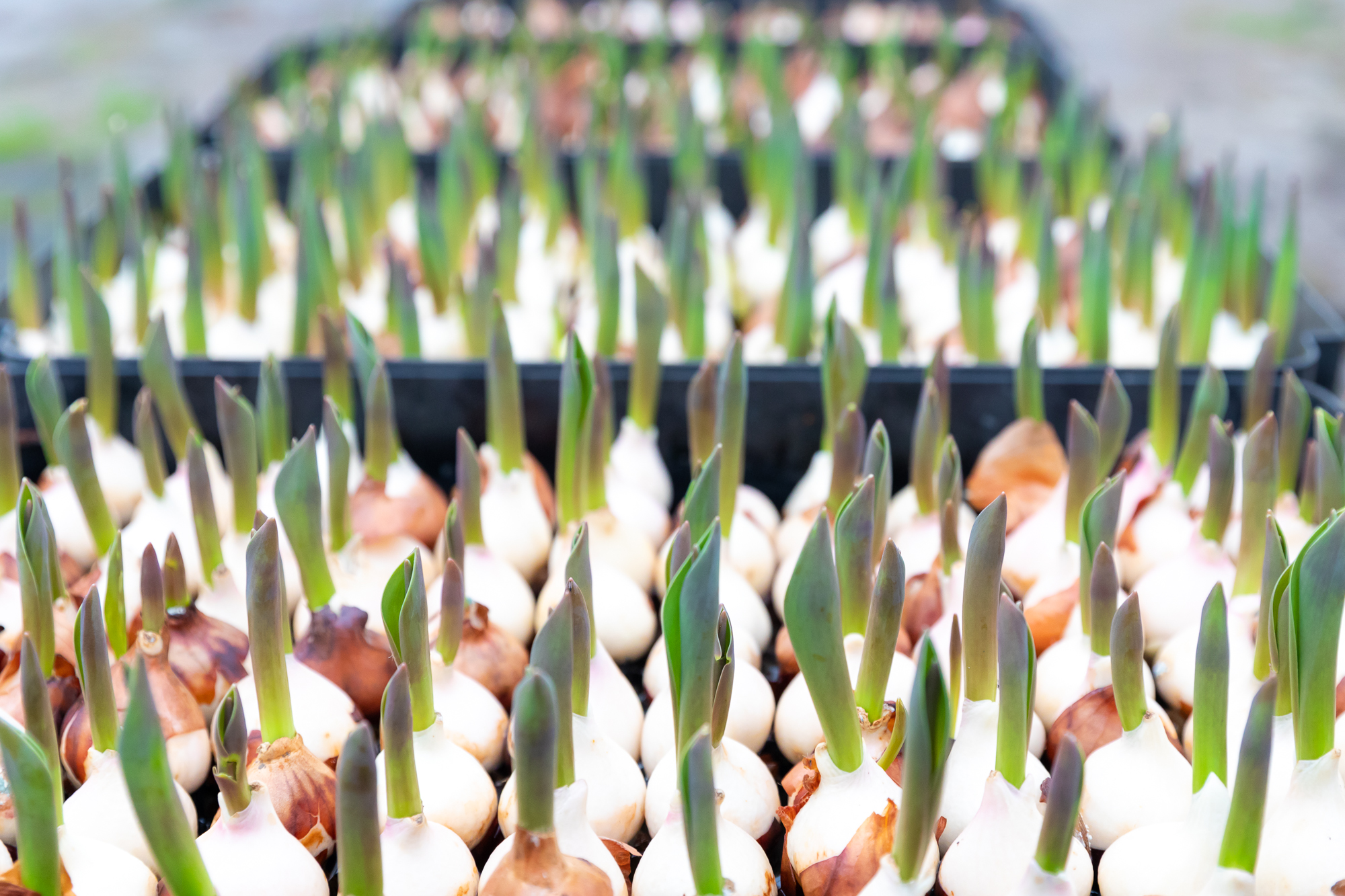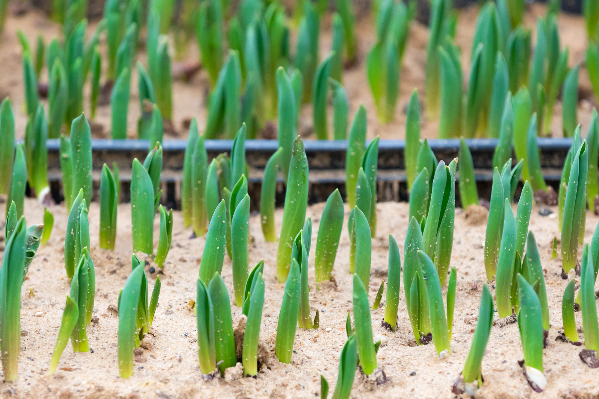 Основная часть луковиц высажена по классической пятиградусной технологии выгонки тюльпанов, в ящиках с субстратом. Также специалисты университета используют относительно новый способ выгонки луковиц для получения цветов на срезку без почвы – гидропонную выгонку. Все необходимые вещества растение получает из питательного раствора.