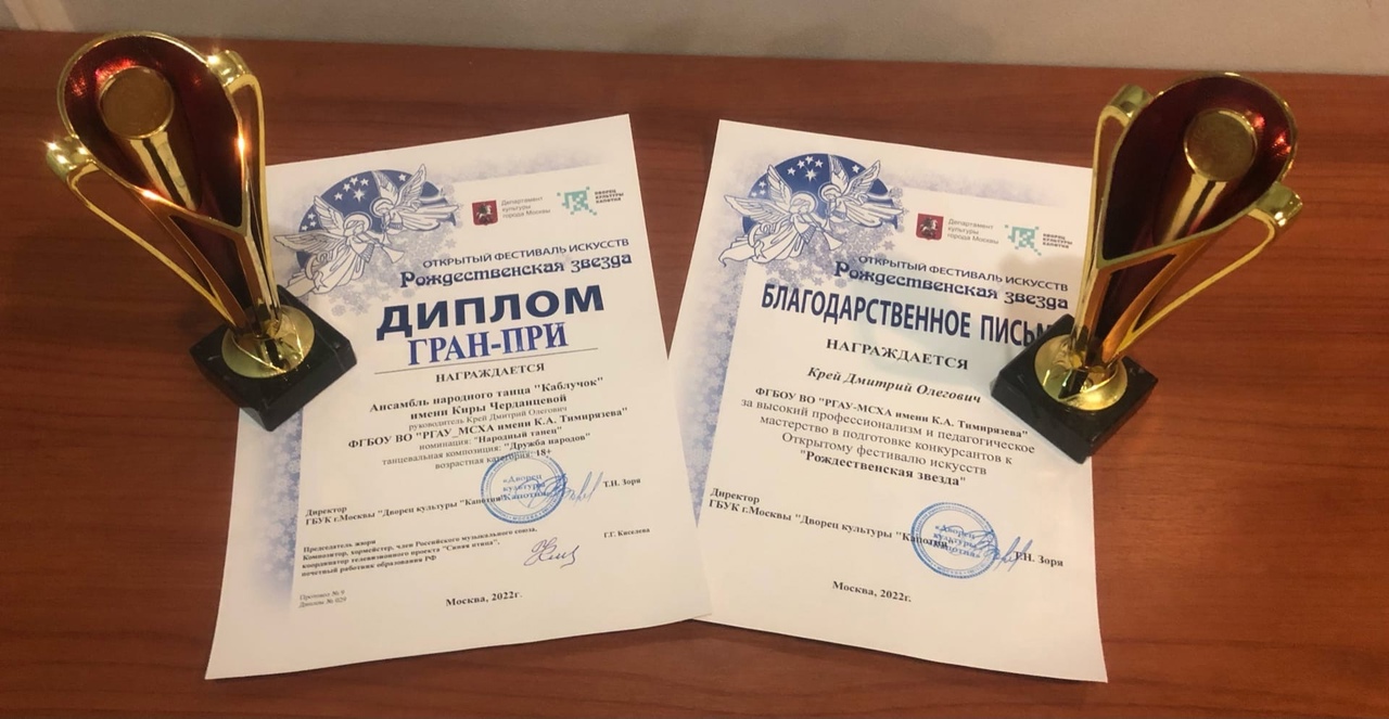 Для ансамбля народного танца «Каблучок» имени К.П. Черданцевой новый год начался с победы в Открытом фестивале искусств «Рождественская звезда». На конкурсе тимирязевцы показали высокий технический уровень исполнительского мастерства.