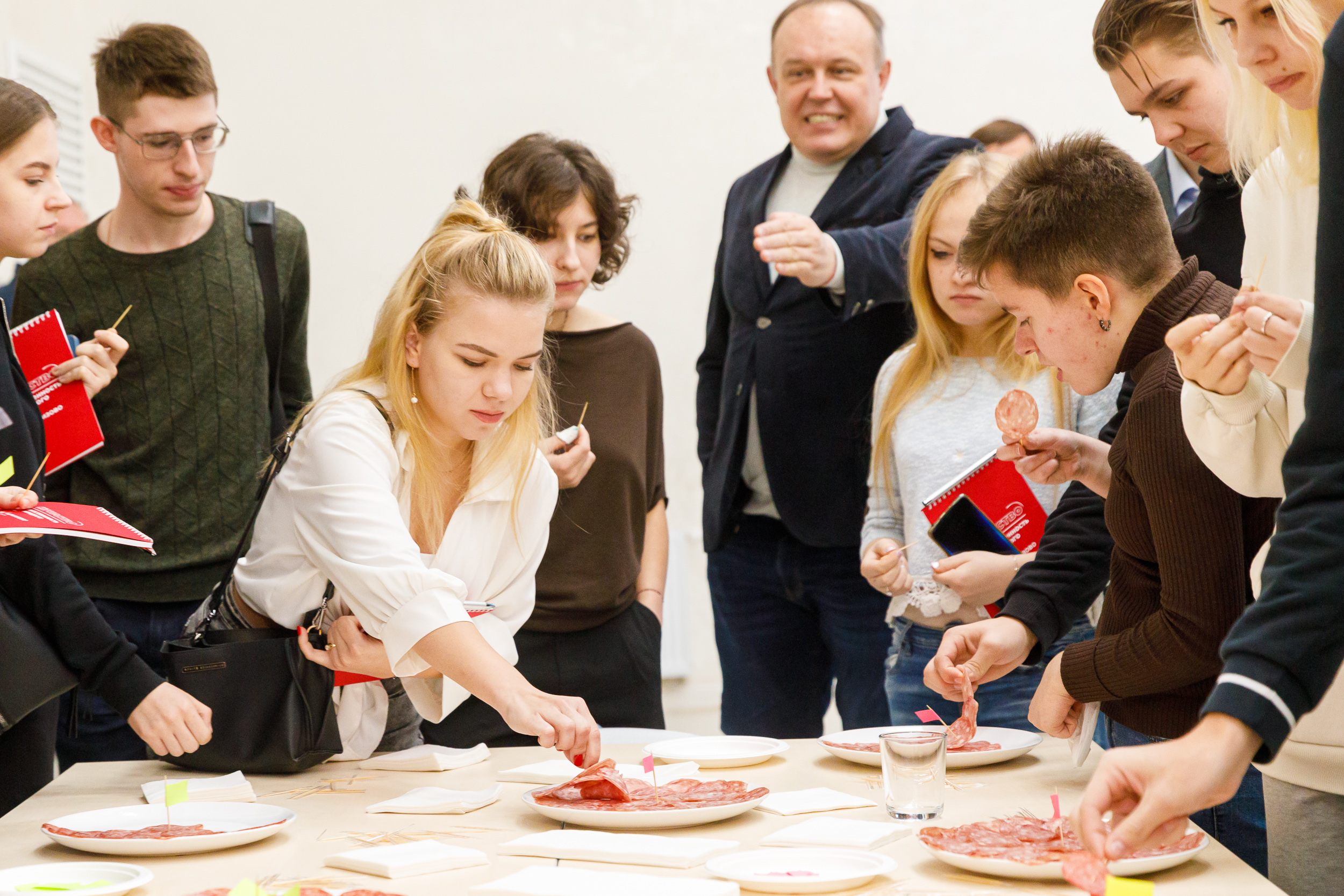 В завершение мероприятия состоялась народная дегустация колбасных изделий «Черкизово». Участники воркшопа большинством голосов проголосовали в пользу салями «Астория», не оставив без внимания и вкусовые качества колбасы сырокопчёной «Сальчичон».