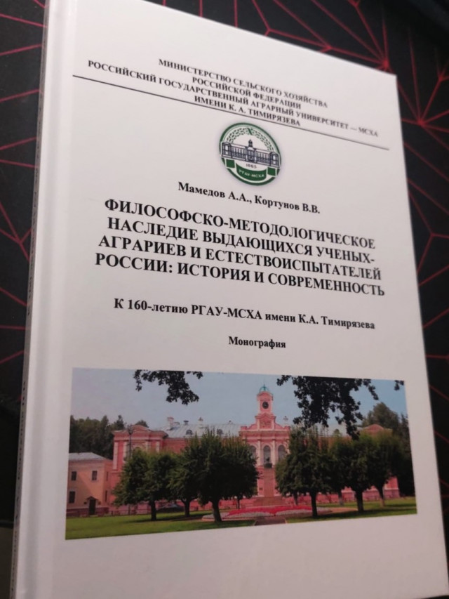 В год празднования 160-летия Российского государственного аграрного университета – МСХА имени К.А. Тимирязева, кафедра философии Университета представила уникальное научное издание – монографию «Философско-методологическое наследие выдающихся ученых-аграриев и естествоиспытателей России: история и современность».