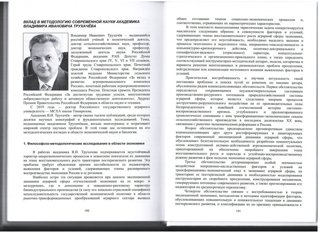 Авторы монографии подчеркивают, что эту славную историю сегодня пишет выдающийся российский ученый – ректор РГАУ-МСХА имени К.А. Тимирязева, академик РАН, профессор Владимир Иванович Трухачёв.