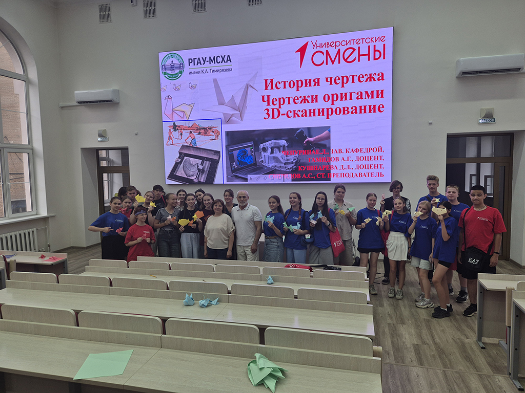 14 июля заведующий кафедры Чепурина Екатерина Леонидовна, доцент Кушнарева Дарья Леонидовна, старший преподаватель Свиридов Алексей Сергеевич и доцент кафедры сопротивление материалов и детали машин Гамидов Абдурахман Гаджиевич провели мастер-класс одновременно исторический, творческий и технический "История чертежа. Чертежи оригами. Чертежи при 3-D сканировании" для активистов Движения Первых в рамках проекта Университетские смены.