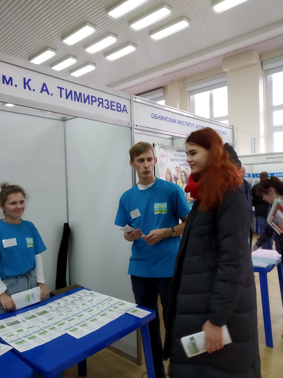 01 Ноябрь / 2019Калужская Тимирязевка ежегодно принимает участие в ярмарке и проводит профориентационную работу среди потенциальных абитуриентов и их родителей, рассказывая о возможностях обучения по реализуемым в филиале направлениям подготовки и специальностям высшего образования и престижности аграрных профессий в современном мире.