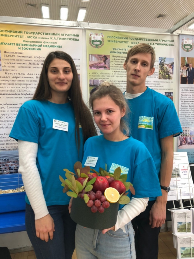 В этом году стенд Калужской Тимирязевки вызвал настоящий ажиотаж: школьники и их родители задавали массу вопросов о новых направлениях подготовки, в том числе «Машины и оборудование для хранения и переработки сельскохозяйственной продукции» для будущих инженеров, «Электроэнергетика и электротехника» для будущих инженеров-электриков. Ну а будущие зоотехники выстроились в очередь, чтобы поближе познакомиться с талисманом Калужской Тимирязевки - ушастым кроликом.
