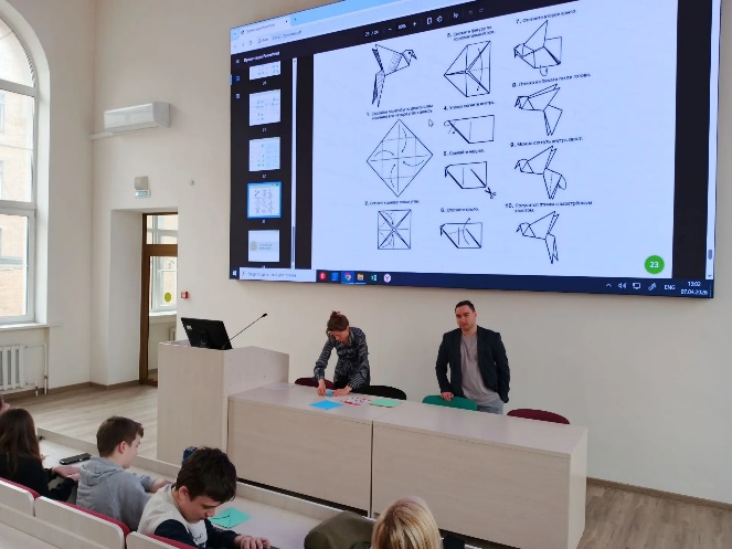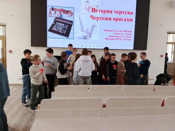 07 Апрель / 2026На кафедре «Инженерная и компьютерная графика» для ребят развернулось настоящее погружение в историю: сотрудники вуза провели увлекательный экскурс в истоки зарождения чертежа как одного из главных видов технической документации. От первых набросков на пергаменте до стройных систем стандартов — школьники увидели, как рождался язык инженеров. Кульминацией встречи стал мастер-класс по чтению чертежей, выполненный в неожиданном, но очень наглядном игровом формате — через оригами. Складывая фигурки из бумаги по схемам-чертежам, пятиклассники на собственном опыте поняли, как объем рождается из плоскости, а деталь — из точного замысла конструктора.