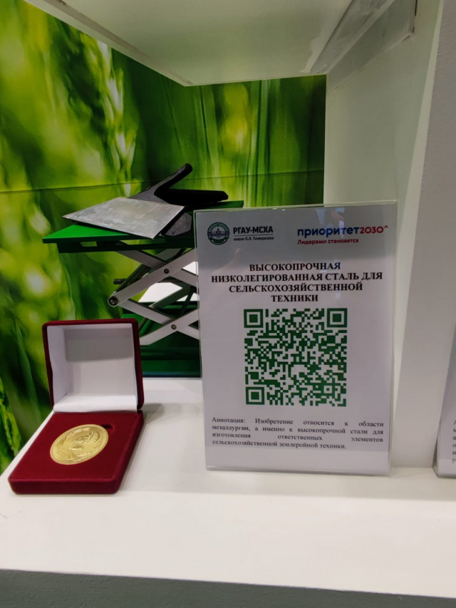 Коллектив кафедры материаловедения и технологии машиностроения представил экспонат на выставке "Золотая осень 2024": "Высокопрочная низколегированная сталь для сельскохозяйственной техники"