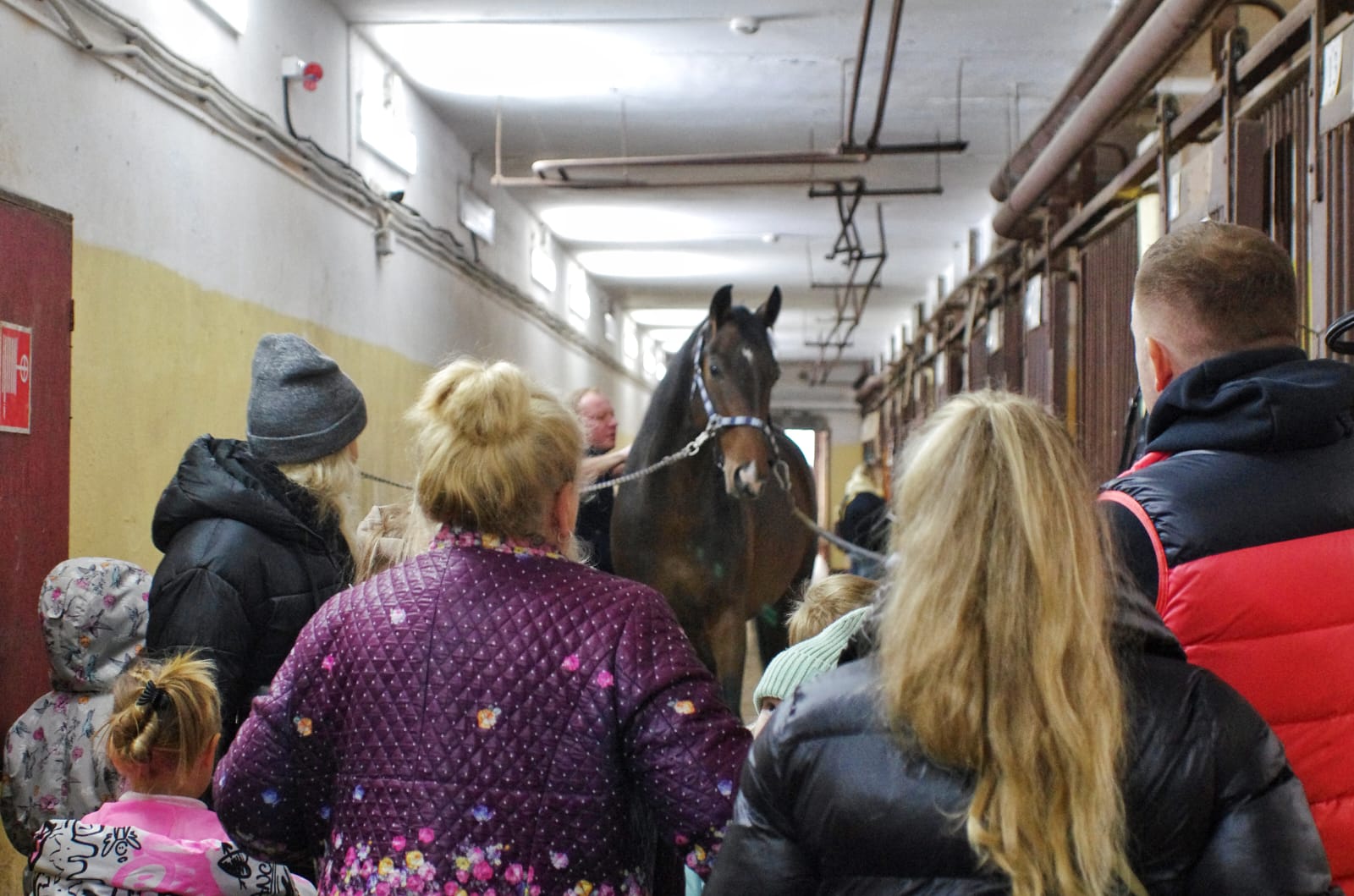 30 Октябрь / 2023Школьников и их родителей встречала один из старейших сотрудников конноспортивного комплекса Татьяна Никоновна Демина, которая знает об истории манежа и коллекции лошадей абсолютно все.