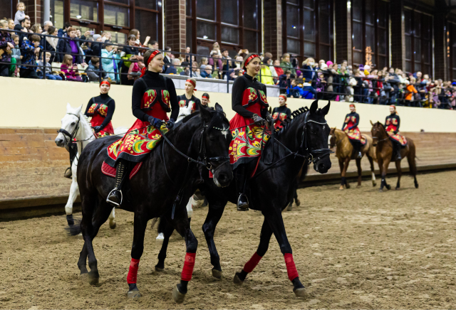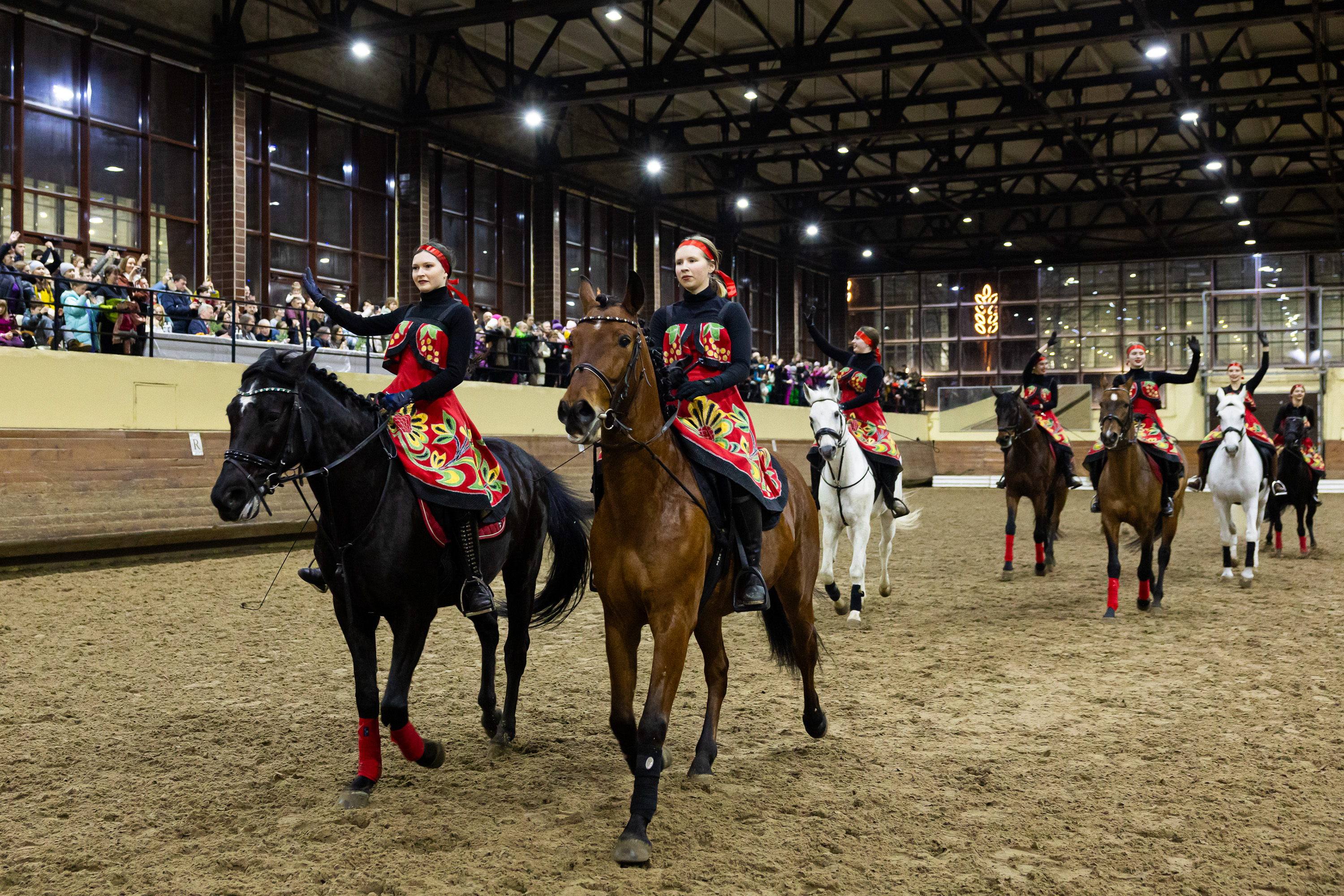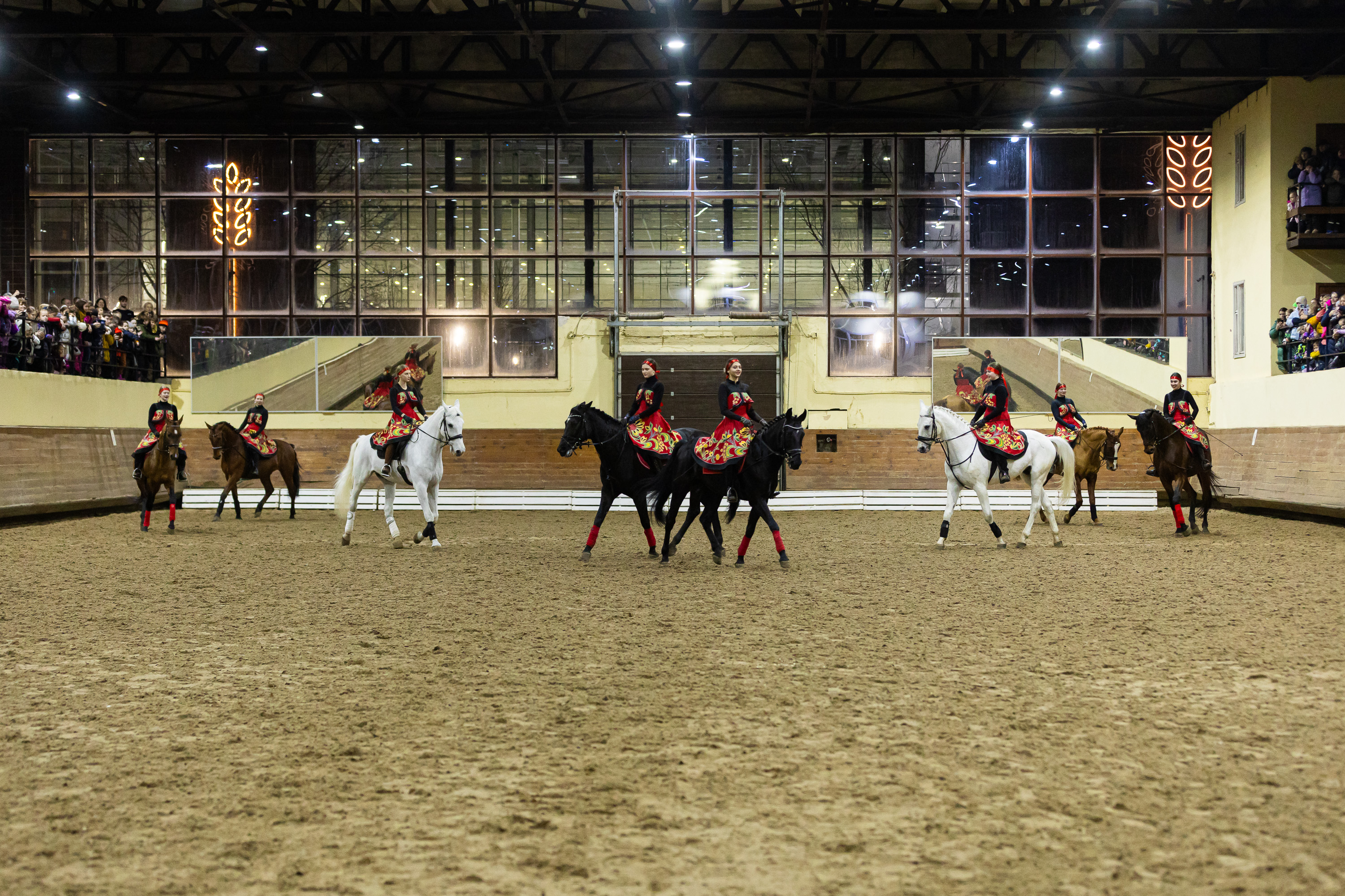 Конноспортивный комплекс провел на бис праздничное шоу. Яркое представление, посвящённое новогодним традициям разных стран, не только удивило сотни зрителей Москвы эффектными трюками, но и продемонстрировало позитивные изменения, произошедшие в жизни комплекса.