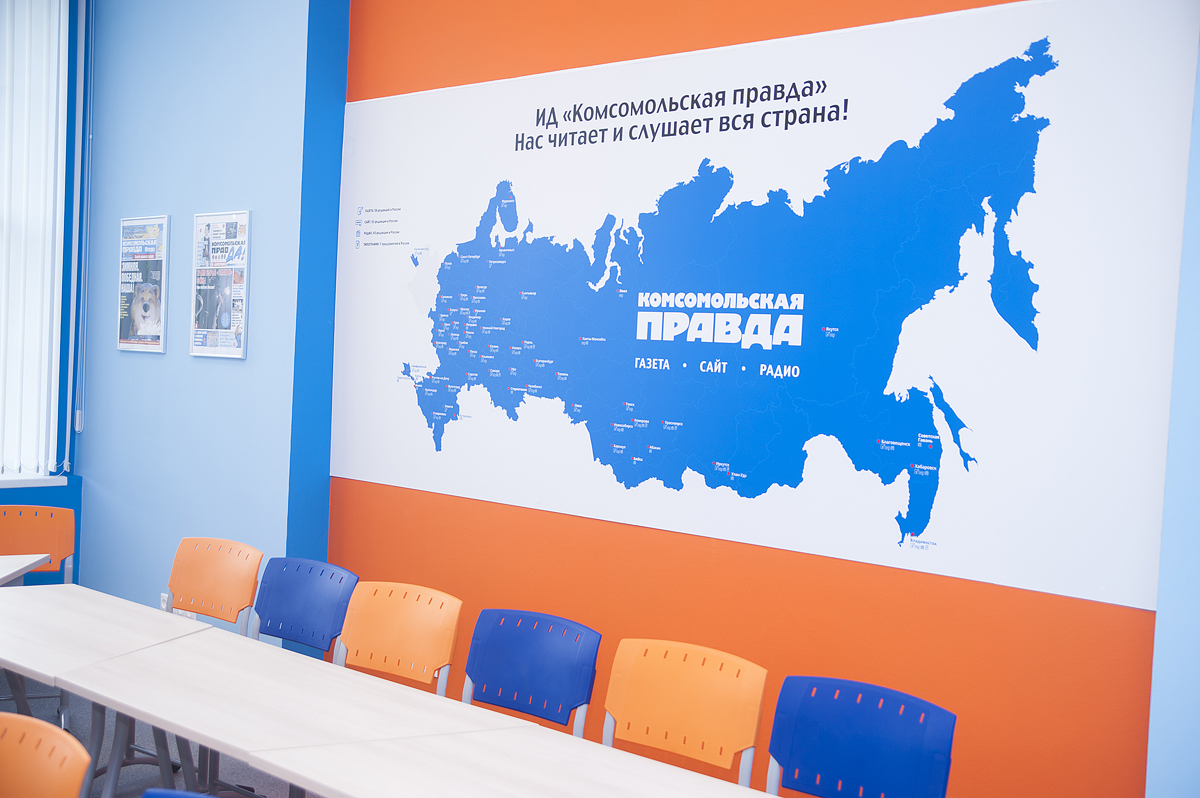 01 Июнь / 2018Аудитория станет творческой мастерской для студентов, где будет комфортно вести дискуссии, обсуждать актуальные проблемы и искать нестандартные решения. Помещение оформлено в фирменных цветах крупнейшего медиахолдинга страны «Комсомольская правда» — синем и оранжевом. Оранжевый цвет олицетворяет напористость, активность, целеустремленность и силу. Синий – цвет честности, целомудрия, постоянства, доброты.