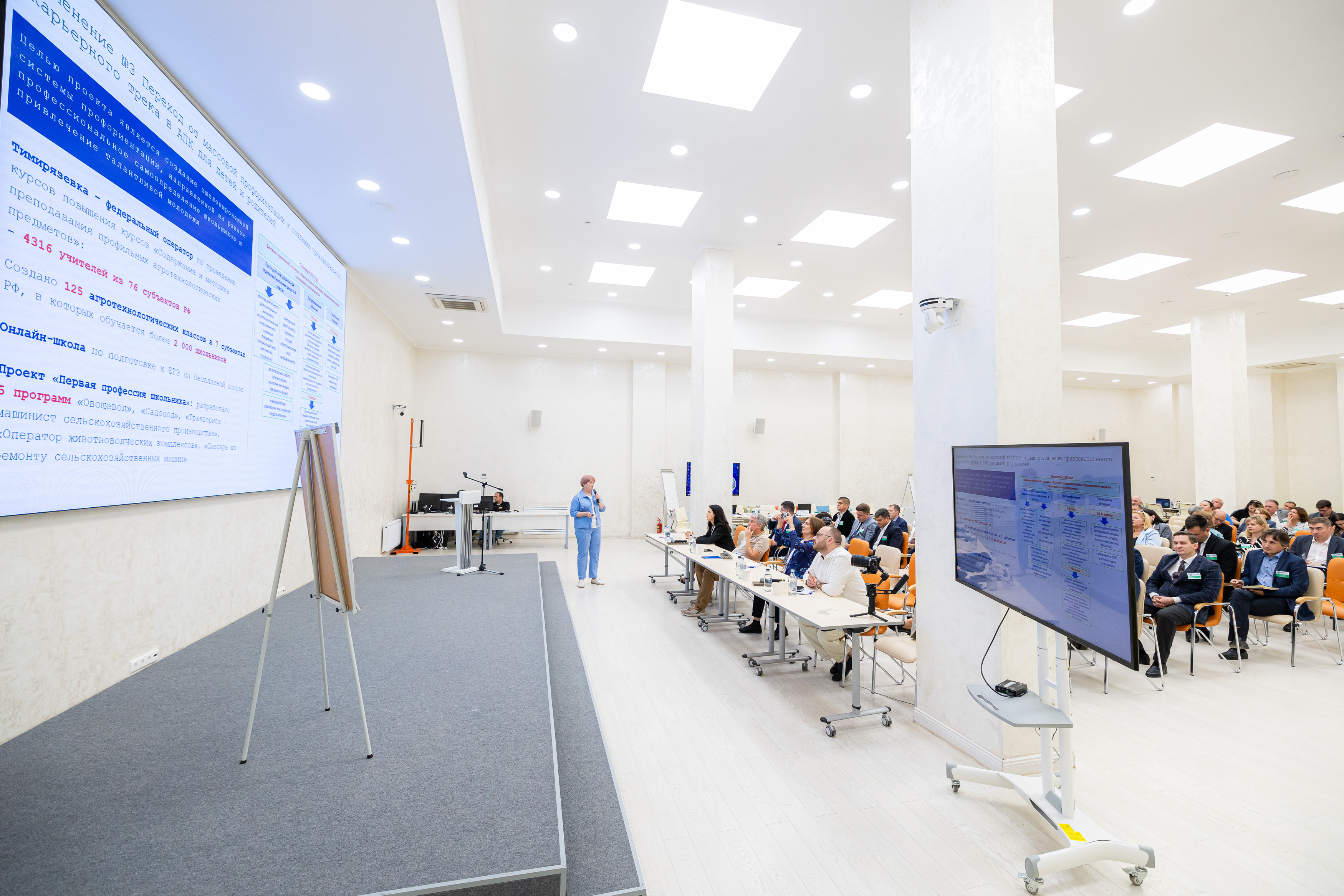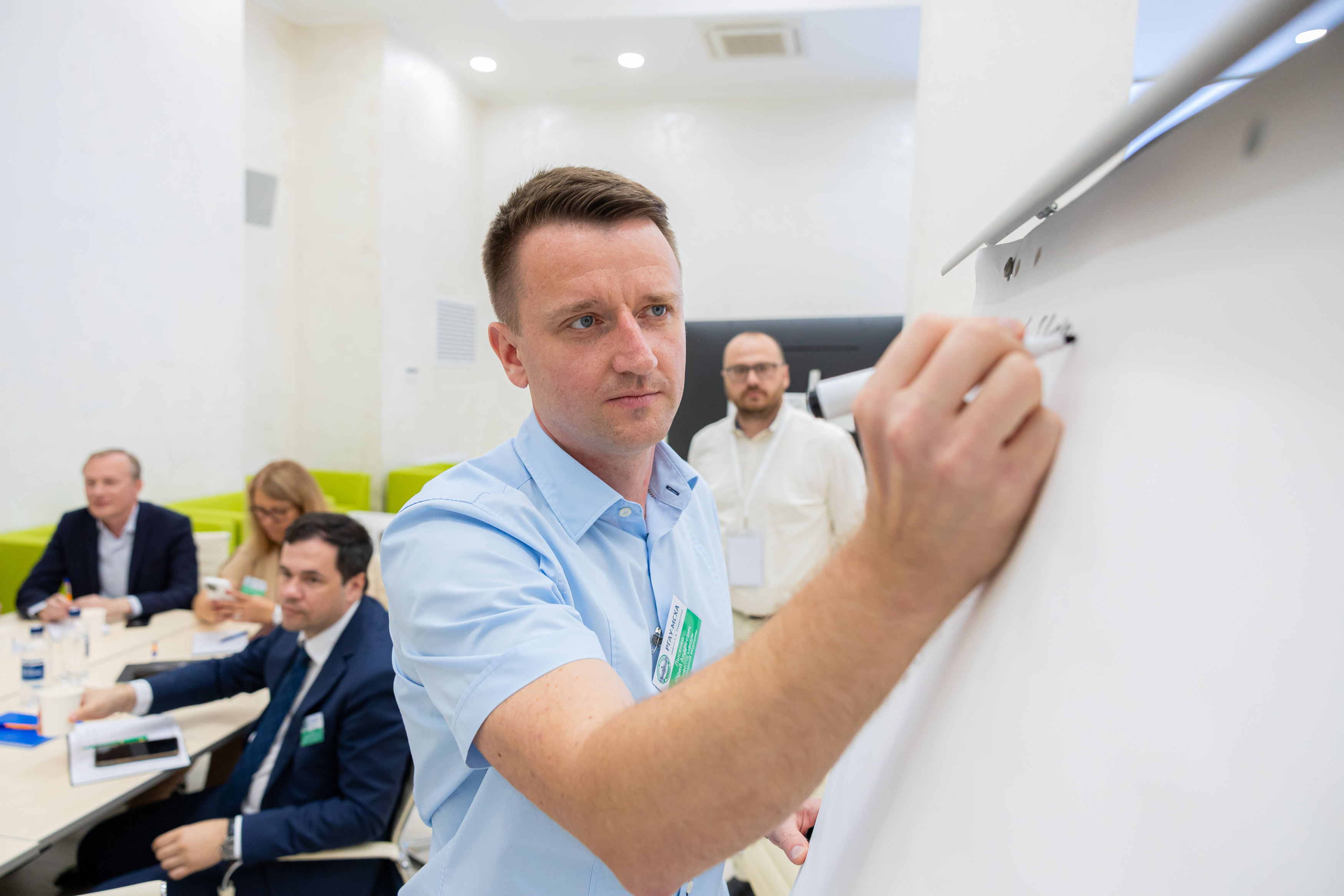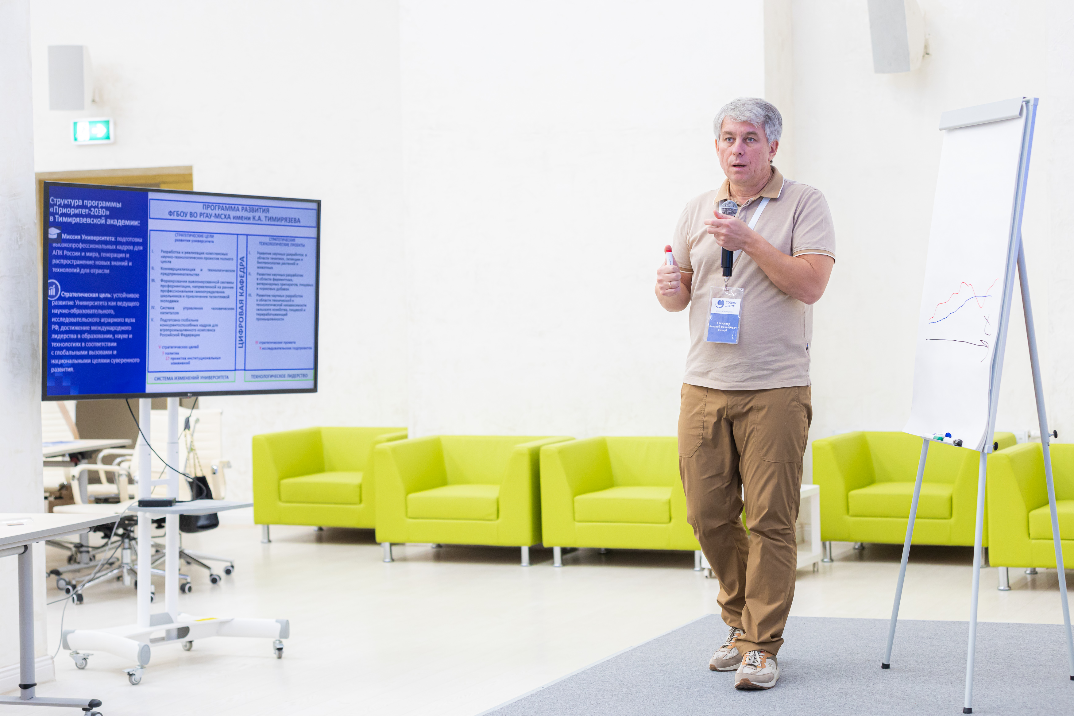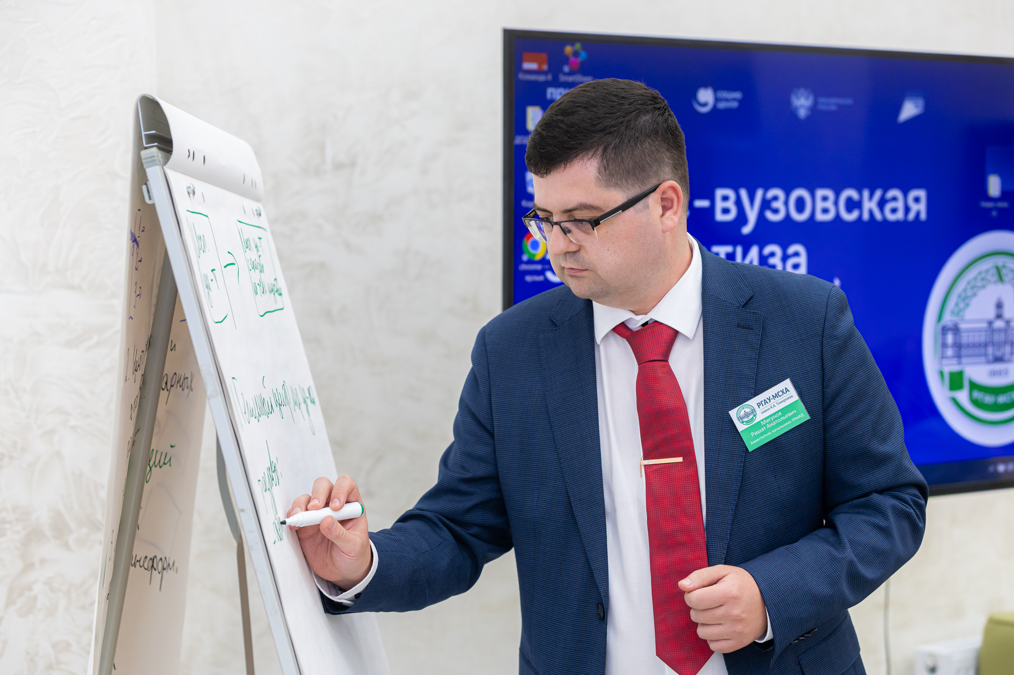 После детального изучения работы лабораторий, эксперты и ученые Тимирязевской академии собрались в Точке кипения «Тимирязевка» для коллективной работы. Ученые Академии представили доклады о текущем состоянии стратегических проектов и обозначили ключевые вызовы. Затем последовала интенсивная работа в группах, нацеленная на командное осмысление заявленных треков. Основной задачей этой сессии стало понимание и обозначение глубинного среза проблем, а также поиск инновационных решений для дальнейшего развития Тимирязевки в рамках программы «Приоритет 2030».