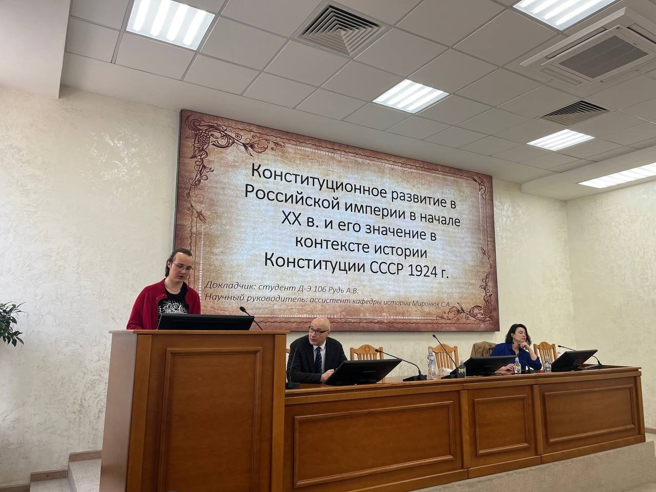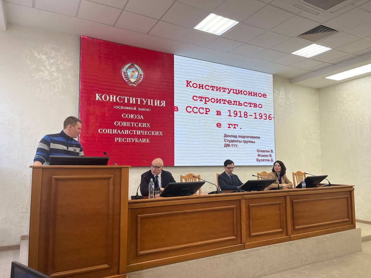 Проведение круглого стола предоставило возможность не только обсуждения этой конституции, но и рассмотрения различных аспектов в части конституционного и общественного развития России. В ходе работы научного мероприятия выступили студенты: